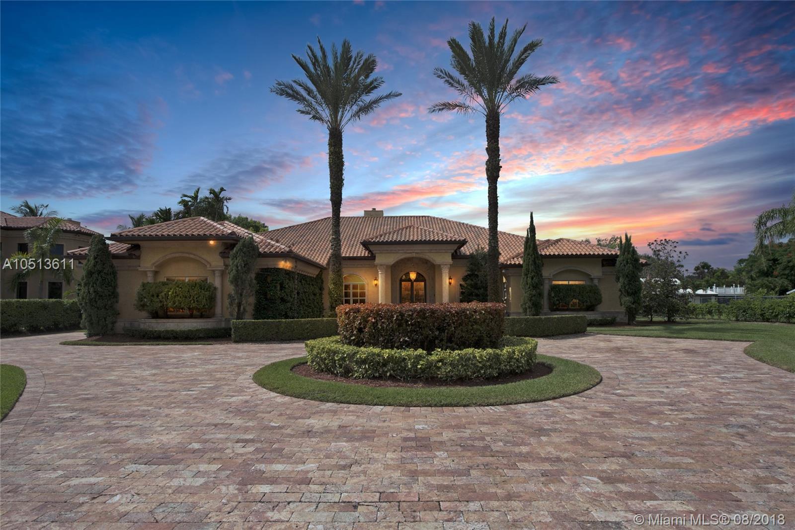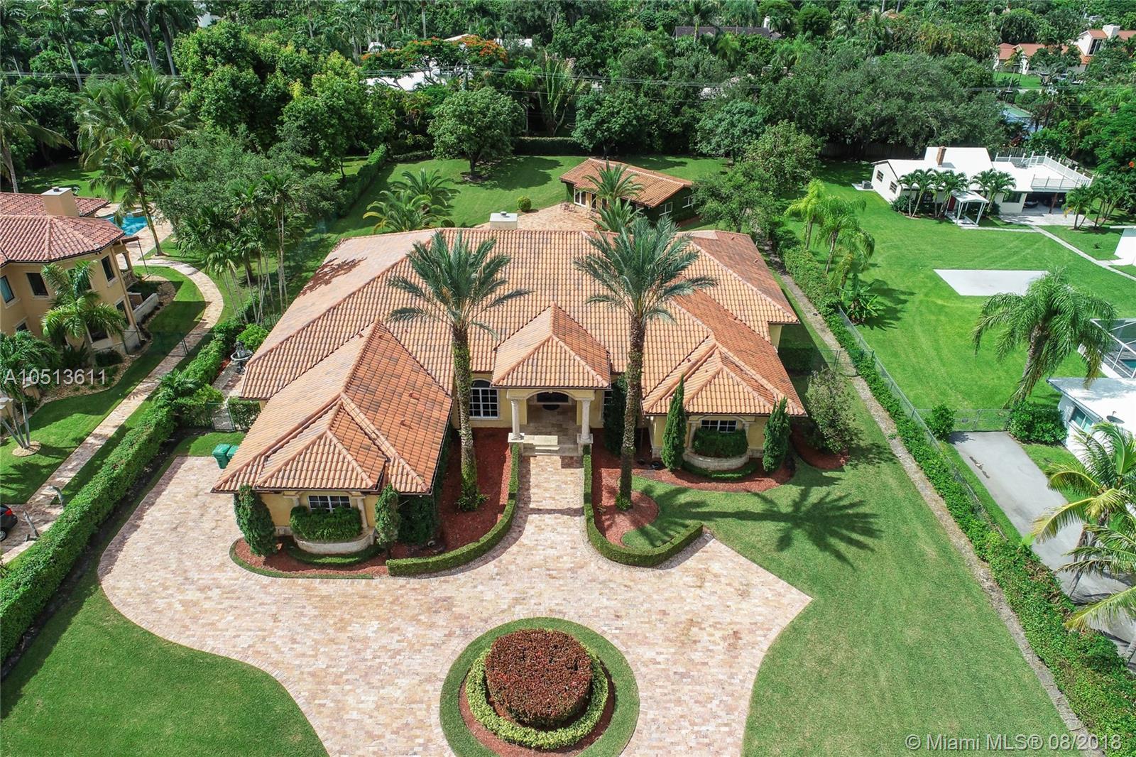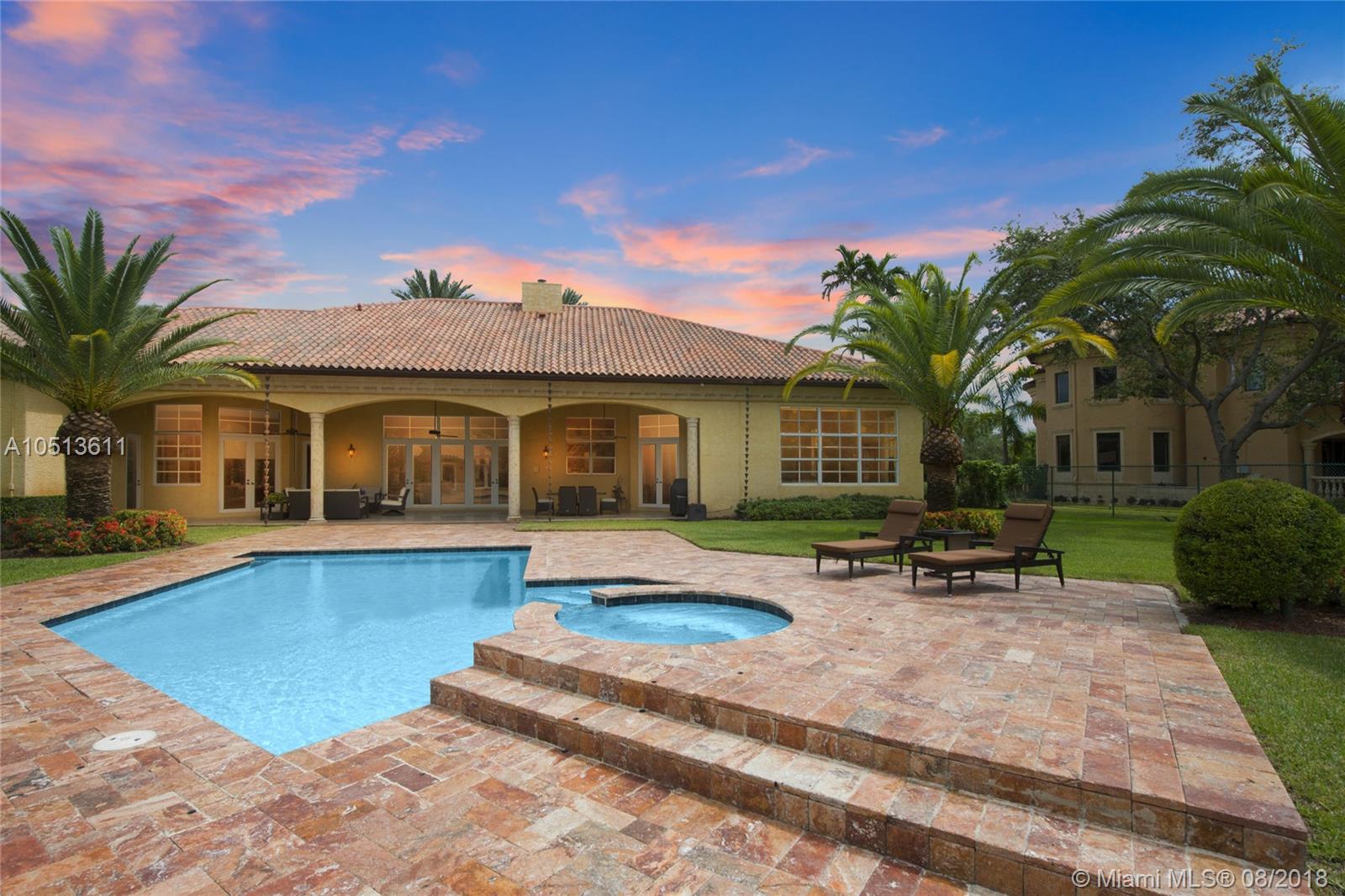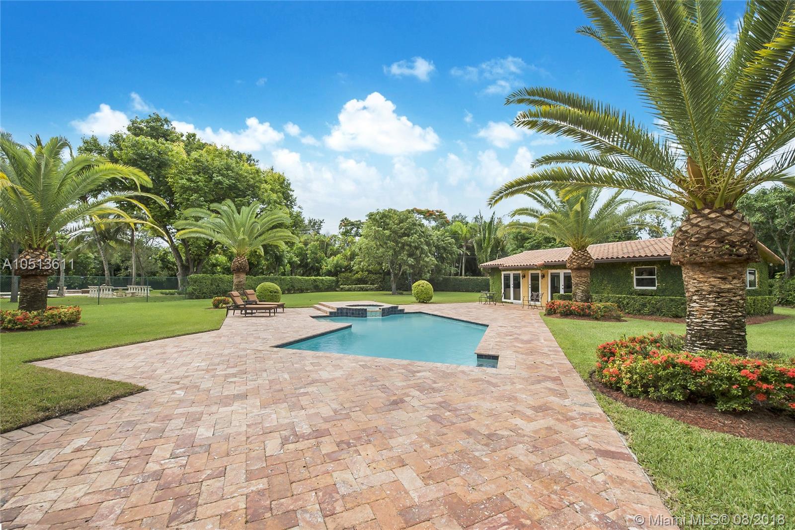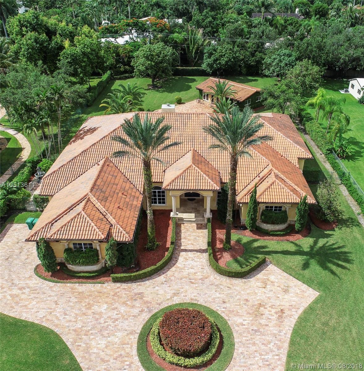 Magnificent Mediterranean design estate home with detached pool/guest house. Home is nestled on lush, gated acre lot in sought after northeast Pinecrest. The main house, 5B/5B with good quality finishes and great appointments, guest house 2B/1B. Beautiful entryway with gorgeous marble floors with onyx inlays, lighted art niches & fireplace. Grand MB w/sitting area and enormous walk-in closet, gourmet kitchen, coffered ceiling in the large family room with wet bar. A home to be enjoyed and relax in!