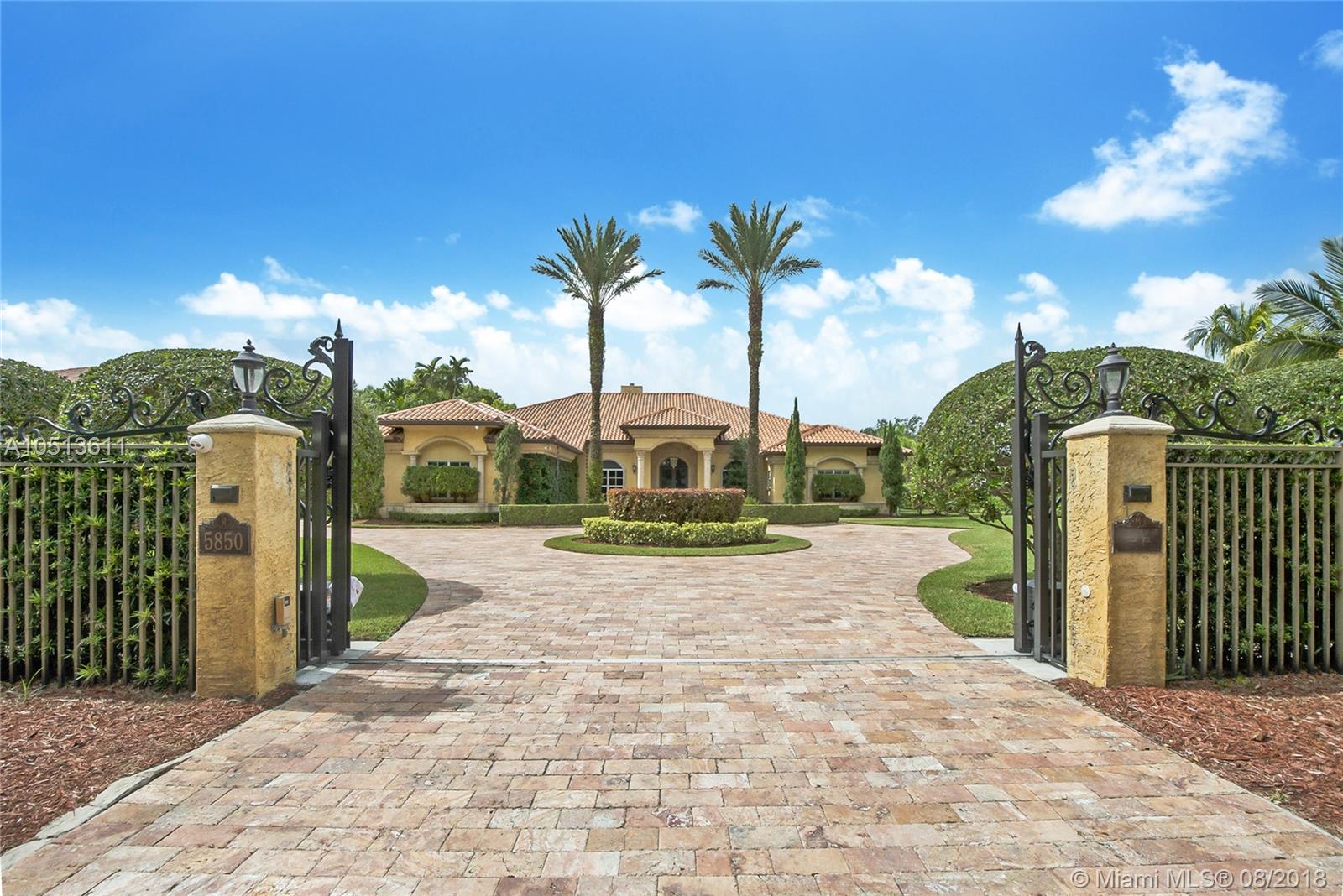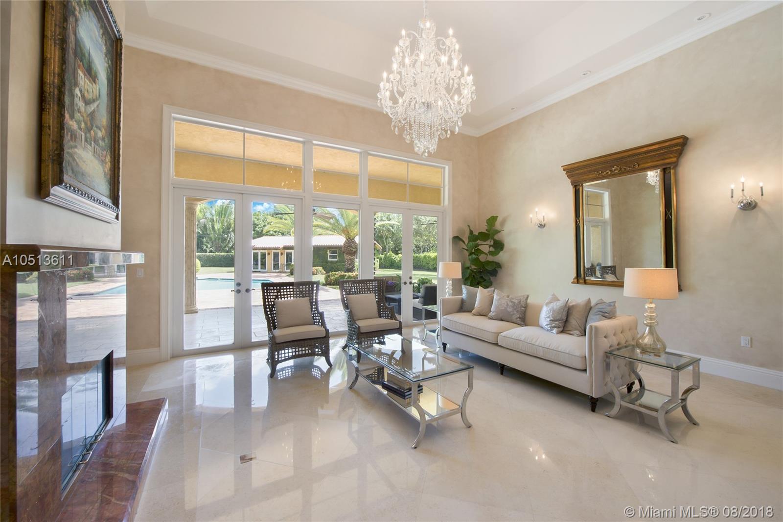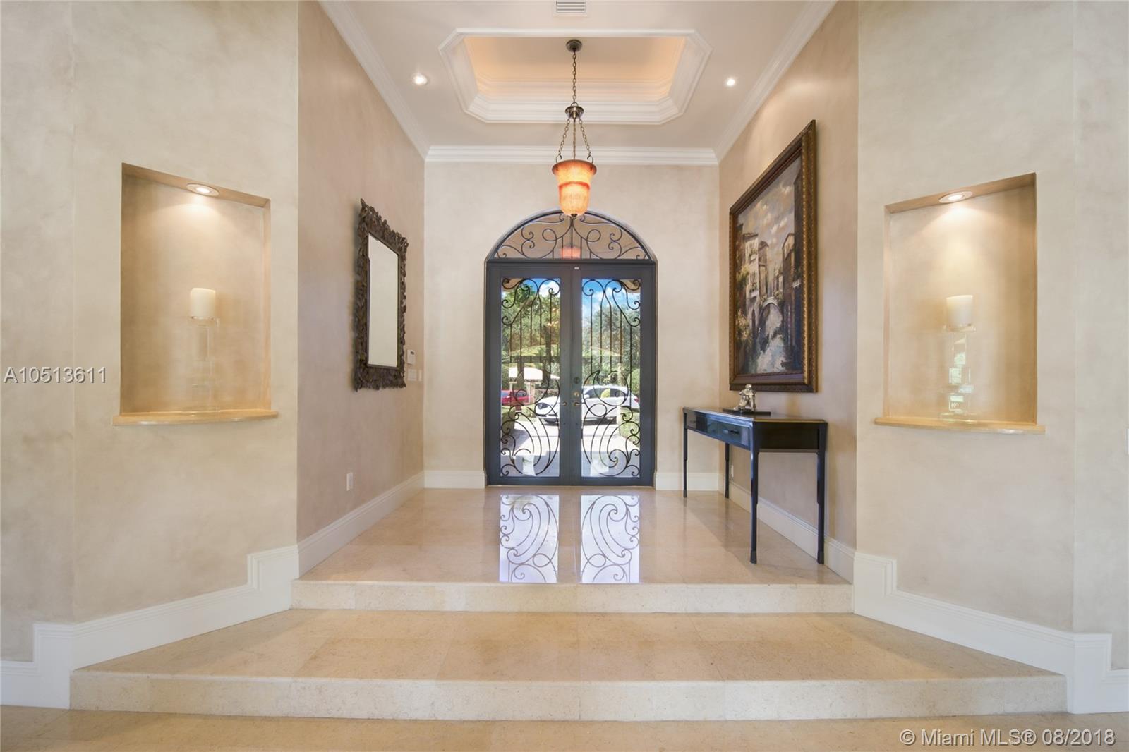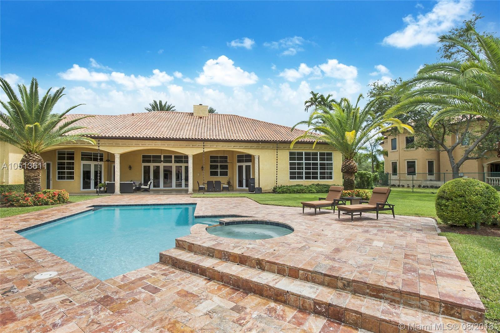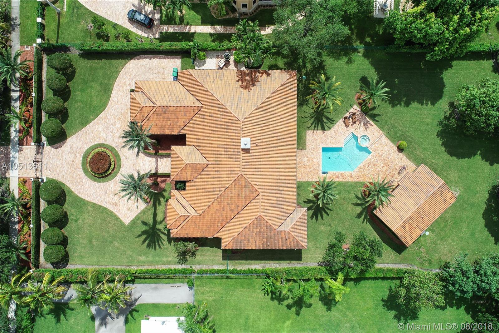 Magnificent Mediterranean design estate home with detached pool/guest house. Home is nestled on lush, gated acre lot in sought after northeast Pinecrest. The main house, 5B/5B with good quality finishes and great appointments, guest house 2B/1B. Beautiful entryway with gorgeous marble floors with onyx inlays, lighted art niches & fireplace. Grand MB w/sitting area and enormous walk-in closet, gourmet kitchen, coffered ceiling in the large family room with wet bar. A home to be enjoyed and relax in!