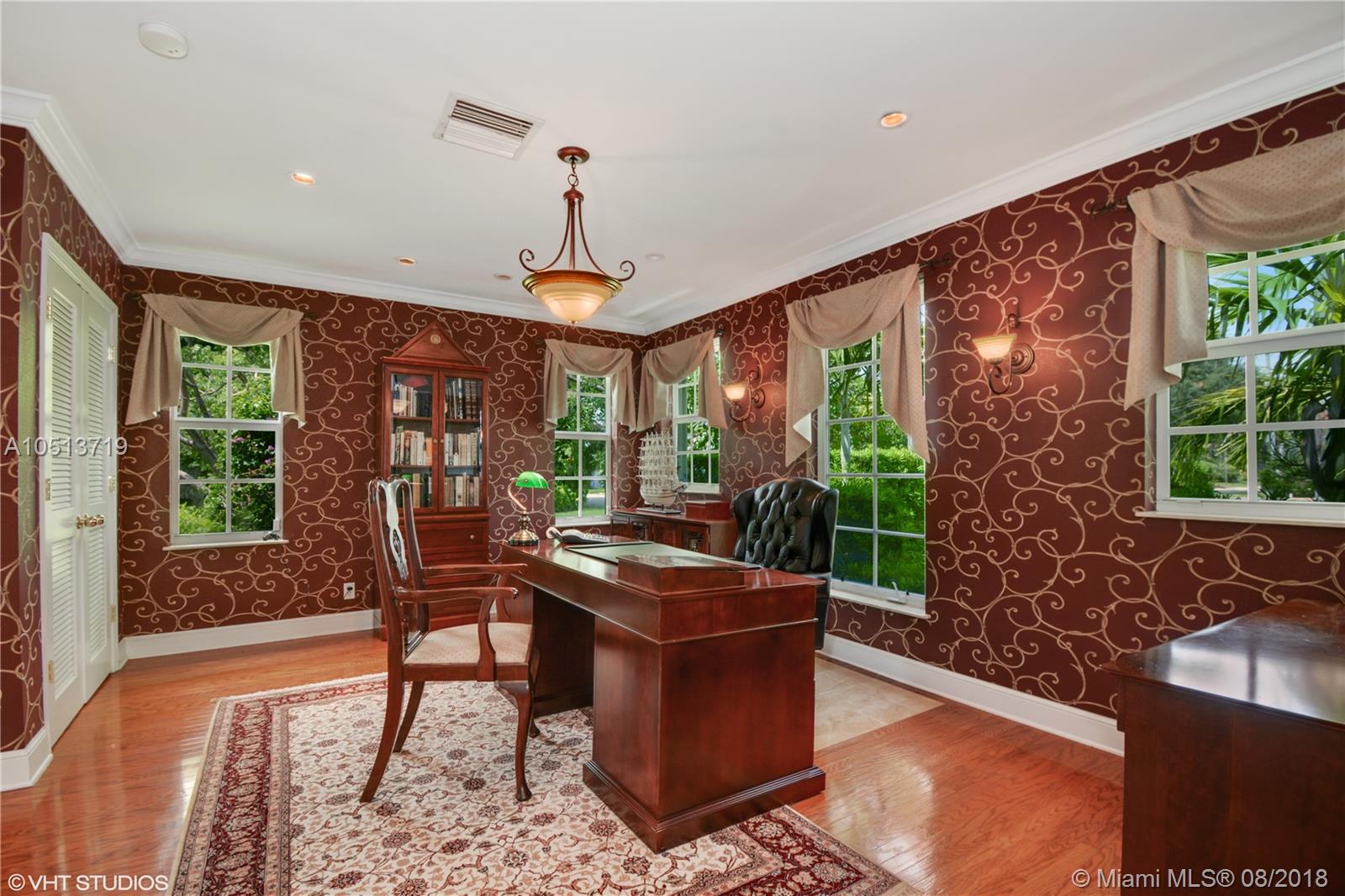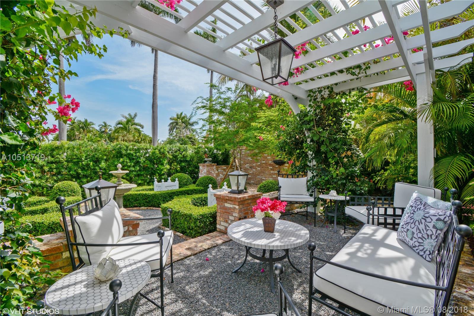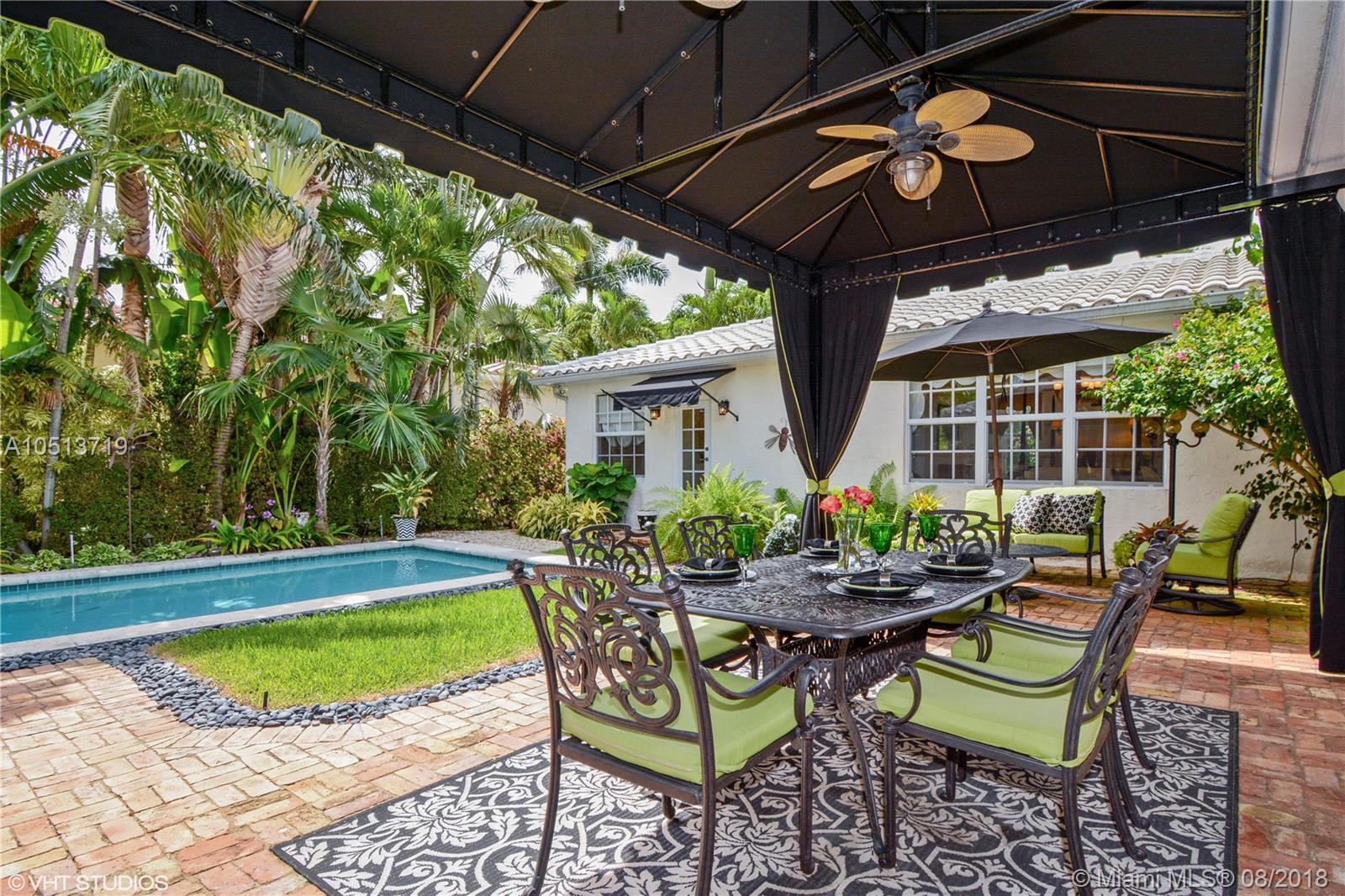 This 1940’s home has been graciously updated, yet still maintains it’s Old Florida charm. Hardwood floors throughout, crown molding, updated bathrooms, and gourmet kitchen with gas stove top. Two AC’s, two water heaters, gas fireplace, all impact windows and doors. This three bedroom 3 bath homes also features a family room and large office. Master bedroom has sitting area and large walk-in closets, and Spa style bathroom. Outdoor living at it’s best, lush mature landscaping with captivating gardens, tropical pool area with outdoor kitchen, surrounded by Chicago brick. **The furniture is also for sale**