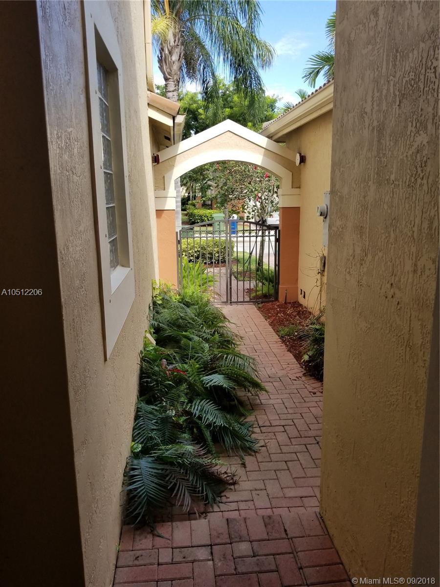 Beautiful Courtyard at the Grove 3 bedroom 2 1/2 bath town home with tile downstairs and laminated wood floors upstairs, backing up to private hedge and the Weston public library. Walking distance to Falcon Cove middle school and Cypress Bay High A rated schools. Great investment location, location, location.. Rented $2000/month until May 2019.