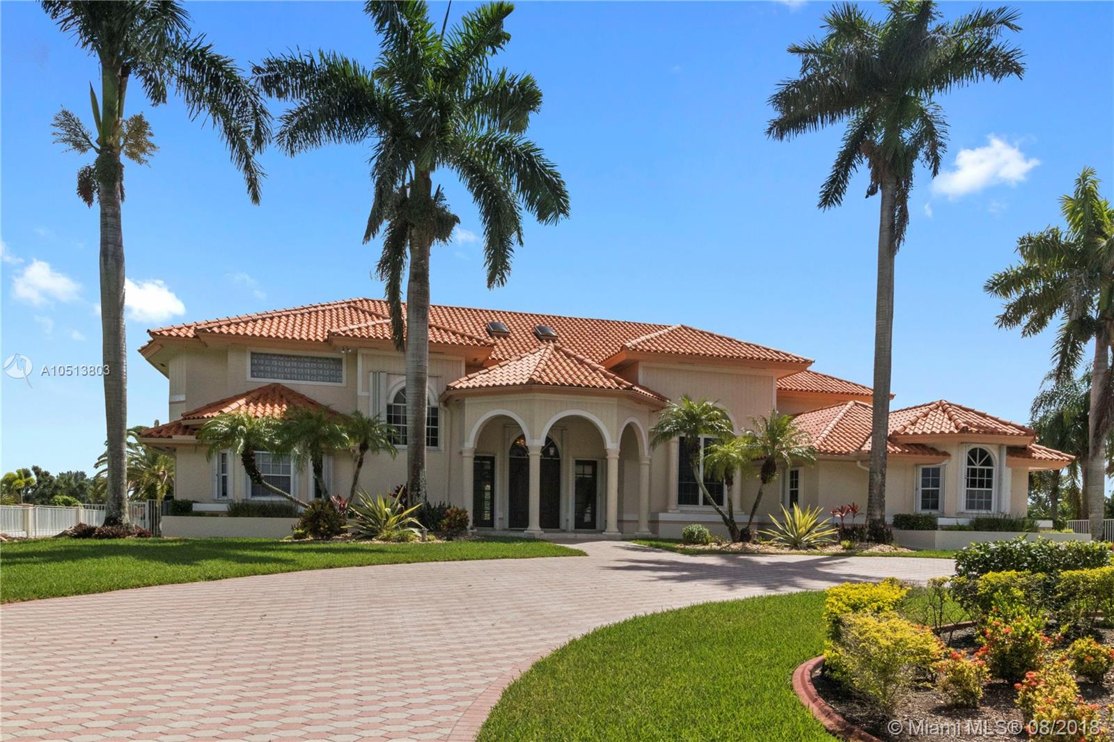1 ACRE PLUS GATED WATERFRONT HOME WITH POOL IN THE HEART OF SOUTHWEST RANCHES! THE 7,556 SQ.FT. HOME OFFERS A SPLIT FLOOR PLAN, 6 BEDROOMS, 5.5 BATHS INCLUDING CABANA BATH. FEATURES INCLUDE NEW REMODELED BATHROOMS, SUBZERO APPLIANCES, SOPHISTICATED WATER FILTRATION SYSTEM, PLANTATION SHUTTERS, NEW SALT WATER POOL SYSTEM, FULL SIZE BASKETBALL COURT, ACCORDION SHUTTERS, OVERSIZED CIRCULAR DRIVEWAY AND 3 CAR GARAGE.