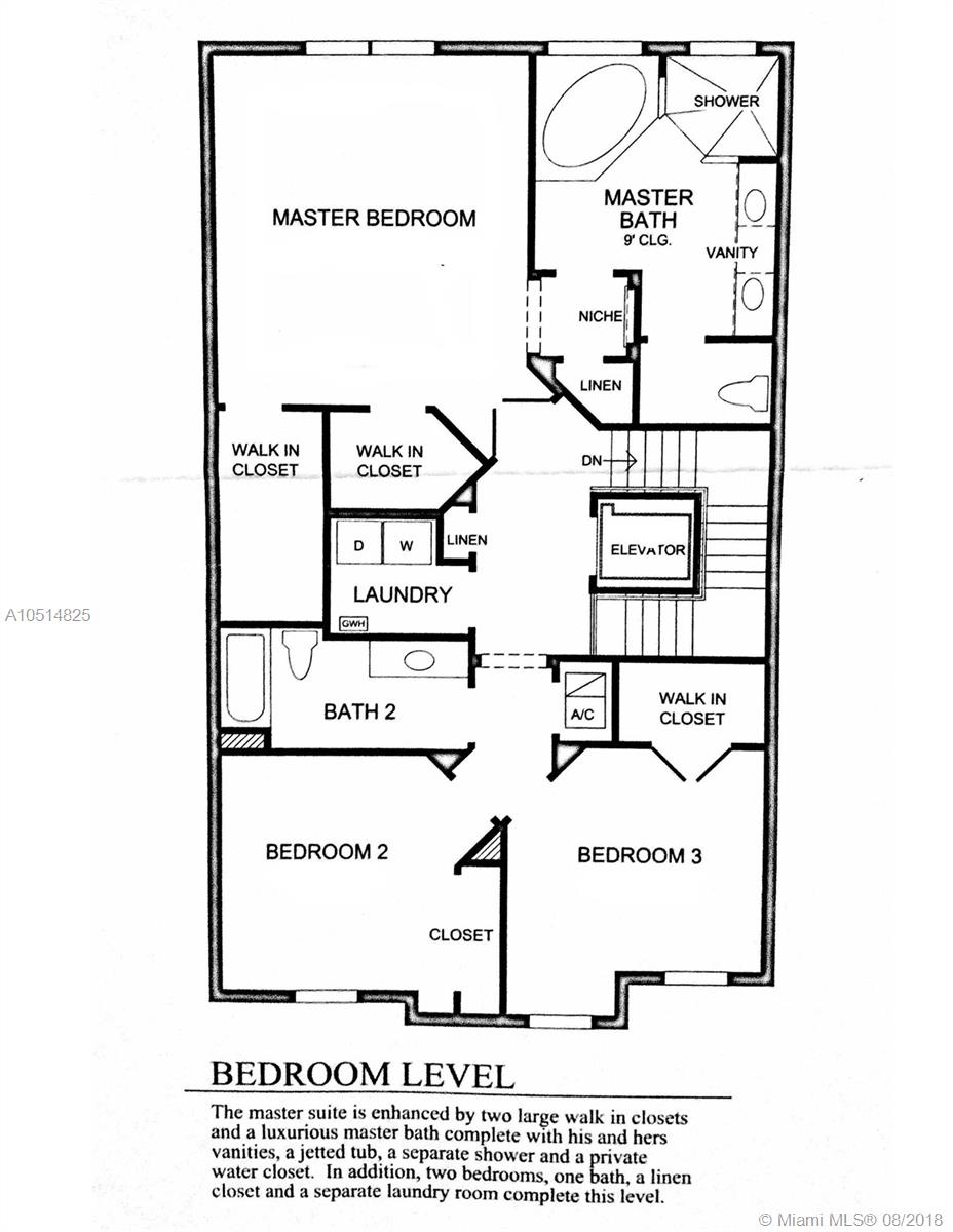 Beautiful 3 story lux townhouse, 3BR /3.5 bath +Office +bonus room 4000 total SF w elevator. Most desirable rarely available Casa Luna model. Best location-safest, quietest, interior promenade by guard gate & pool 1F: 2 story foyer, media/family room (convert BD), FULL BATH, private lanai w extended patio & lush landscaping, 2 car garage, 2 outside spaces 2F: Open gourmet kitchen (gas, double oven), living room, dining & breakfast nook w lots of natural light, office, half bath, east & west facing balconies 3F: Master suite, 2 walk-in closets w built-ins, bath w separate shower, whirlpool spa, private toilet & double vanity. 2 large bedrooms, FULL bath, laundry room. Impact windows & doors, tankless gas water heater, new 2 zone AC system, crown molding, 9+ ft ceilings