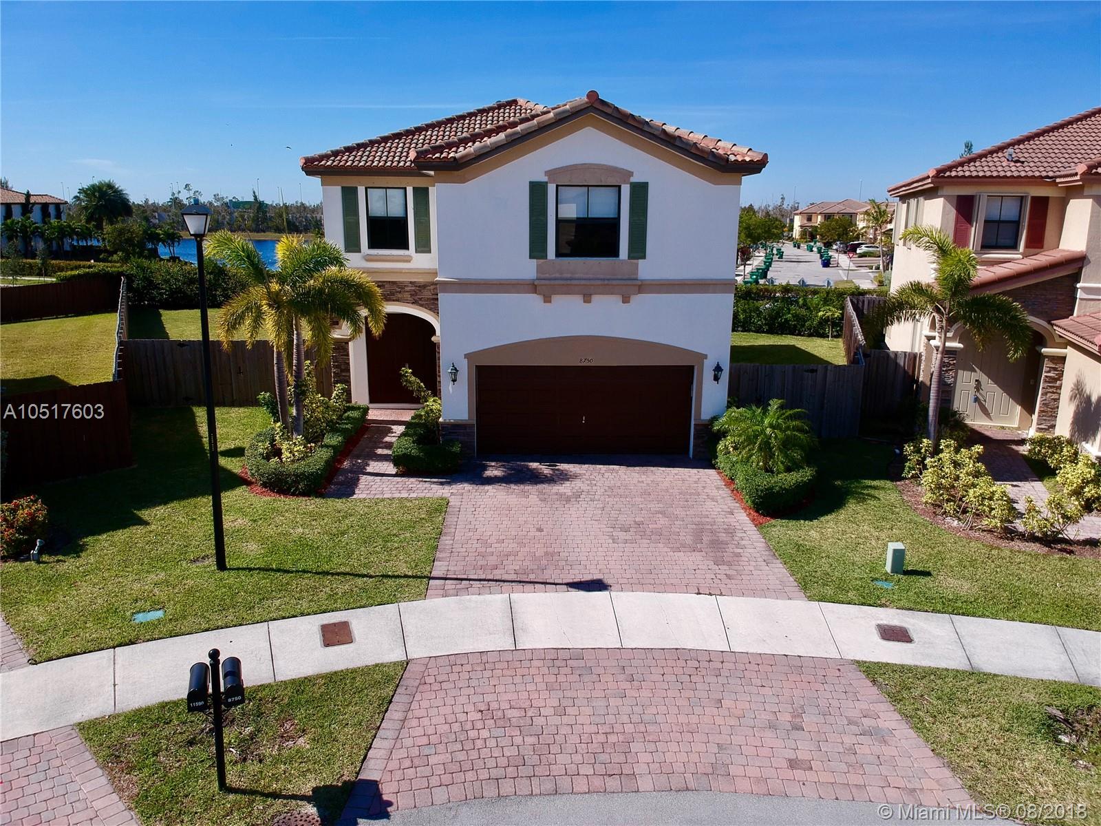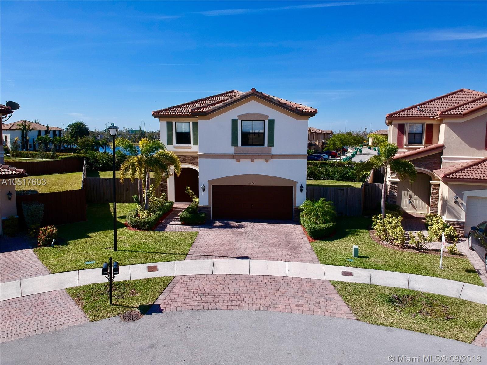 Elegant CORNER Single Family Home With 8,310 SF LOT, 2 Story Unit, 2 Car Garage and BIG Back Yard with a huge potential. 4 Bedrooms and 3 1/2 Bathrooms. Located in the prestigious St MORITZ ESTATE Community at Doral, FL. Large kitchen with wood cabinets and a beautiful granite counter top, with a breakfast nook area. Lake view from 2nd Floor. This home, was built only in 2012, and it is in perfect condition. Very quiet area and low traffic. Allow yourself to Relax and Enjoy the Beautiful Club House, with swimming pool, Fitness Center, Tennis and Basketball court, Party Rooms and much more. This property is very close to Dr. Toni Bilbao Preparatory Academy, Dr. Rolando Espinosa K-8 Center, and Ronald Reagan High School and the new Doral Legacy Park. NOTE: Gate Access in process of approval.