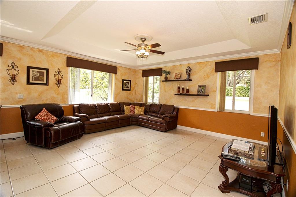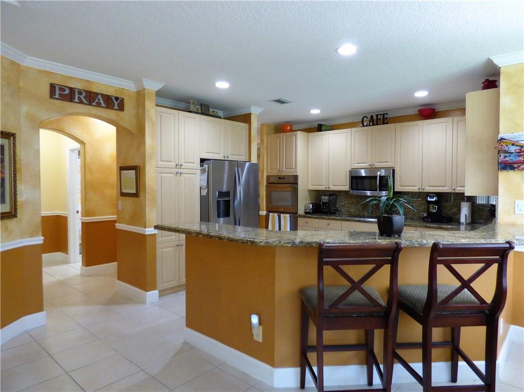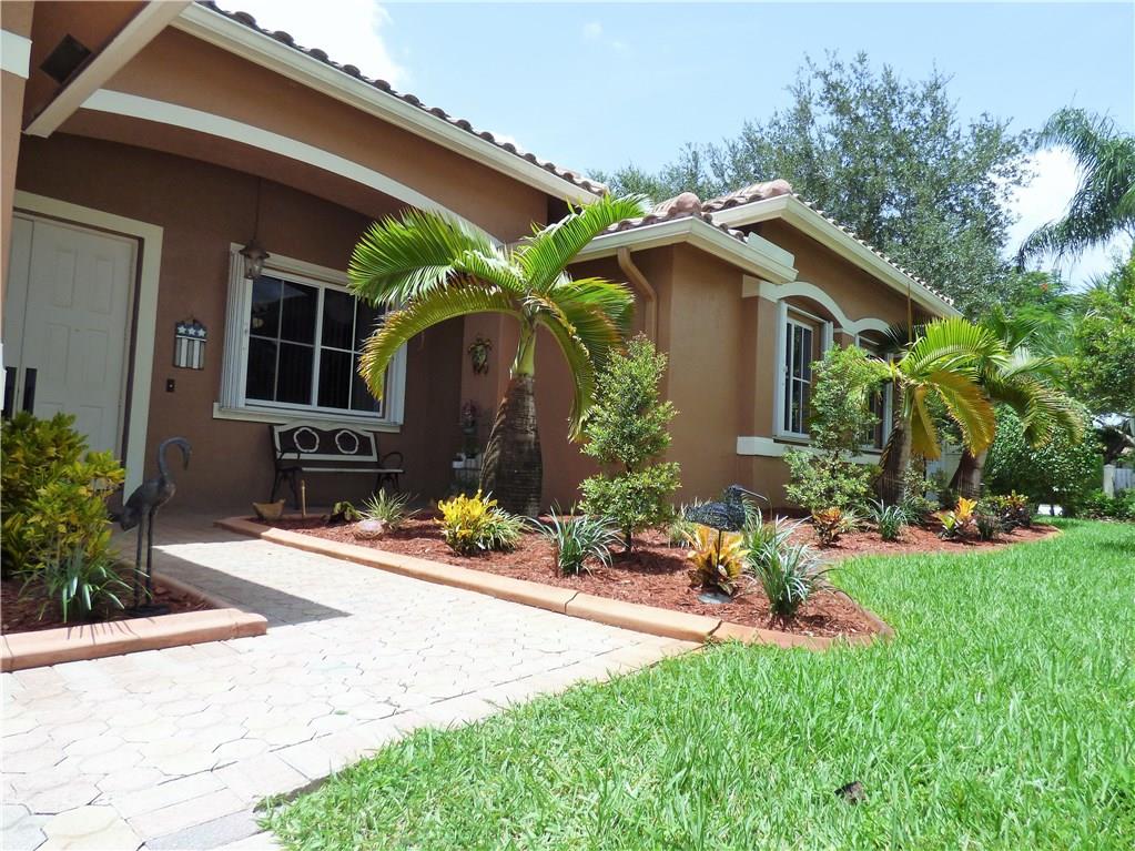FANTASTIC 1STORY HOME WITH 4BED, 3BATH, 2CAR GARAGE ON A HUGE CORNER LOT. VERY WELL KEPT, CERAMIC FLOORS IN LIVING AREAS & LAMINATE FLOORS IN BEDROOMS, UPGRADED KITCHEN CABINETS W/S-STEEL APPLIANCES AND GRANITE COUNTERTOPS, ACCORDION SHUTTERS, VAULTED CEILINGS, CROWN MOLDINGS, CALIFORNIA STYLE CLOSETS, PRE-WIRED TO CONNECT A GENERATOR, RAIN GUTTERS & EXTENDED SCREEN-IN PATIO AREA & PAVERS. AWESOME BACKYARD, FENCED AND WITH ROOM FOR 3 POOLS, FRUIT TREES. GUARD GATED COMMUNITY, GREAT PROPERTY!
