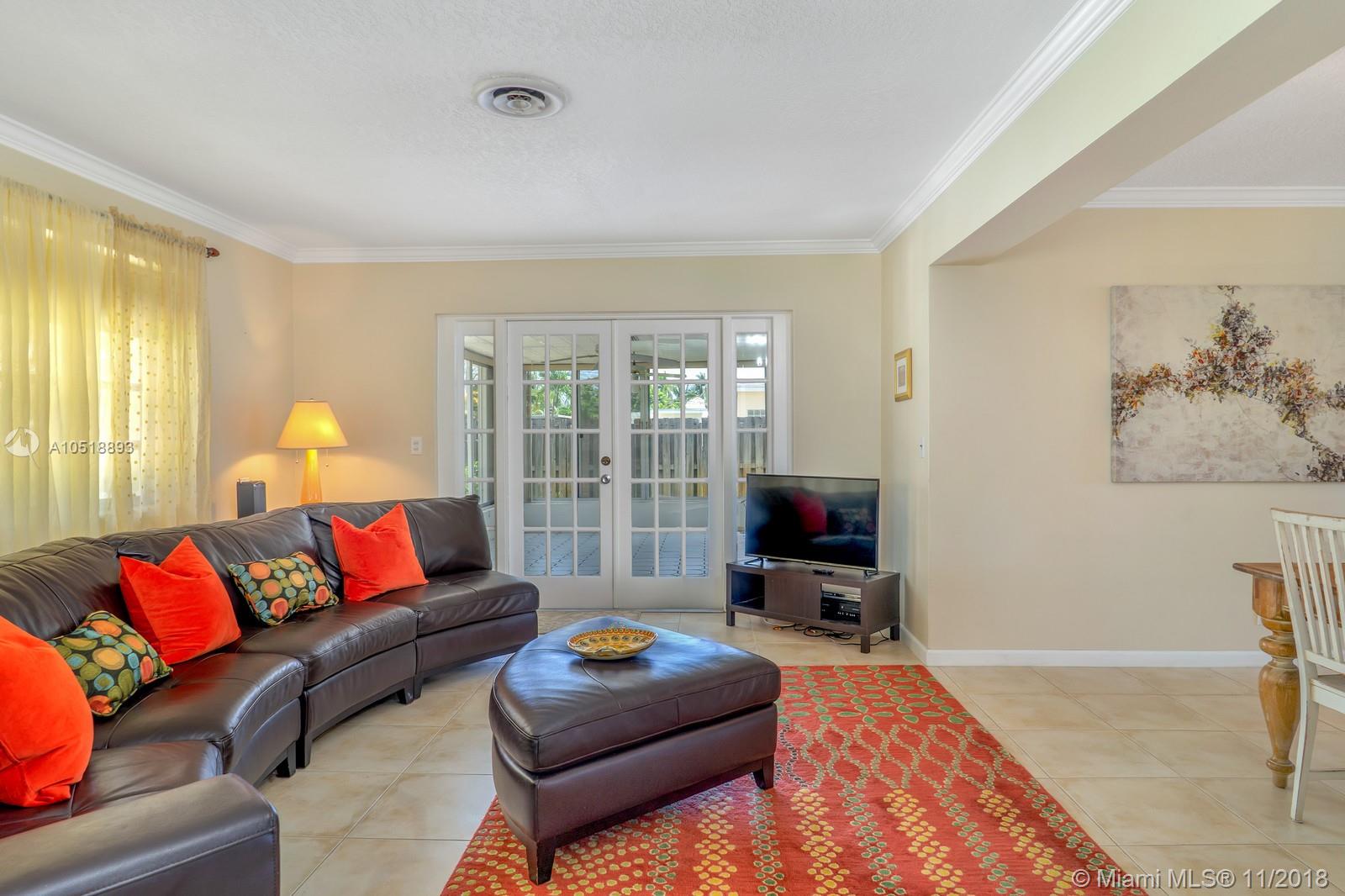 A RARE FIND ON A VERY DESIRABLE STREET AND BLOCK IN HOLLYWOOD HILLS ESTATES. THE HOME'S OPEN CONCEPT IS INVITING AND FUNCTIONAL. LIVING, FORMAL DINING AND FAMILY ROOMS ALL FLOW INTO EACH OTHER ALLOWING FOR EASY ENTERTAINING. THE GALLEY-STYLE KITCHEN FEATURES CUSTOM, SOLID CHERRY WOOD CABINETRY, STAINLESS STEEL APPLIANCES, A NATURAL GAS STOVE AND COOKTOP AND ROOM FOR INFORMAL, EAT-IN DINING. LARGE FLORIDA ROOM WITH CENTRAL AC, DOUBLE, CEDAR-LINED CLOSET AND SEPARATE ENTRANCE /TO BACKYARD CB A 4TH BEDROOM. REMODELED MASTER AND GUEST BATHS. CROWN MOLDING. KNOCK DOWN CEILINGS. TILE IN ALL LIVING AREAS. TRUE 2-CAR GARAGE WITH HALF-BATH COMPLETES THE LAYOUT. GAS, TANKLESS WATER HEATER, DRYER AND CONNECTION FOR BBQ GRILL. CIRCULAR DRIVE. SPACIOUS BACKYARD. 4 ROYAL PALMS, LYCHEE AND MANGO TREES.