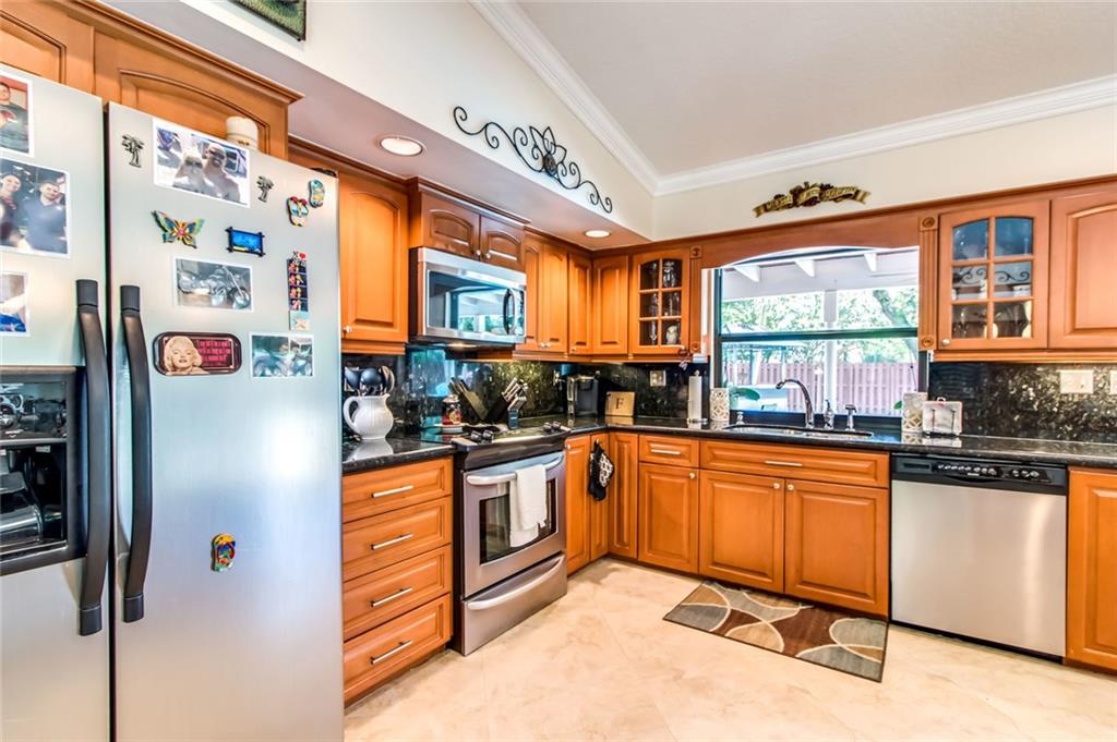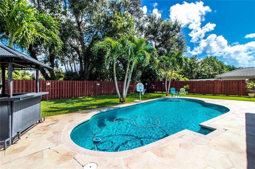 Very well maintained home on a large lot. Fenced in backyard with free form pool. New diamondbrite finish. The interior has an open floor plan with high ceilings with knock down textured finish and recessed LED lighting. Up to date kitchen and two newly remodeled bathrooms. Barrel tile roof. Impact resistant glass. A park and excellent schools nearby. No HOA.