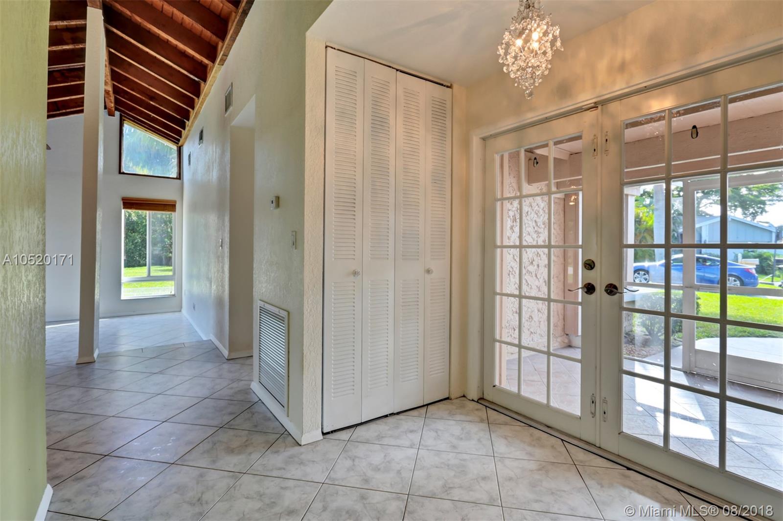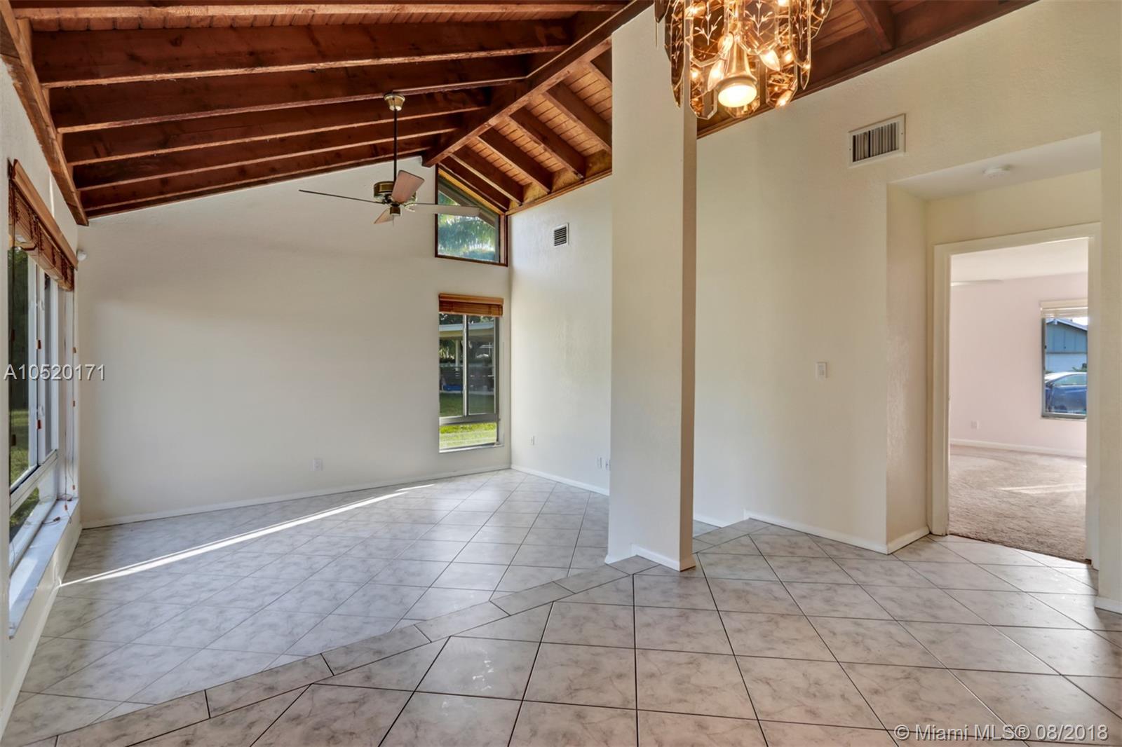 Come look at this wonderful home sitting on over 1/4 acre cul de sac location. This pool home offers vaulted ceilings throughout, A split bedroom plan, lots of windows and open plan with plenty of natural lights. Kitchen ideally situated between Family room on one side and Dining room/ Sunken Living room on the other side with soaring exposed beams. Large Master Bedroom with vaulted ceilings, Jacuzzi tub in Master Bath. Screened front porch and a large screened in patio overlooking the recently resurfaced pool and one huge backyard. Large concrete slab on the side that's perfect for a boat or RV. AC less than 2 tears, hurricane shutters. All this with a 2 car garage. What a fantastic floor plan and well designed home!