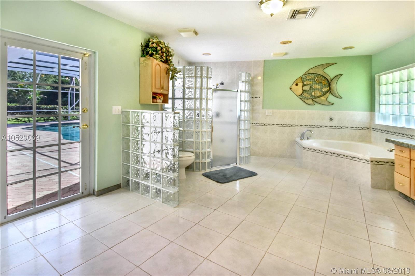 Estate ranch home on an acre in prestigious Southwest Ranches, completely fenced, meticulously kept, separate guest suite and side drive way, pull in your RV with electric , cabana, or flex room , with full bath and separate entrance , massive screened pool/spa and patio area overlook picturesque grounds. Bring your Horses! Updated kitchen features solid wood cabinets granite counters and stainless appliances , loads of room to roam inside and out. No homes behind you.