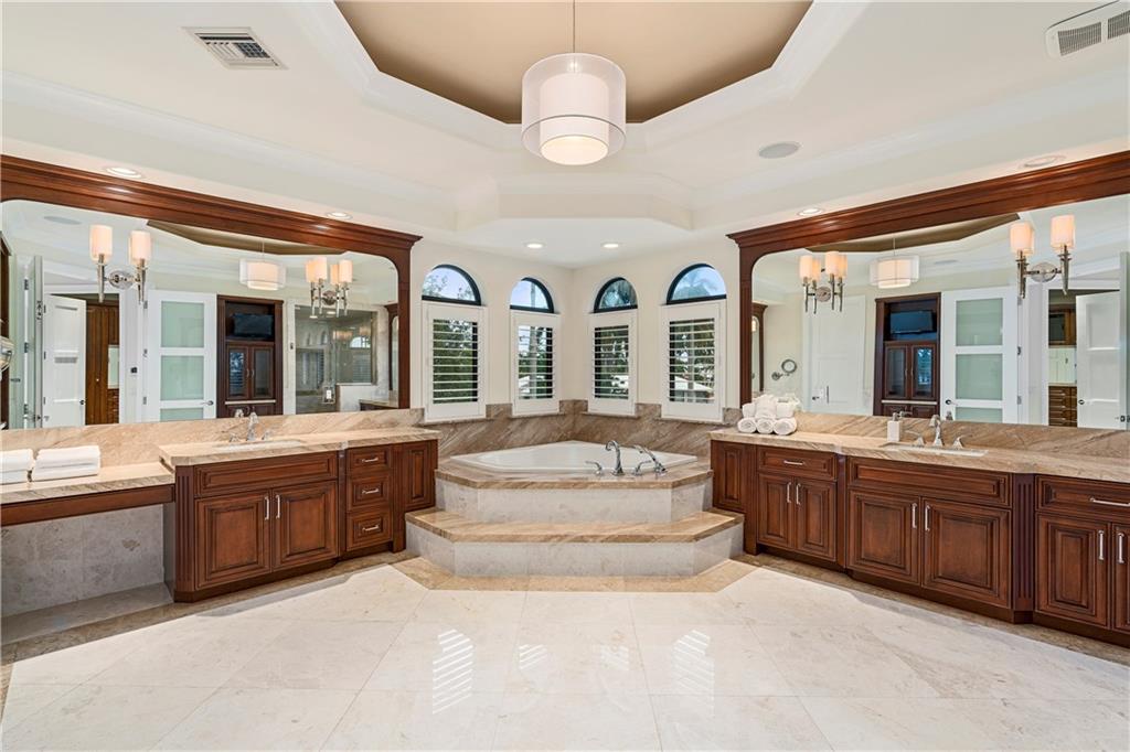 Impeccable estate w/100'of water frontage, 100 amp, 50 amp & 30 amp power on dock. Luxurious master suite w/huge waterfront balcony. Media room, control for smart home system, speaker system throughout house. Limestone floors, elevator, up & downstairs laundry rooms. Saline system pool, outdoor kitchen w/2 fridges, cabana bath. Full house generator, double the fuel capacity. Whole house propane gas. Furniture & electronics, including TVs, not included in asking price everything as seen available.