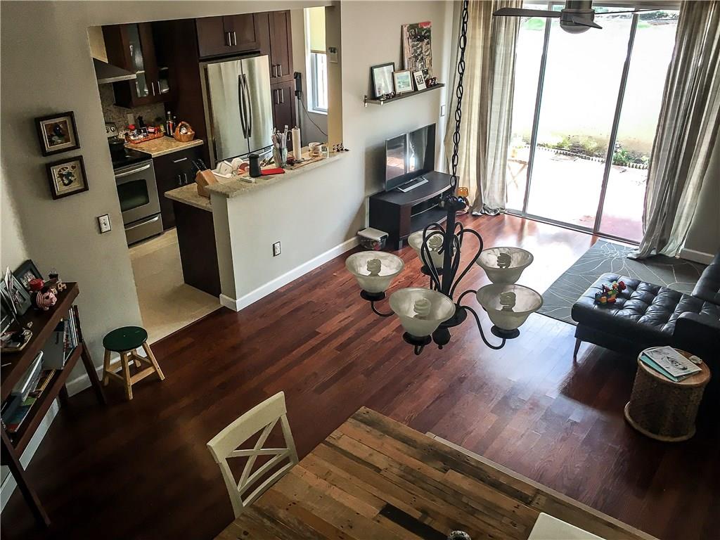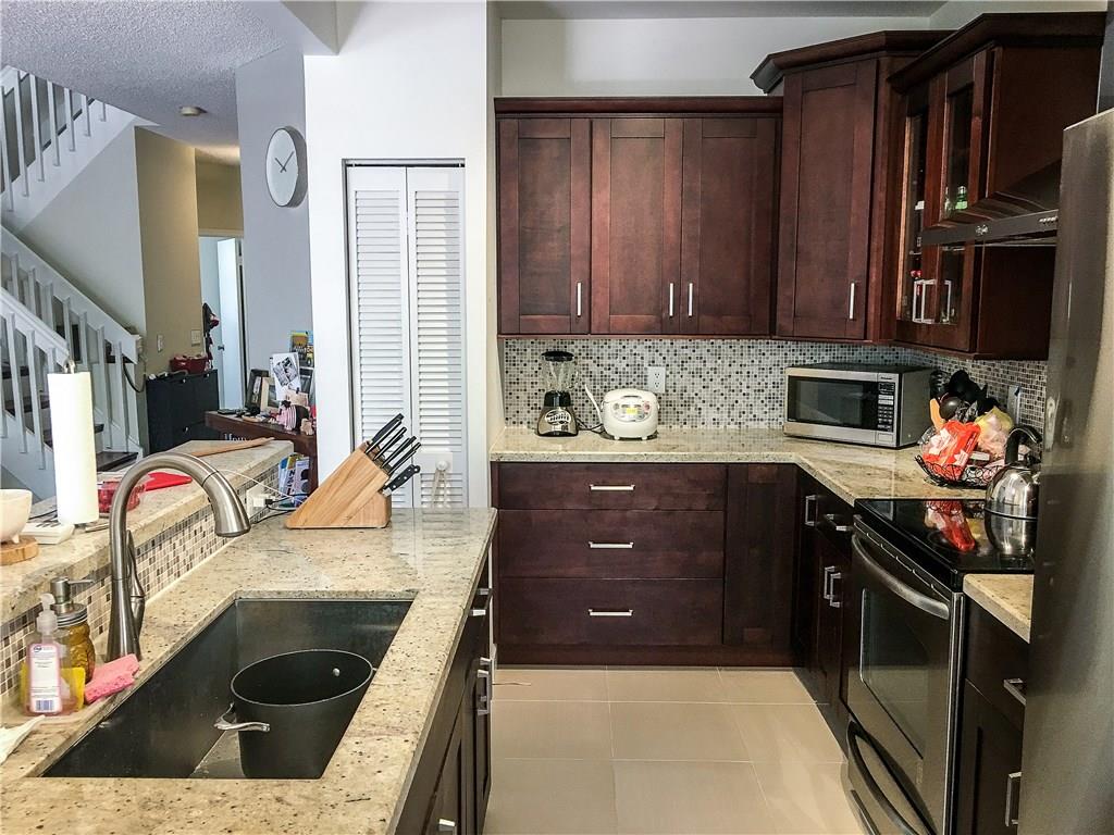 SUBSTANTIALLY UPGRADED 3 BEDROOM 2 1/2 BATH TOWNHOME WITH ONE CAR GARAGE IN A WONDERFUL COMMUNITY CLOSE TO MAJOR SHOPPING AND HIGHWAYS. ENTIRE HOUSE CONSISTS OF ENGINEERED WOOD FLOORS (MADE IN USA) AND ITALIAN PORCELAIN TILE. THE KITCHEN HAS FRAMED WOODEN CABINETS WITH CASHMERE WHITE GRANITE COUNTER TOPS AND MARBLE MOSAIC BACKSPLASH. STAINLESS STEEL APPLIANCES AND ENERGY EFICIENT AC (16 SEER) AND 1.28 GPF WATER SAVING TOILET. HURRICANE IMPACT SKYLIGHT. NO HOA APPROVALREQUIRED.