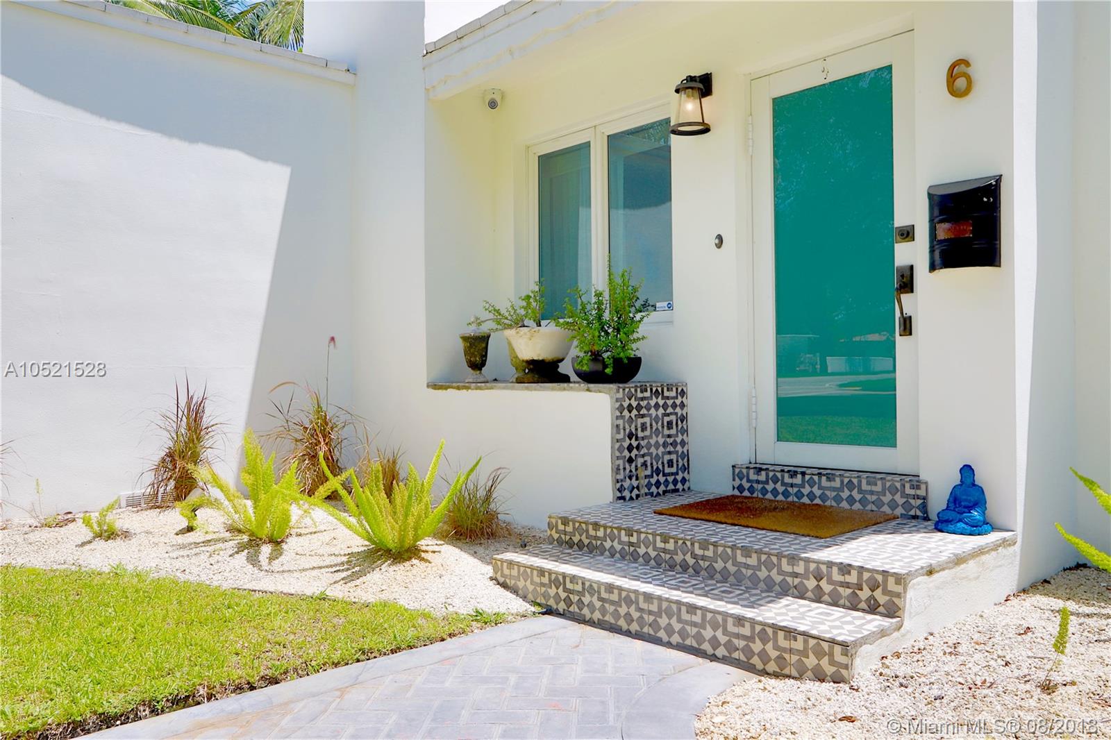 SHORES CASA PALMAS - Live large in this smartly-updated compact 1940s dream home with Deco design details and countless upgrades. Wide-open living area is spacious and perfect for get-togethers. Modern eat-in open gourmet kitchen boasts sleek white cabinetry, SS appliances, and a Carrara marble top island with gas range. Beautifully-maintained original finishes and upgrades include rich hardwood floors, gorgeous retro-chic tiles, new AC, upgraded plumbing and electric, recessed lighting, indoor-outdoor sound system, security cameras throughout, smart Nest thermostat, and impact windows and doors overlooking the private lush tropical backyard with room for a pool. Plus a convertible one-car garage and full storage room. All on a large corner lot in the heart of Miami Shores!