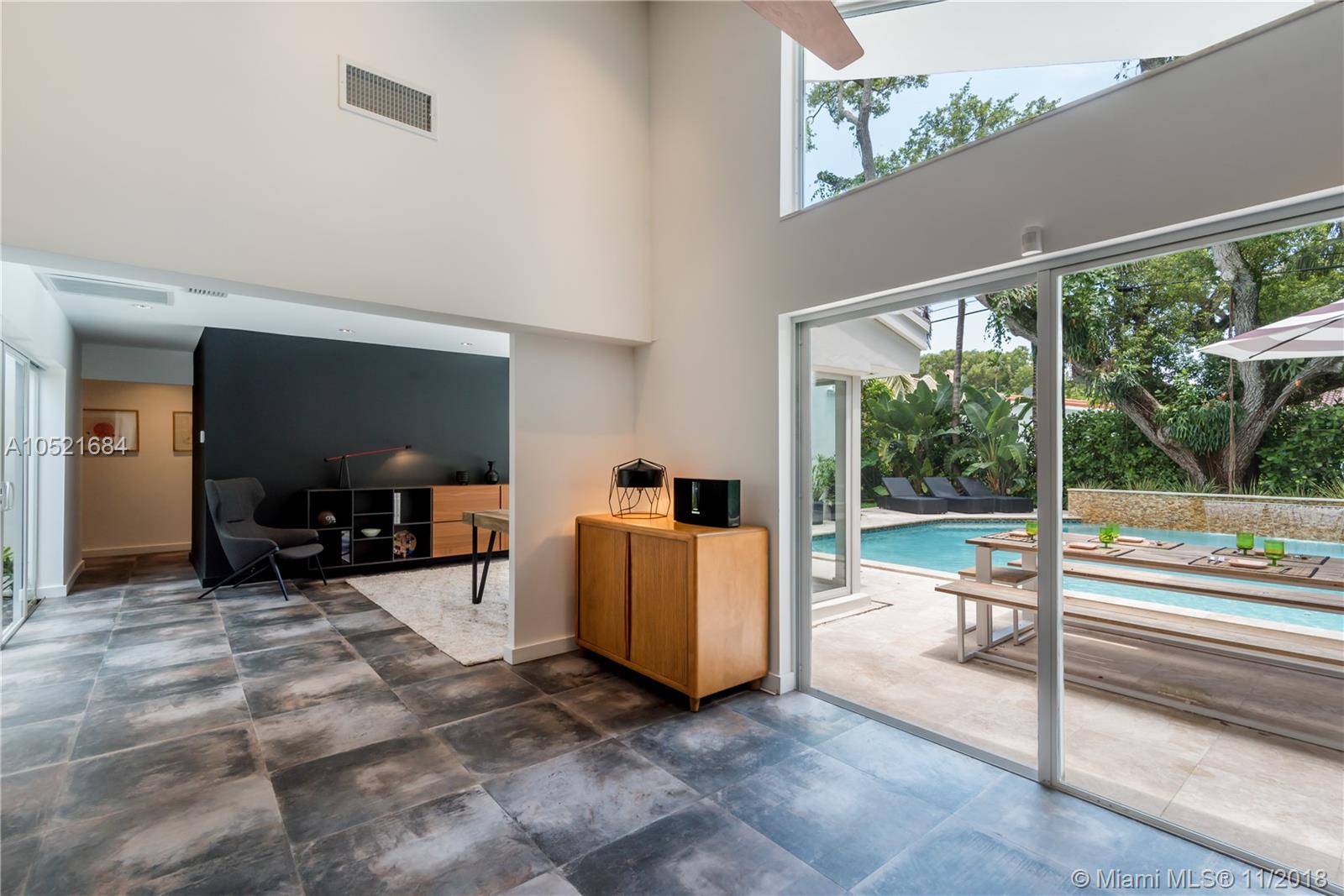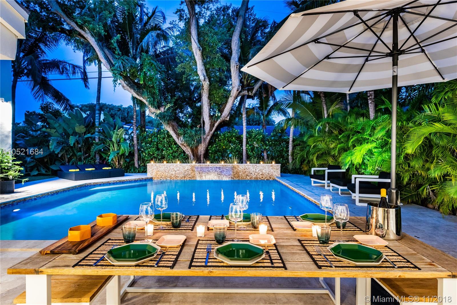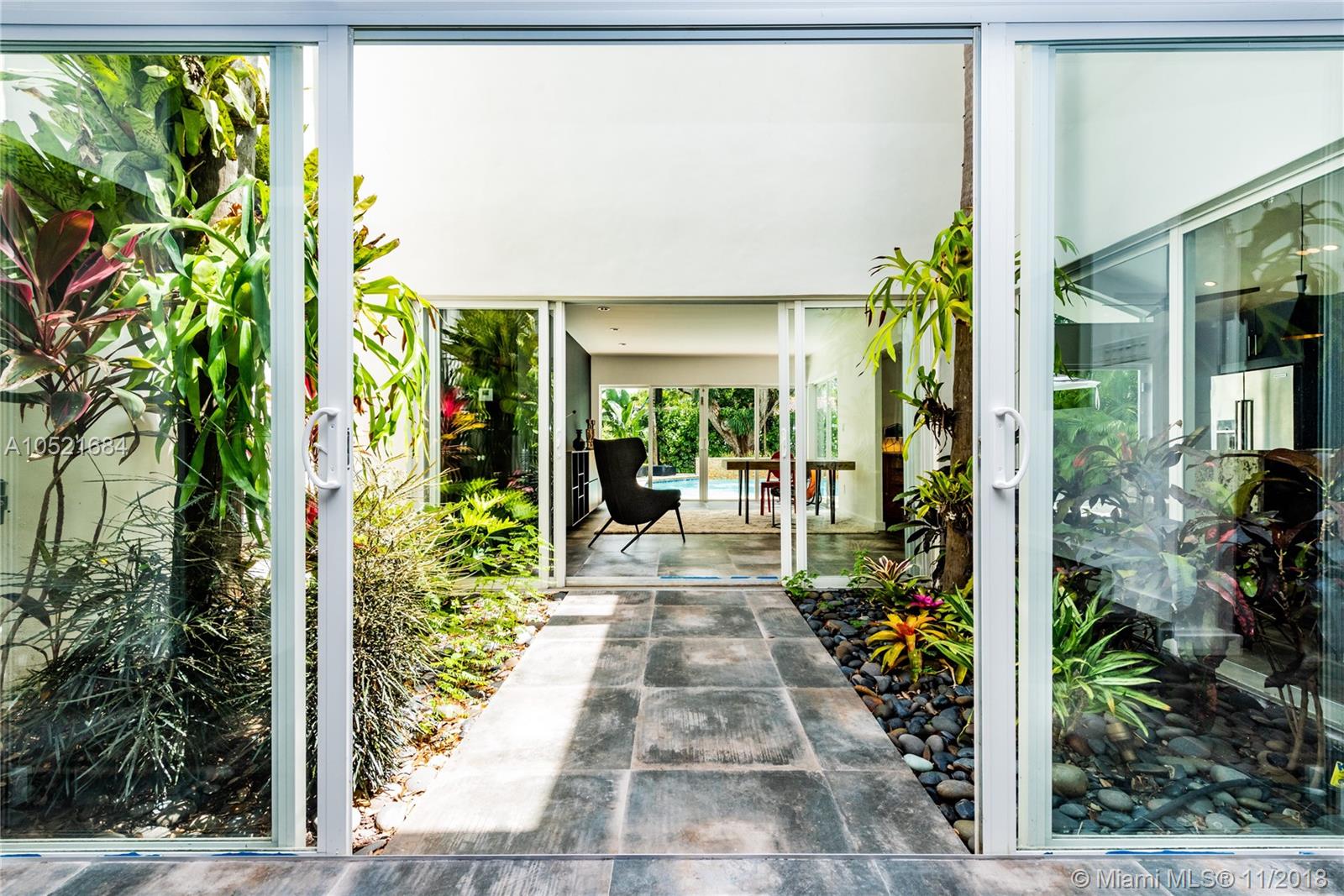 This modern masterpiece looks like it came right out of Architectural Digest magazine! Nestled in a mature canopy tree hammock, this splendidly-renovated statement compound features smart, subtle mid-century inspired design. A spacious, light-filled, modern marvel, delightfully and tastefully secluded from the public realm with intimate privacy. Entertainers will relish the indoor-outdoor living with an oversized custom waterfall pool, multiple entertainment patios, and the Instagram-ready one-of-a-kind open-air atrium at the heart of the home. Thoroughly updated with new roof, electrical, plumbing, European porcelain floors, kitchen and baths, Lutron lighting, impact windows and a spacious two car garage. All in Miami Shores' most prestigious neighborhood, east of Biscayne.