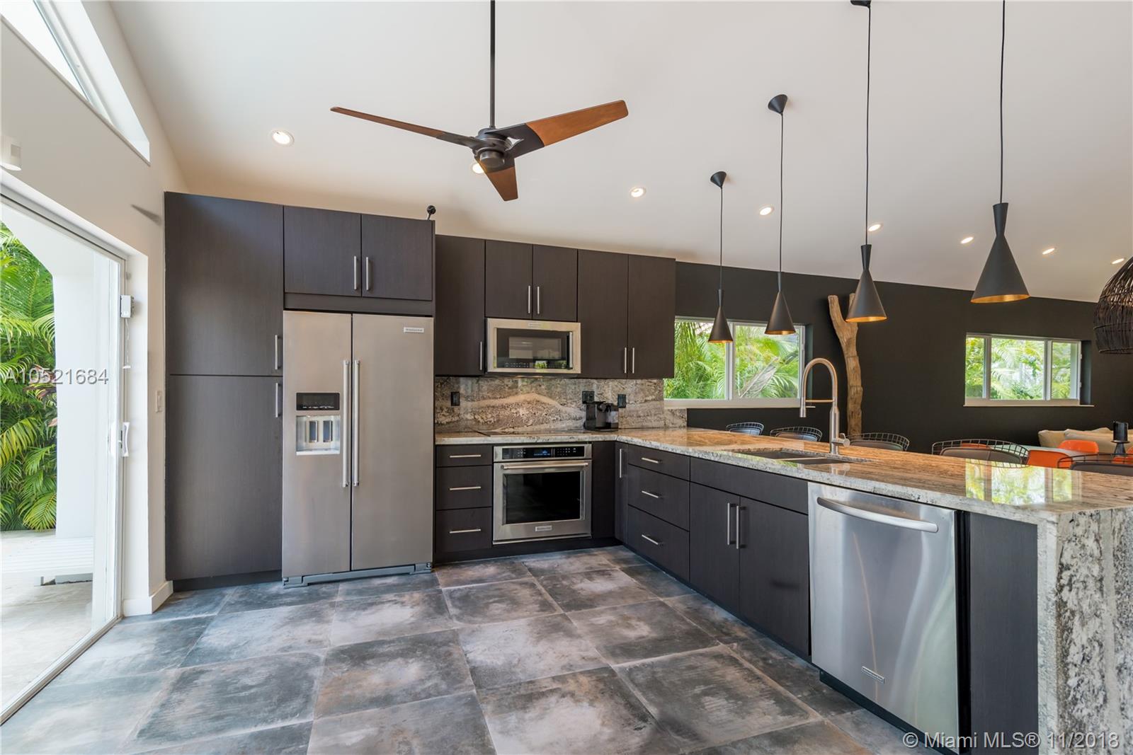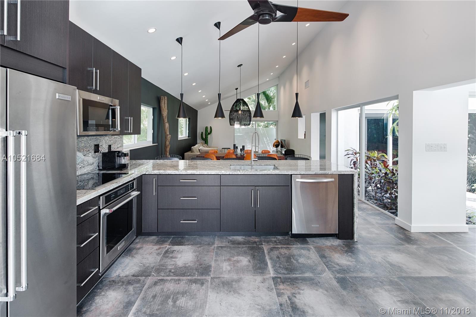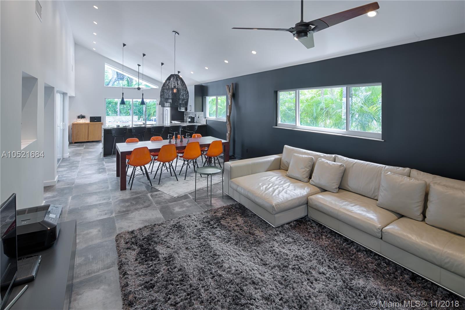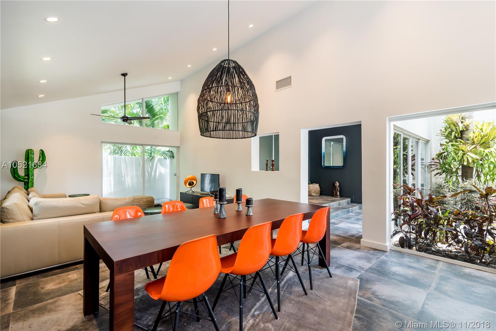 This modern masterpiece looks like it came right out of Architectural Digest magazine! Nestled in a mature canopy tree hammock, this splendidly-renovated statement compound features smart, subtle mid-century inspired design. A spacious, light-filled, modern marvel, delightfully and tastefully secluded from the public realm with intimate privacy. Entertainers will relish the indoor-outdoor living with an oversized custom waterfall pool, multiple entertainment patios, and the Instagram-ready one-of-a-kind open-air atrium at the heart of the home. Thoroughly updated with new roof, electrical, plumbing, European porcelain floors, kitchen and baths, Lutron lighting, impact windows and a spacious two car garage. All in Miami Shores' most prestigious neighborhood, east of Biscayne.