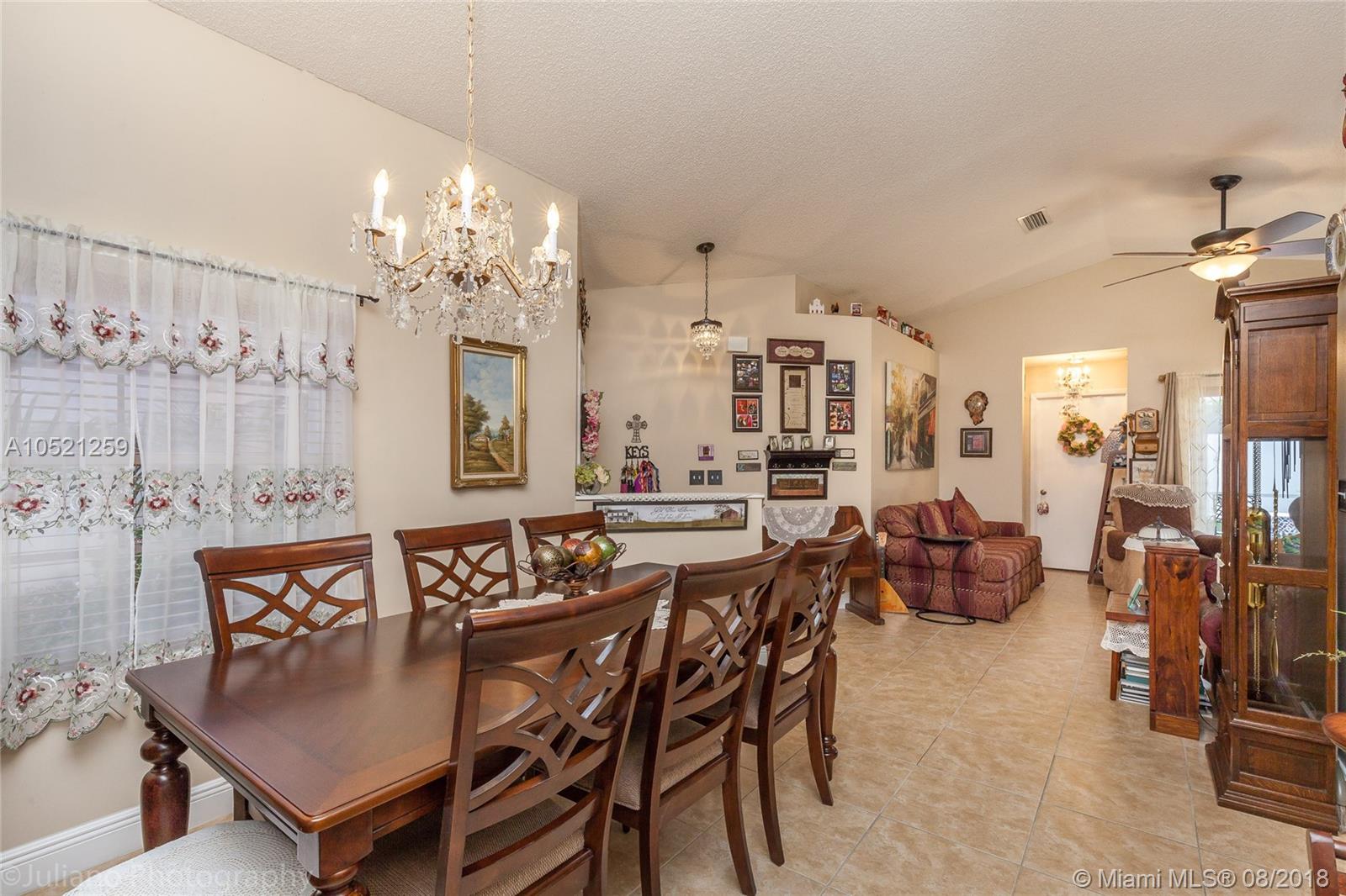 Beautiful 3/2 single story home. It features gorgeous new updated granite kitchen with 42' wood cabinets, pantry, and stainless steel appliances. New 18x18 tile floor through out and new wide baseboards. Freshly painted with pastel colors.Updated master bathroom with glass shower. Master bedroom w/his and hers closets. Recessing lights, high ceilings. 3 year old roof, accordion shutters, screened in patio and fenced backyard. Beautiful patio GREAT for entertaining.The very best of South Florida living!!!