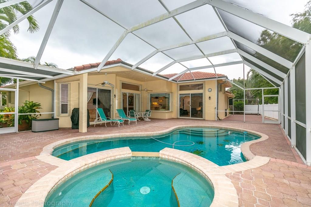 YOU DON'T WANT TO MISS OUT ON THIS ONE! This triple split bedroom plan is immaculate and move in ready! This Home features volume ceilings, tile throughout, upgraded bathrooms, large open kitchen, & upgraded landscaping. You will enjoy spending time on the large covered patio. Take a dip in the in pool and relax in complete privacy on your over sized screened in patio area. You will feel secure during hurricane season knowing this home has accordion hurricane shutters. This one is worth looking at!