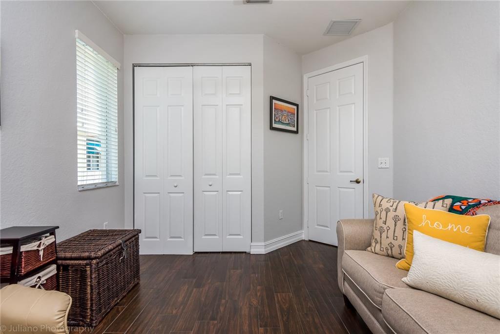 Very spacious corner townhome with private outdoor space in a pet friendly gated community now available. This townhome features an open floor plan with incredible natural light. The kitchen is open with white wood cabinets and granite countertops. The master suite is HUGE offering TWO walk in closets and sitting area. The windows are impact and the roof is metal which makes this home very low maintenance. A true MOVE IN READY home!