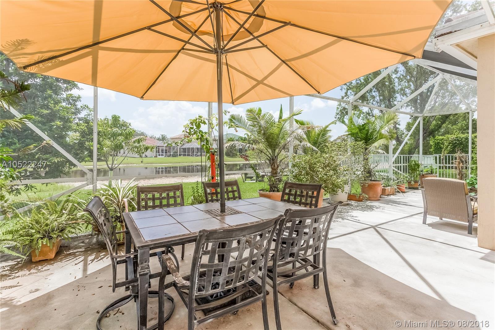 This 6-bed 4-bath single-family home is located in The Meadows, a luxury private Weston Community, with 3,207 sqft of living area and 3,723 total sqft. Recently Renovated: New AC and Hot Water Heater, All New Master Bathroom, Kitchen with Eat- in Breakfast area, Formal Dining, Formal Living Room, Patio Recently Re-Screened overlooking Waterfront w/ plenty of room for private pool if desired. Beautiful Real Wood Floors, & Extra Large Tile in Large Family Room. Lakefront Home, largest lake in Weston, great for fishing. Master Bedroom has bonus room, sitting room/nursery. Guest/Nanny Bedroom & full Bath on 1st level, 5 Bedrooms on 2nd Floor, 3 car garage, Led Energy Efficient lighting throughout. Lushly Landscaped with Fruit Trees, Great Community Pool down the street.