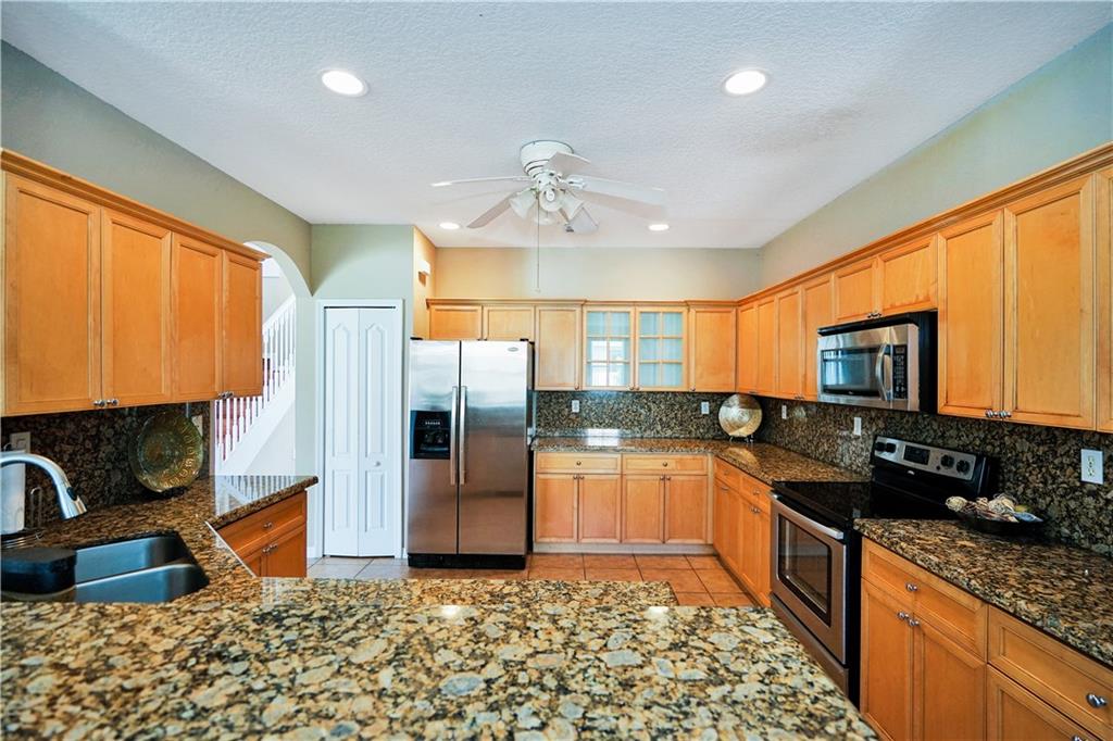 Upgraded 5 Bed 3 Bath in Melrose Landing of Monarch Lakes with a Home Warranty covering all appliances, AC's plumbing & electric. Upgraded kitchen: wood cabinets, granite & SS appliances with open concept to a spacious family room. Huge master bedroom ensuite with sitting area, two walk-in closets, large bathroom with dual vanities & Jacuzzi tub. One bedroom/bathroom downstairs. Grand staircase & loft. Volume ceilings. Tiled 1st floor. Fenced yard with room for pool. Community pool, tot lot & gated entry.