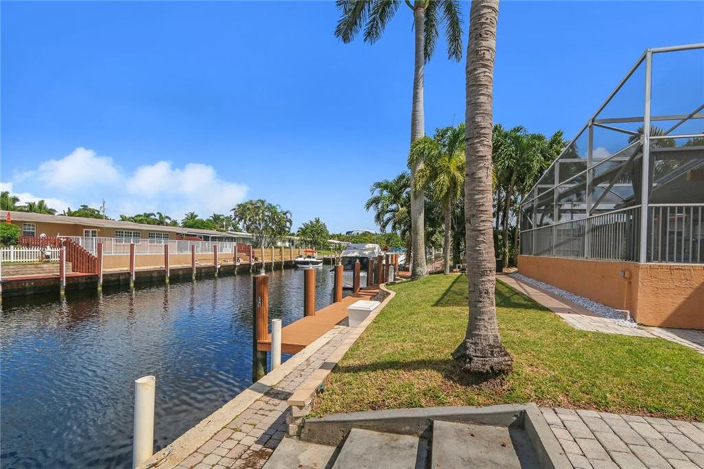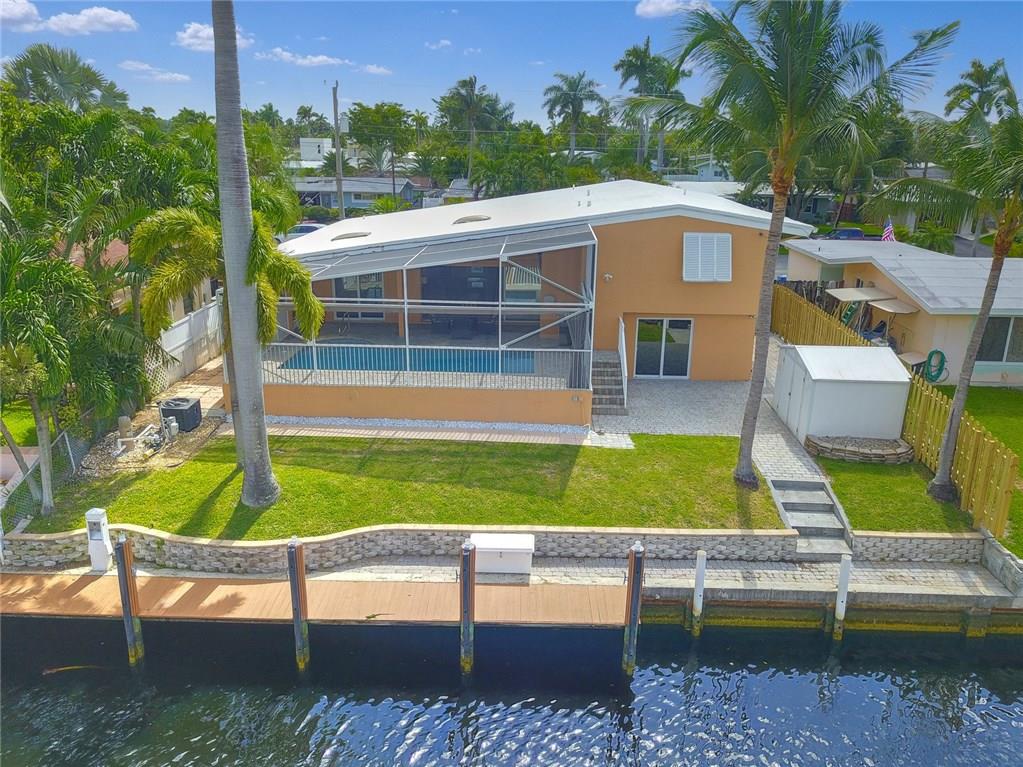 Turn-key Lauderdale Isles deep water 4BR/4BA with 65 ft on ocean access canal, private dock, no fixed bridges. Newly redesigned interior w/new lighting, grasscloth wall covering, porcelain tile flooring throughout. Vaulted ceilings in living + dining rooms w/ sliding pocket doors opening to screened patio and heated pool for year-round entertaining. Renovated kitchen w/top-of-the-line stainless appliances, granite counters overlooking family room. Newer W/D, HWH, pool heater impact windows 2016, A/C 2017.