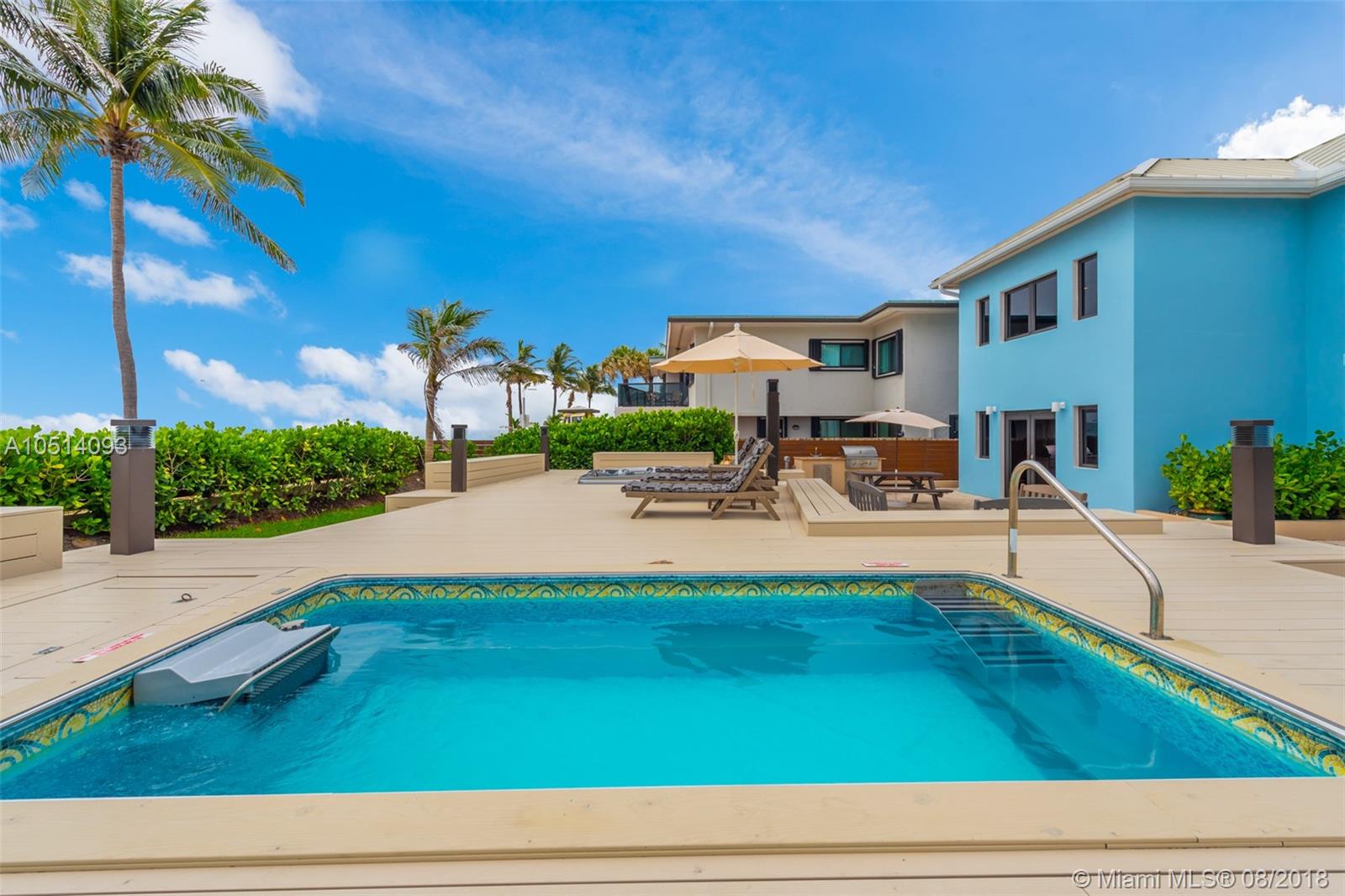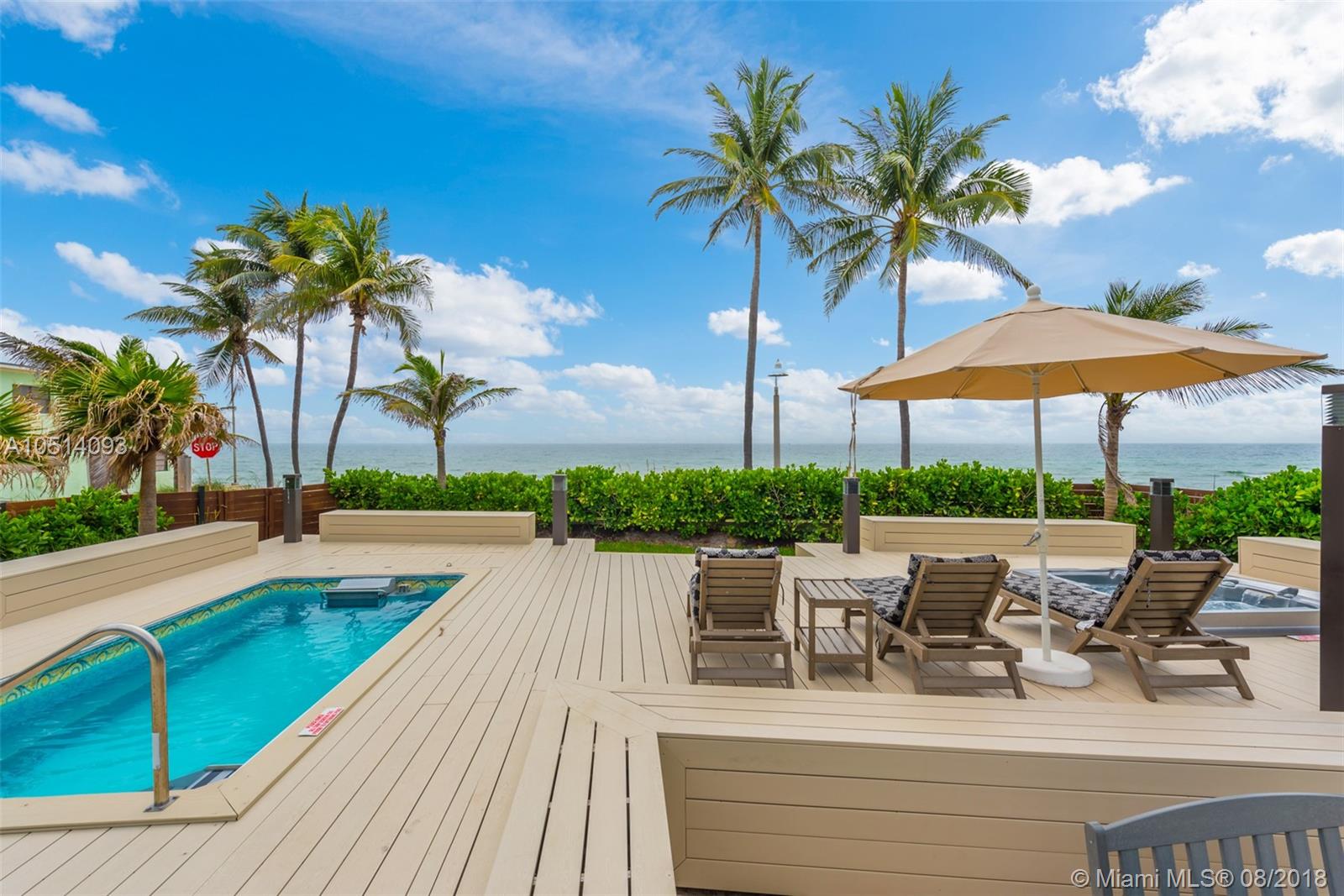This newly constructed oceanfront home sits upon 62 ft of direct beach access . Top of the line finishes, european style chef’s kitchen and an entertainers dream deck makes this an oceanfront gem. Located in the quiet section of North Hollywood Beach, this 4 bedroom, 4 bathroom double lot can serve as both a family home or a vacation rental.