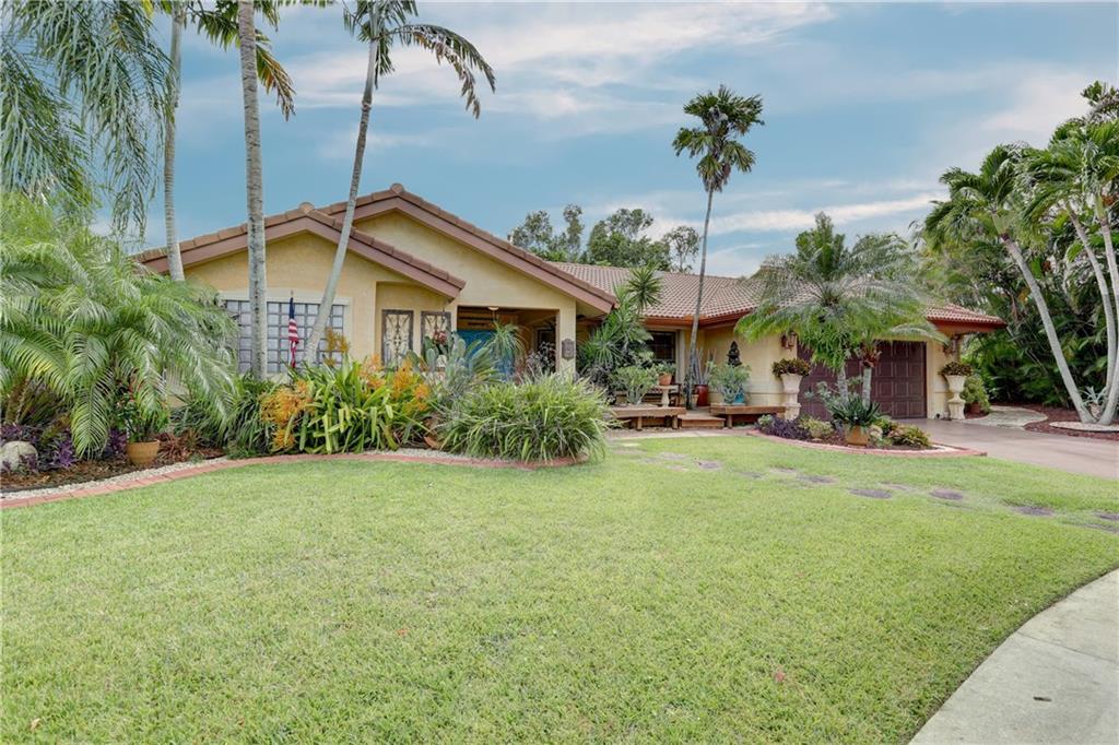 One story home with spectacular lake view with dock for fishing or just enjoying the sunsets! No HOA. Large Lanai & gorgeous pool area. Fenced in area for dogs. Fully Hurricane shuttered. Updated kitchen with wood floors. Volume ceilings, Split floor plan with large master suite & large bonus room. Newer roof 2011.