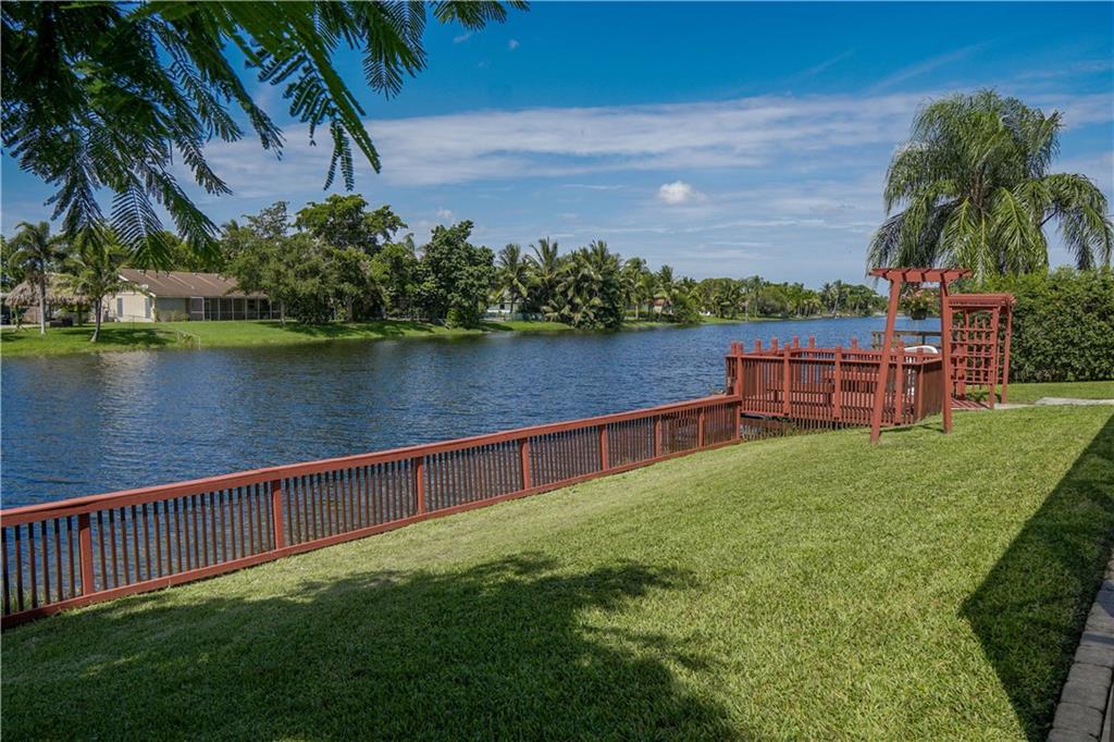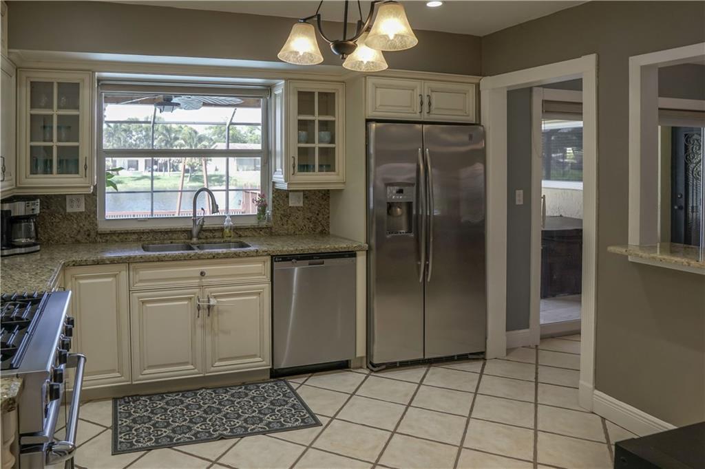 Pristine 3 bed/2 bath directly on the lake. Unique property if you're looking for move-in ready! Wont last long on the market. Beautiful renovation. French country kitchen w/granite, stainless steel appliances, gas cooking and open vantage point to the dining room and living room. Impact doors/windows throughout, stylish marble/granite bath renovations, manicured landscaping, screened in pool area with travertine decking and view to the lake, completely fenced w/private dockage. This is a 'must see'!