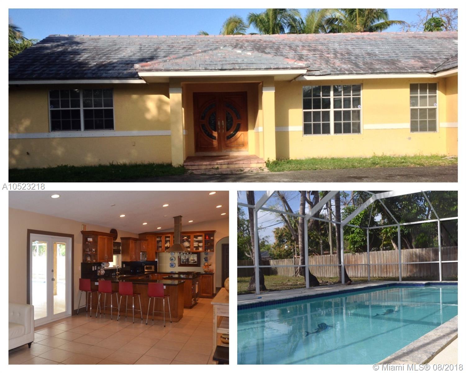 SHORT SALE IN THE VILLAGE OF PINECREST! Great opportunity to invest or own your house with a lot of potential in the desirable city of Pinecrest, built in 1990, A+ rated schools, X flood zone, 3,402 Sq. Ft., lot 16,988 Sq. Ft., living room, formal dining room, family room, double car garage, pool, big backyard, and a great space for a boat on the side of the house. Showings just by appointment. House needs a new roof. Cash only! AS IS
