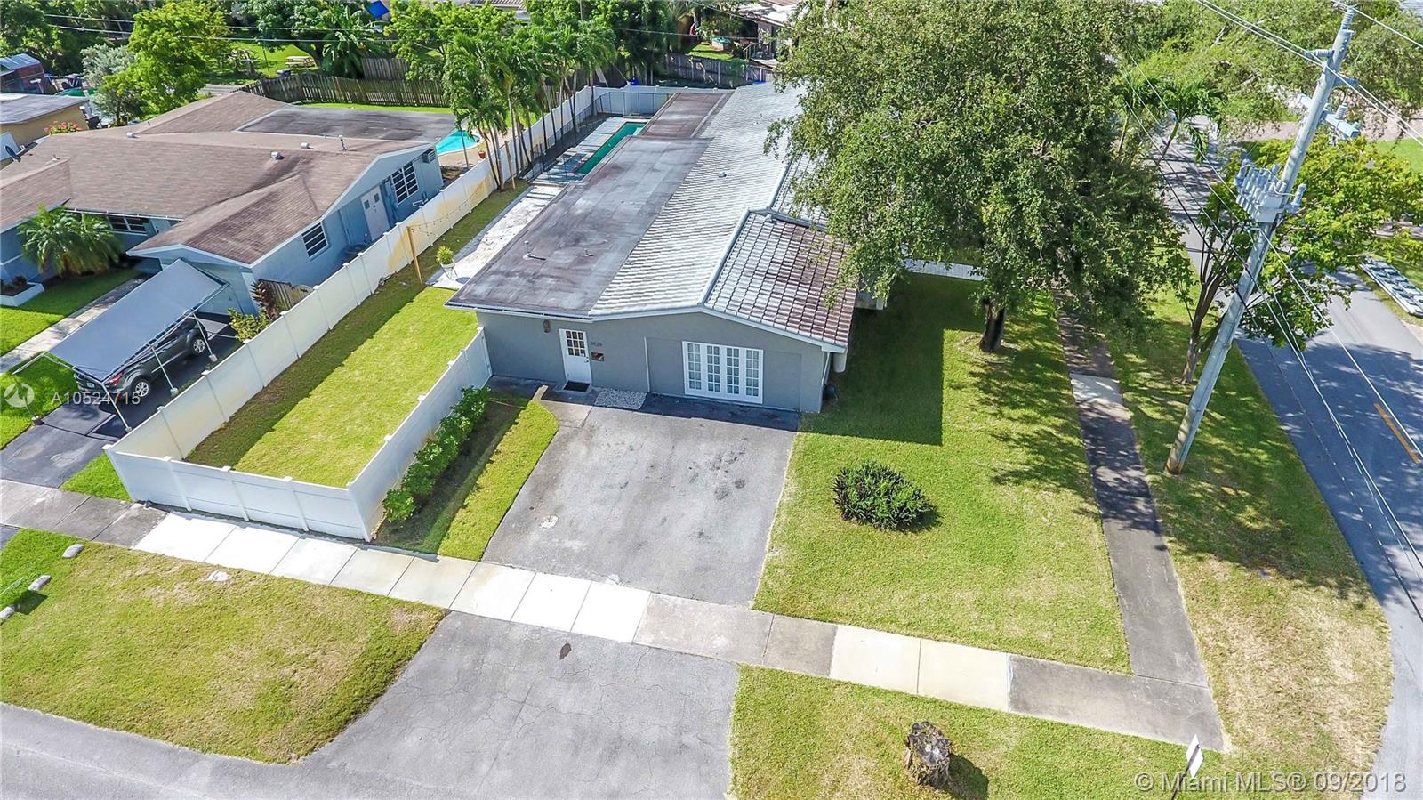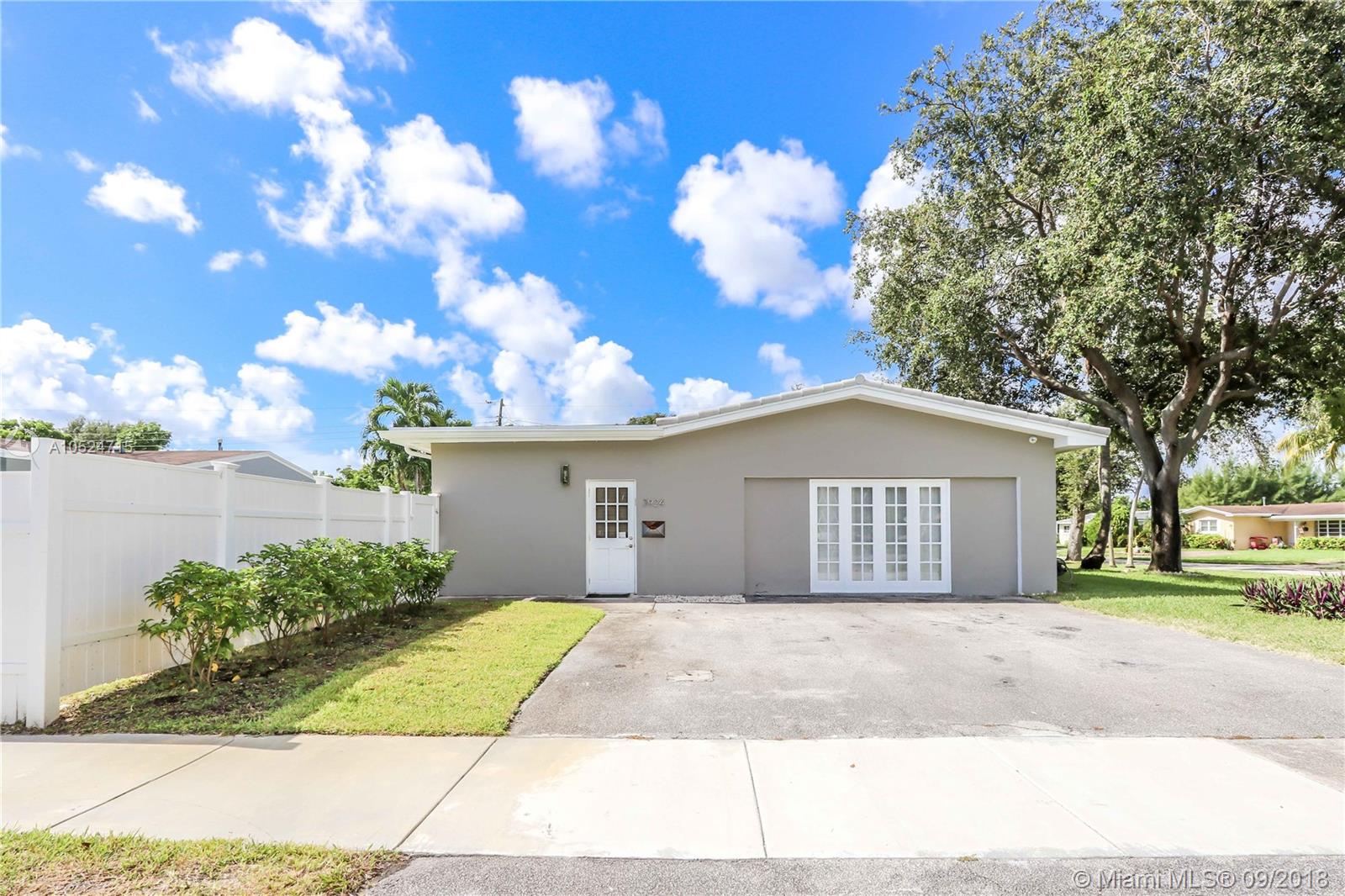Step inside this beautiful Hollywood home. This 4 BD/4 BA home was completely renovated and professionally decorated with no expenses spared - Granite countertops, brand new A/C, professional security system and GE appliances. Contemporary design w/ tons of natural light. Boasting just over 3000 SF of living space complimented by modern finishes, large bedrooms, open kitchen, enormous living room, and lush landscaping. This oversized 10,631 SF corner lot offers a spacious backyard with plenty of yard space & lots of privacy. Relaxing patio features a large pool with spa jacuzzi. Perfect for entertaining. Enjoy a private side entrance w/ parking for 2 cars. Great family neighborhood with good schools, close proximity to highways, Downtown Hollywood, Beach & houses of worship. A must see!