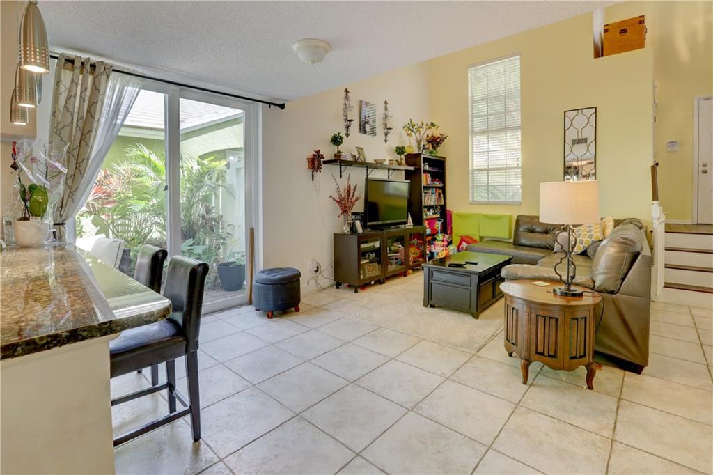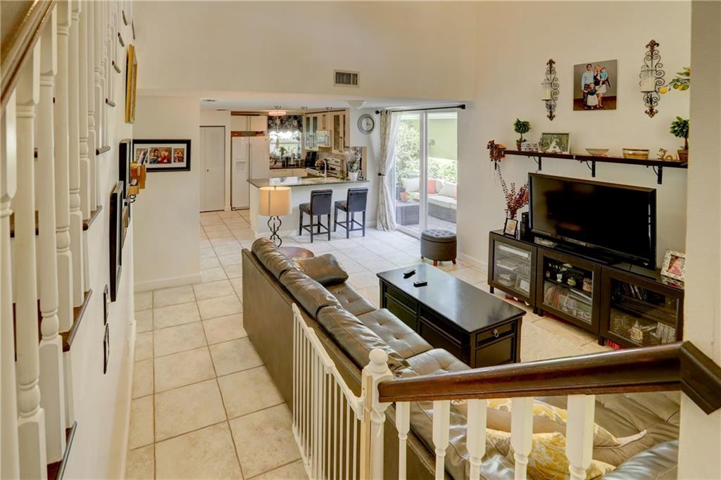 Beautiful 3 bed/2.5 bath family home w/attached 1-car garage in Quatraine II. 1st floor features bright open living/kitchen/dining room w/volume ceilings adding to the already bright & airy ambiance. Gorgeous updated kitchen w/impact window & granite counter/snack bar w/SS pendant lighting & white cabinets, some w/frosted glass doors. Nice fenced outdoor space w/two patios each w/impact glass sliders. Half bath conveniently located on 1st floor. Oversized dining room has cabinets & desk for home office & extra storage. 2nd floor has 3 beds & 2 full baths. Large master bedroom w/walk-in closet & attached master bath featuring modern updates w/glass shower. New flat tile roof in 2012,water heater in 2015,AC 2011, new wood stairs in 2018. **selling below appraisal of $320K, inspection done.**