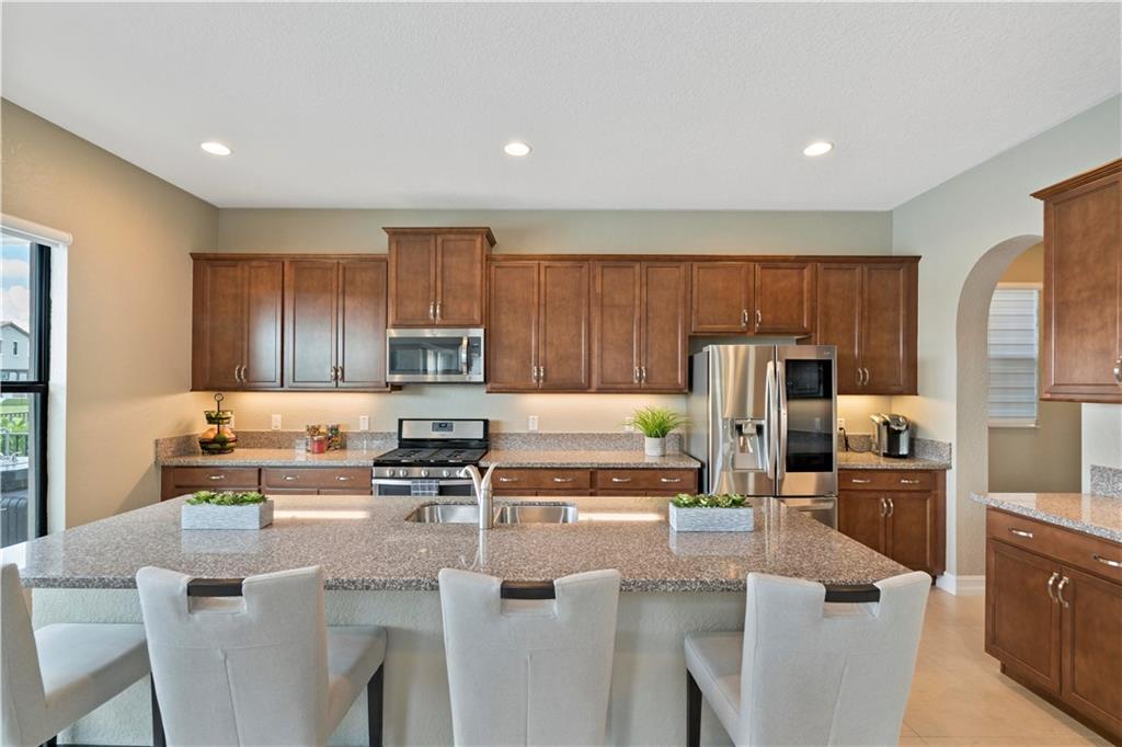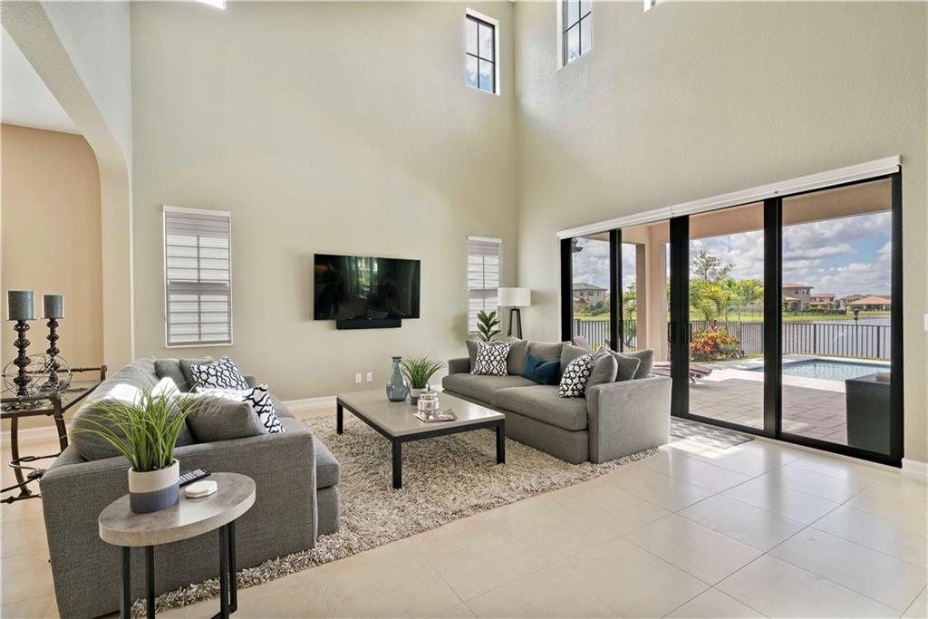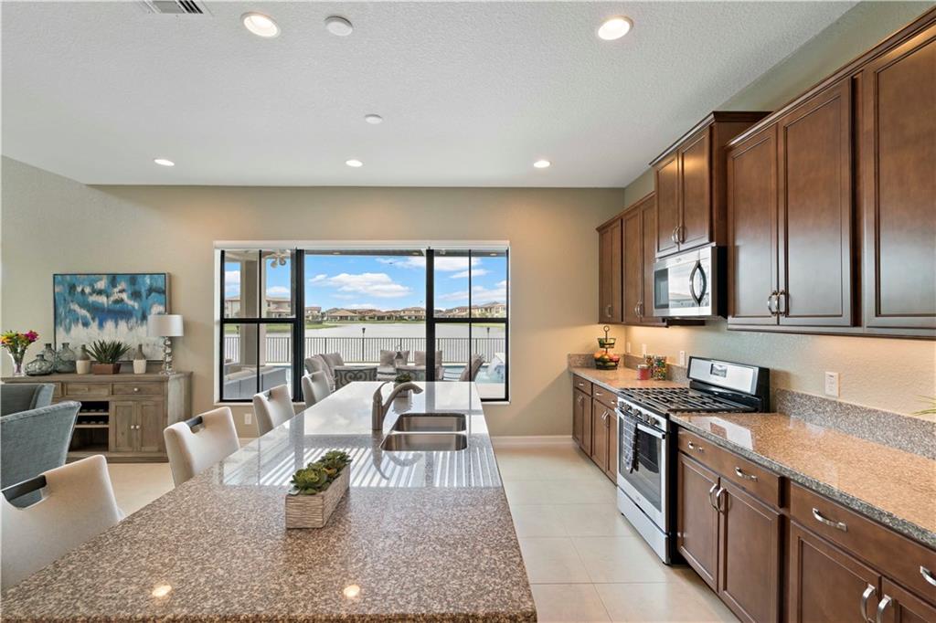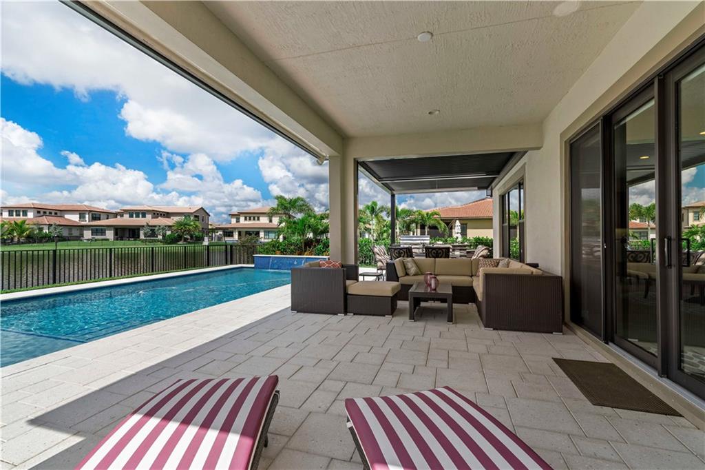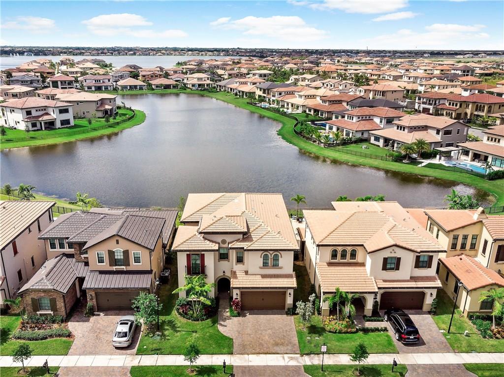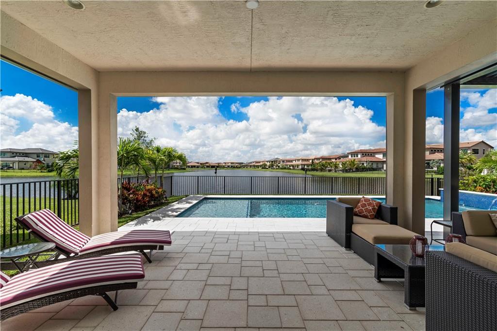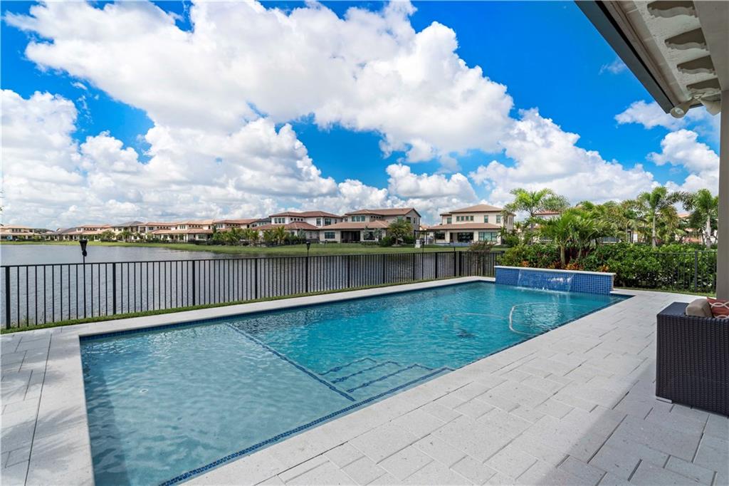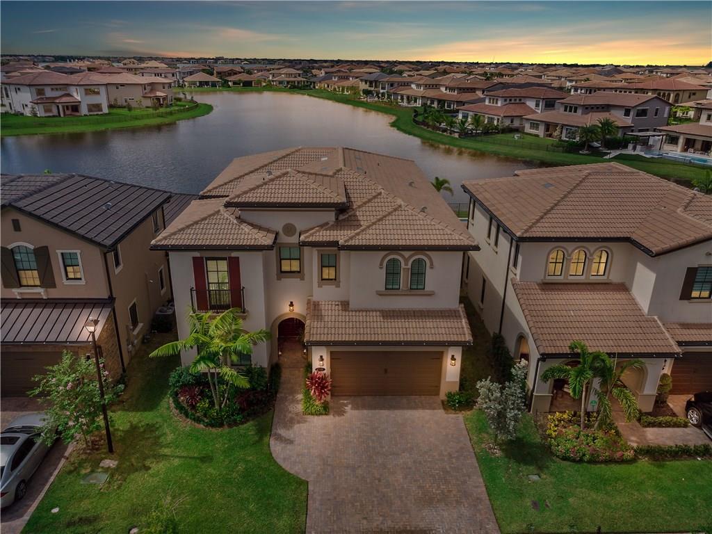 This beautiful home is located on a stunning wide water lot! Features a foyer entrance, great room, formal & casual dining, loft, Whirlpool appliances, wood cabinets, center island, granite counters, pantry, 20" tile, designer window treatments, upgraded carpeting, recessed lighting & a 3 car tandem garage! Enjoy the remote control louvered pergola, covered lanai, summer kitchen, tropical landscaping, gas heated salt water sport pool & the amazing community amenities! South Florida Living at it's best!