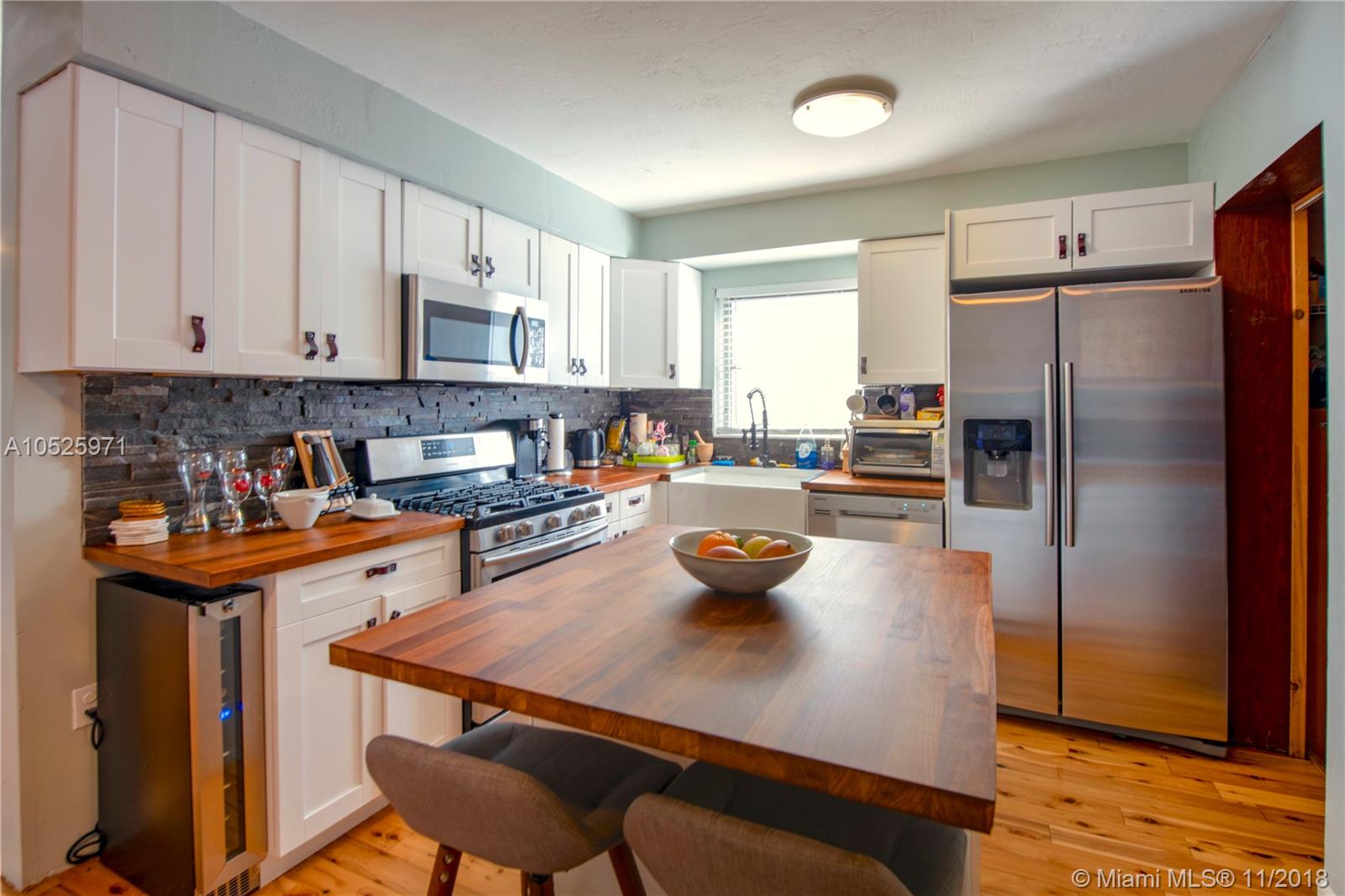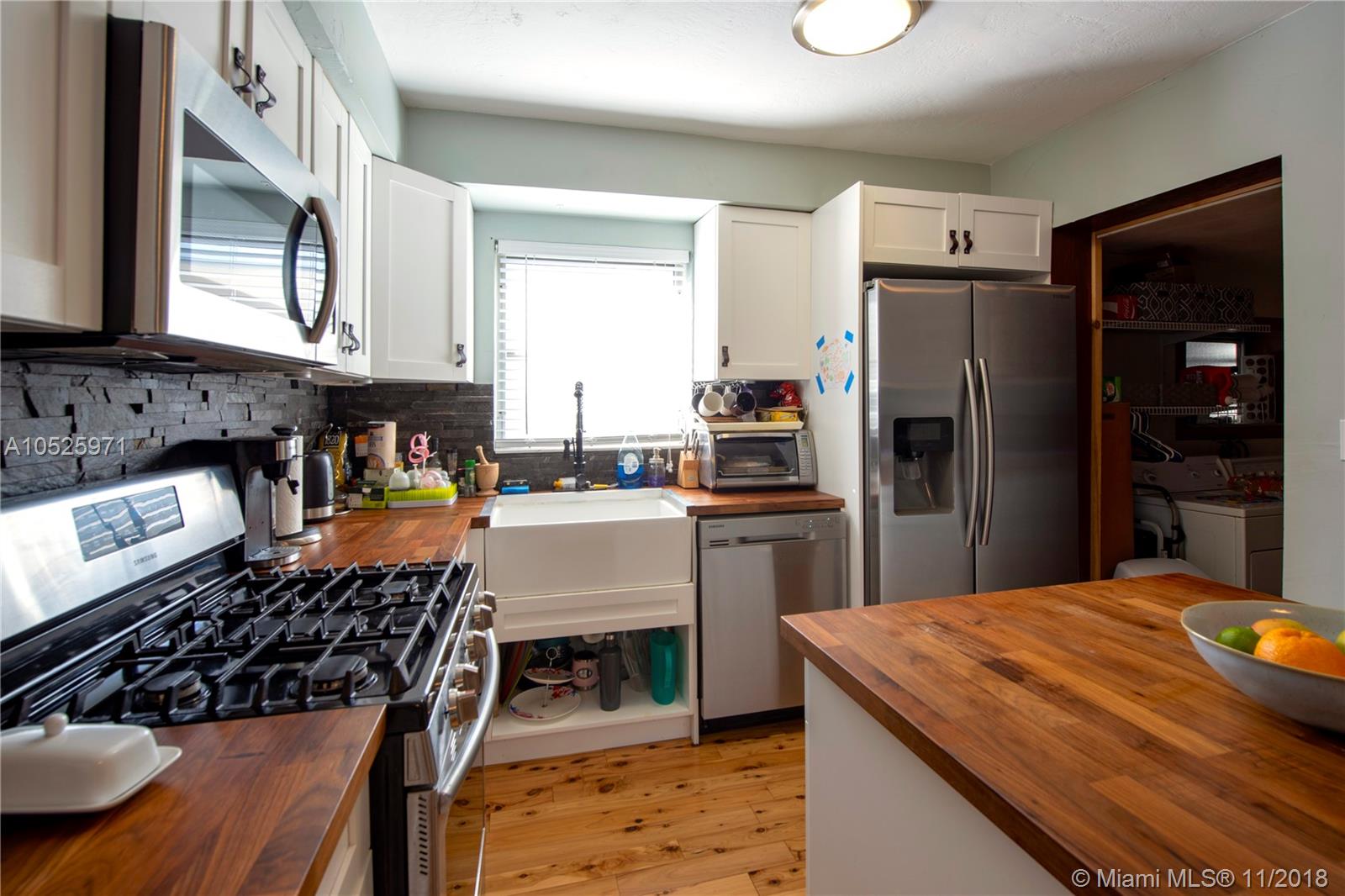 Come experience this large and beautifully renovated 3/2 single family home with a large salt water pool and space for carport. Kitchen features new cabinets, countertops, and state of the art kitchen appliances including a gas stove. Beautiful hardwood floors throughout. Split bedroom plan. All three bedrooms rooms are large enough to fit a king size bed. Large and open living room space. Hurricane impact windows in the front and back of the house and bertha hurricane shutters for the remaining windows. Large size backyard big enough to fit a small boat and built in grill for entertaining. Separate laundry room with full size washer and dryer. Roof and AC replaced under 4 years, pool pump was replaced 3 years ago, electrical system upgraded and the home has a security system. NO HOA!