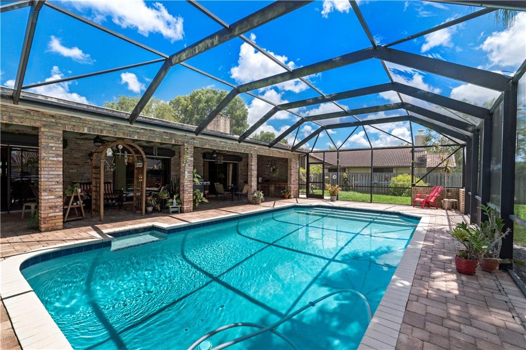 PRICED RIGHT! 4/3 WTRFRNT POOL HOME ON HUGE LOT. ATTRACTIVE BRICK FACED FRONT & CIRCULAR DRIVE. GREAT ENTERTAINMENT HOME FEATURES A BEAUTIFUL COVERED PATIO, WET BAR, COUNTER & CABINETS. JUST BEYOND IS A FULL SIZED SCREENED SOLAR HTD POOL W/ WATER VIEWS. INSIDE FIND A GENEROUS OPEN FLOOR PLAN WITH VAULTED CEILINGS, SKYLIGHTS & FIREPLACE. AMPLE MASTER BDRM WITH 2 WALK IN CLOSETS, BATH WITH A SEPARATE TUB AND LARGE SHOWER. BONUS PATIO SPACE ON SIDE OF HOME FOR MORE ENTERTAINING, PLAYING B-BALL, OR STORAGE.