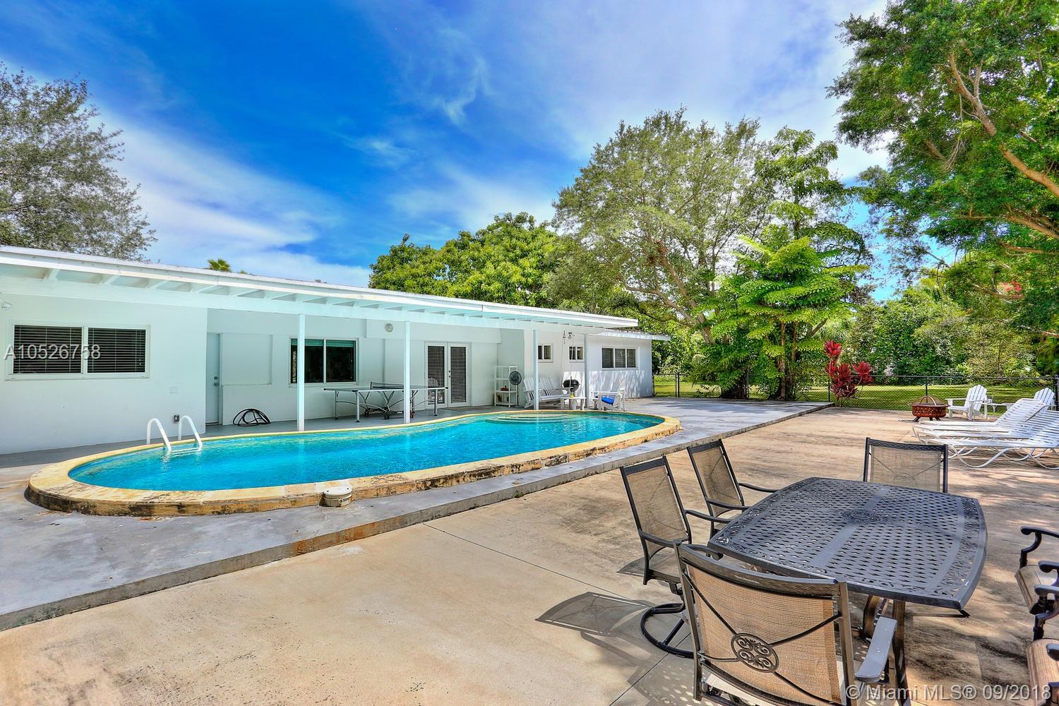 Turnkey Pinecrest home with endless opportunity. This wonderful 4/3 sits on a 37,026 SF lot on a quiet street. Move-in day 1, add-on to the existing house, or build your dream home. Seller also has a full set of architectural drawings available. Existing home features beautiful vaulted ceiling in the living room, spacious kitchen, wood cabinets and stainless appliances. The main part of the house is 3/2, along with a 1/1 in-law suite accessible via the back patio. Impact windows and doors. Covered patio overlooking the pool. Expansive yard space on all sides of the house. Mango and avocado trees complete the landscape along the back side of the house. New washer & dryer in the separate laundry room accessible through the expansive 2-car garage. Don’t miss-out on this unique opportunity!