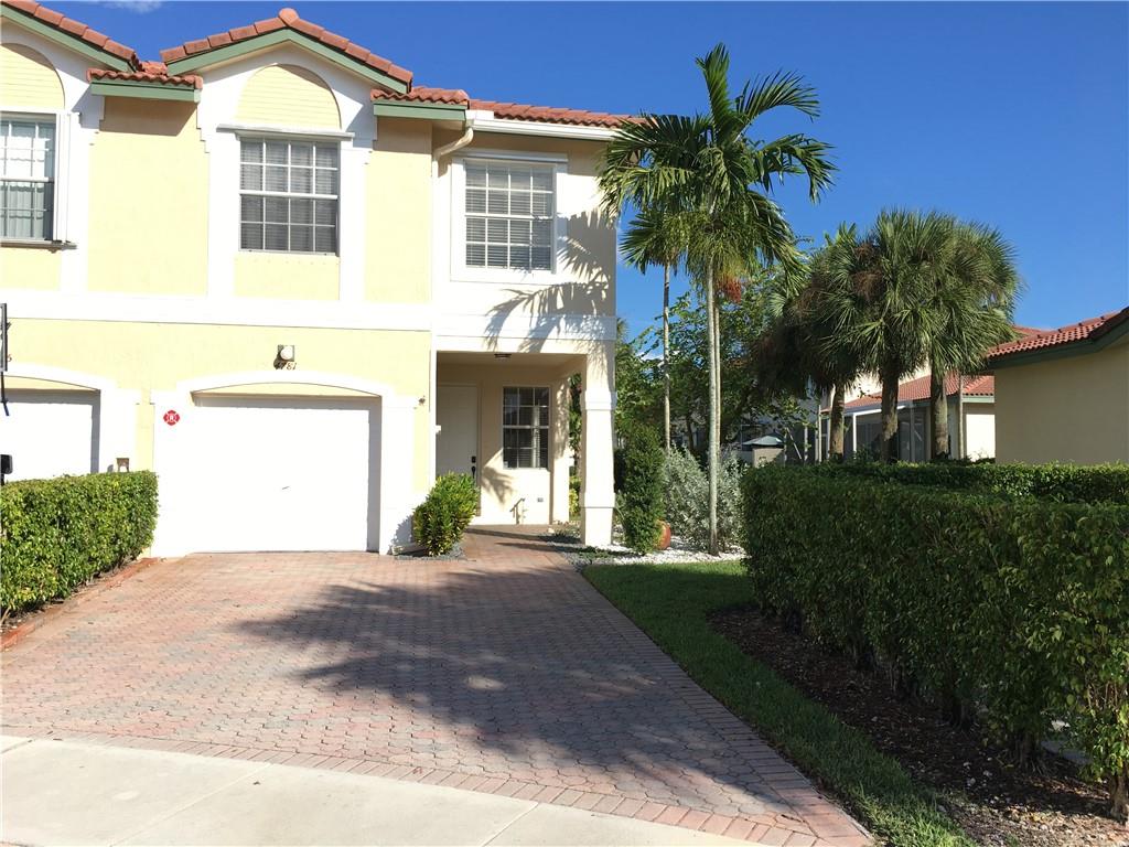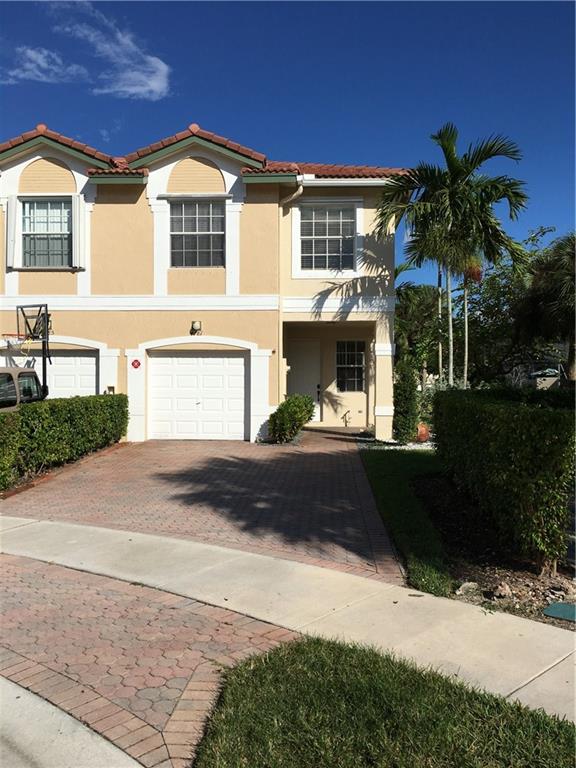 Spacious Gated corner townhouse featuring 4 full bedrooms 2/1 Bath + Laundry room upstairs. The first level includes, living, dining, breakfast, kitchen, powder room & family room. Fully tiled first floor and carpet upstairs. Enjoy the fabulous & private Cul-de-sac with additional guest parking. 1 car garage & 2 parking spots along with a small outdoor patio and yard. A/C & all Stainless kitchen appliances replaced in 2015,washer/dryer replaced 2014. Community pool & electronic gate. Great schools