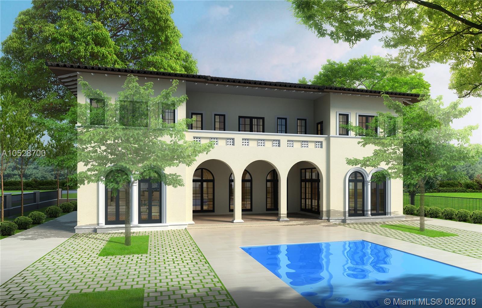 Located on 1-acre lot in exclusive prime north Pinecrest, with 5 bedrooms/6.5 bathrooms, this Mediterranean new-construction home is an elegant entertainer's dream. Impressive architecture includes arched windows, rounded turret staircase, enormous grand hall and entry with 2-story ceilings, 2-sided gas fireplace, massive kitchen connected to outdoors, summer kitchen, wine cellar, elevator, lovely garden and pool. Split floorplan ideal for both relaxing and socializing. Study, family room & media room.