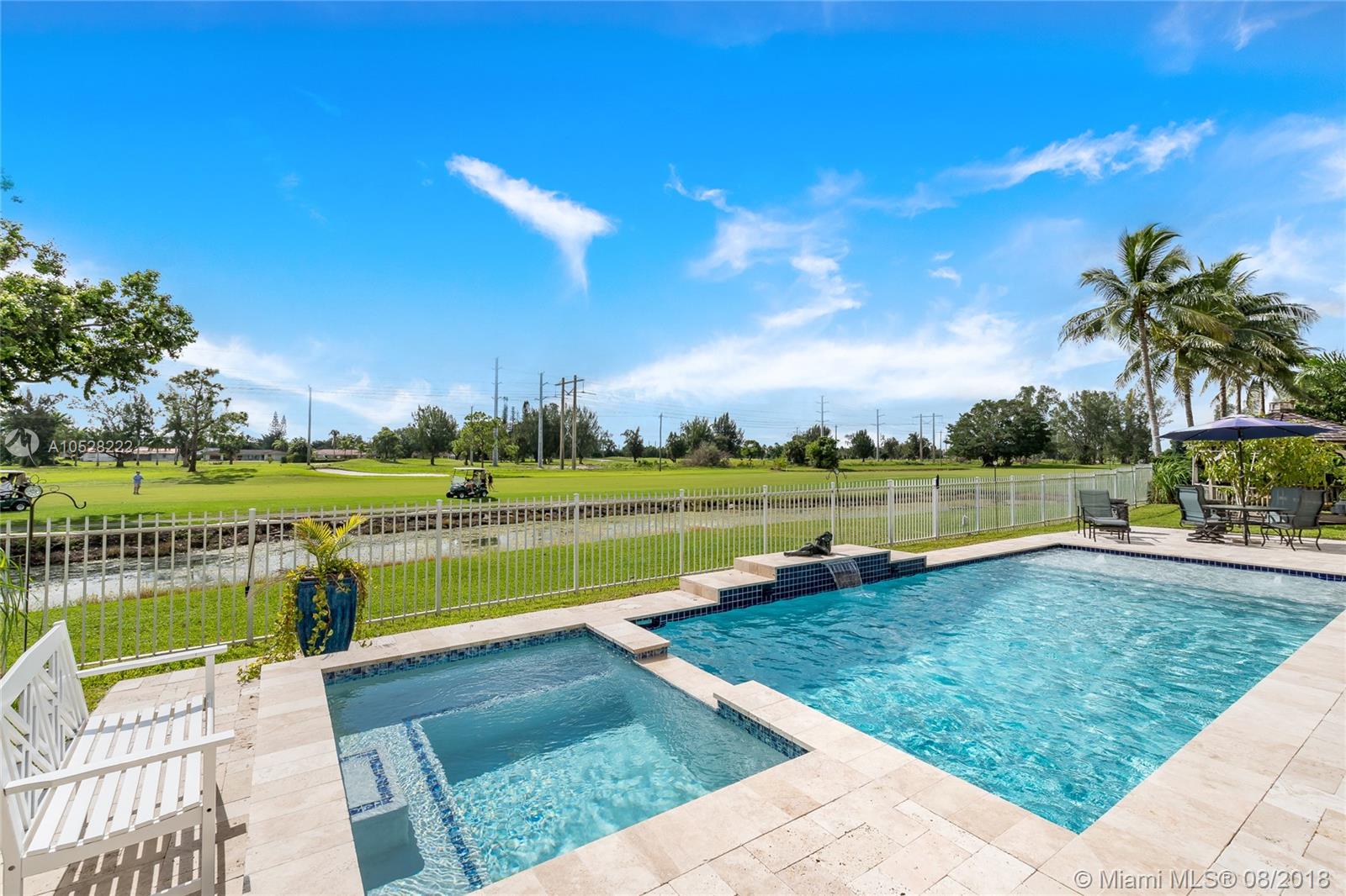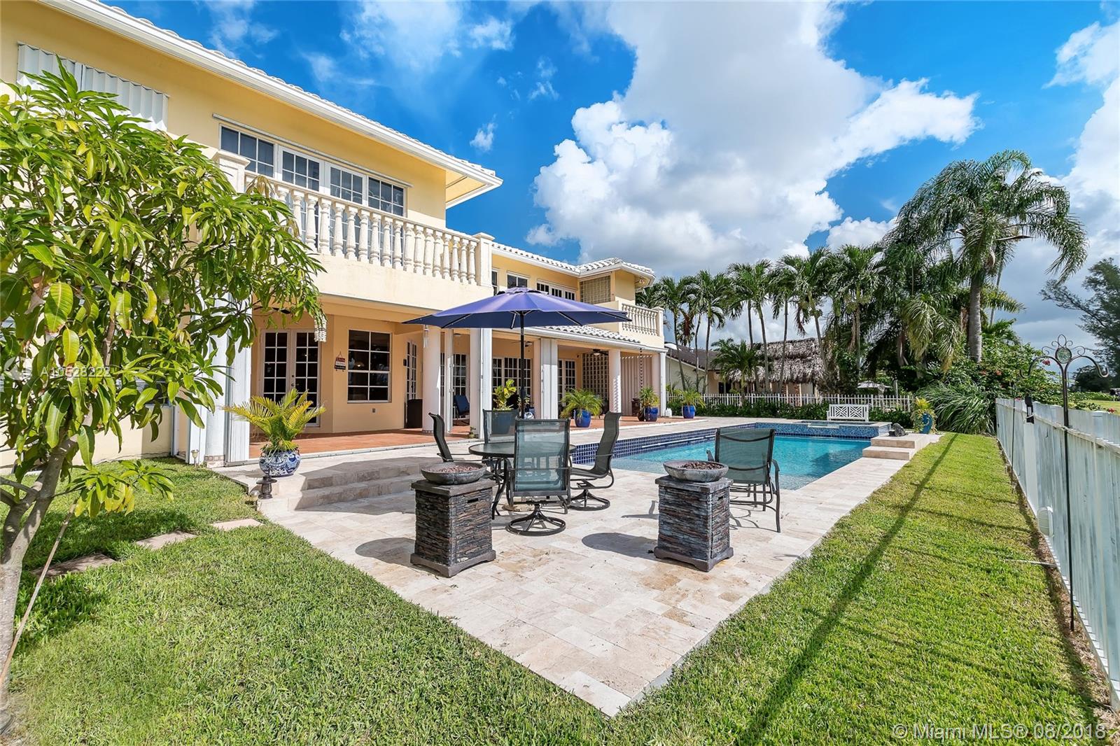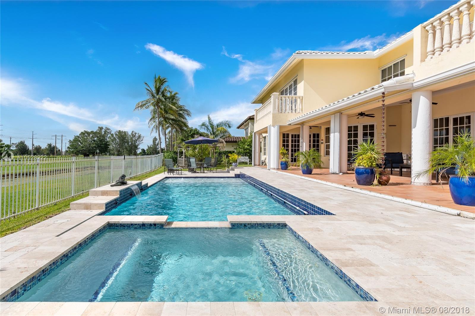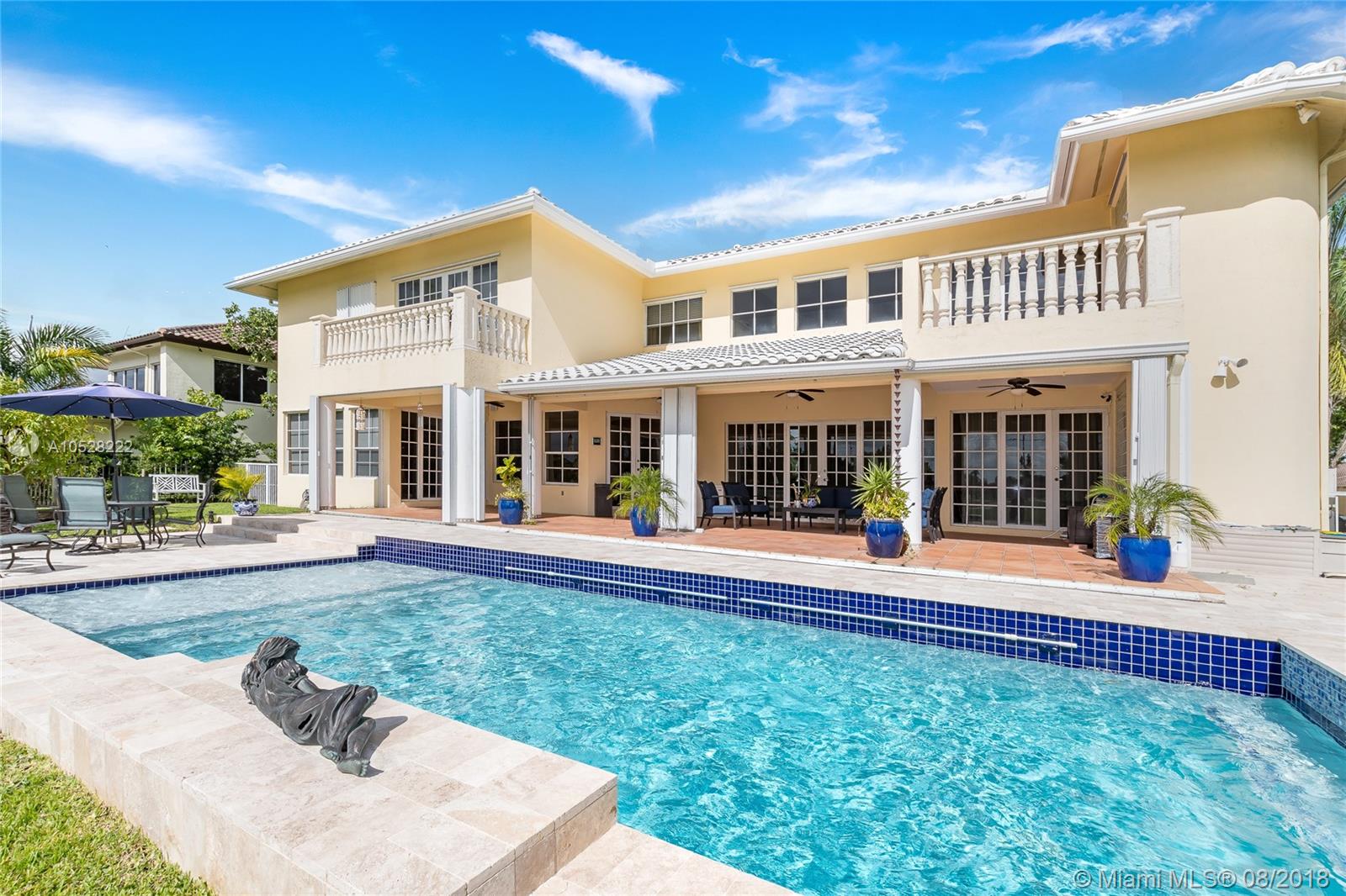 Fabulous, two-story, custom-built home in Country Club of Miami. Terrace, pool, golf course.Featuring 5,700 sq ft of spacious, flowing living areas, high ceilings, 8 bedrooms,5 ½ baths including 2 huge master suites on a split floor plan with master baths,each with their own private balcony overlooking the pool and golf course.The open, eat-in kitchen leads to a covered terrace and elegant pool deck, both at the edge of the golf course - the perfect setting for elegant entertaining outdoors during Miami’s balmy days and nights. Details are lovely and easy to integrate into any decor.Marble flooring- first floor, wood laminate flooring- second All bathrooms were tastefully remodeled. Paved,circular driveway,2-car garage,and for more privacy, the 12,500 sqft lot is situated on cul-de-sac.