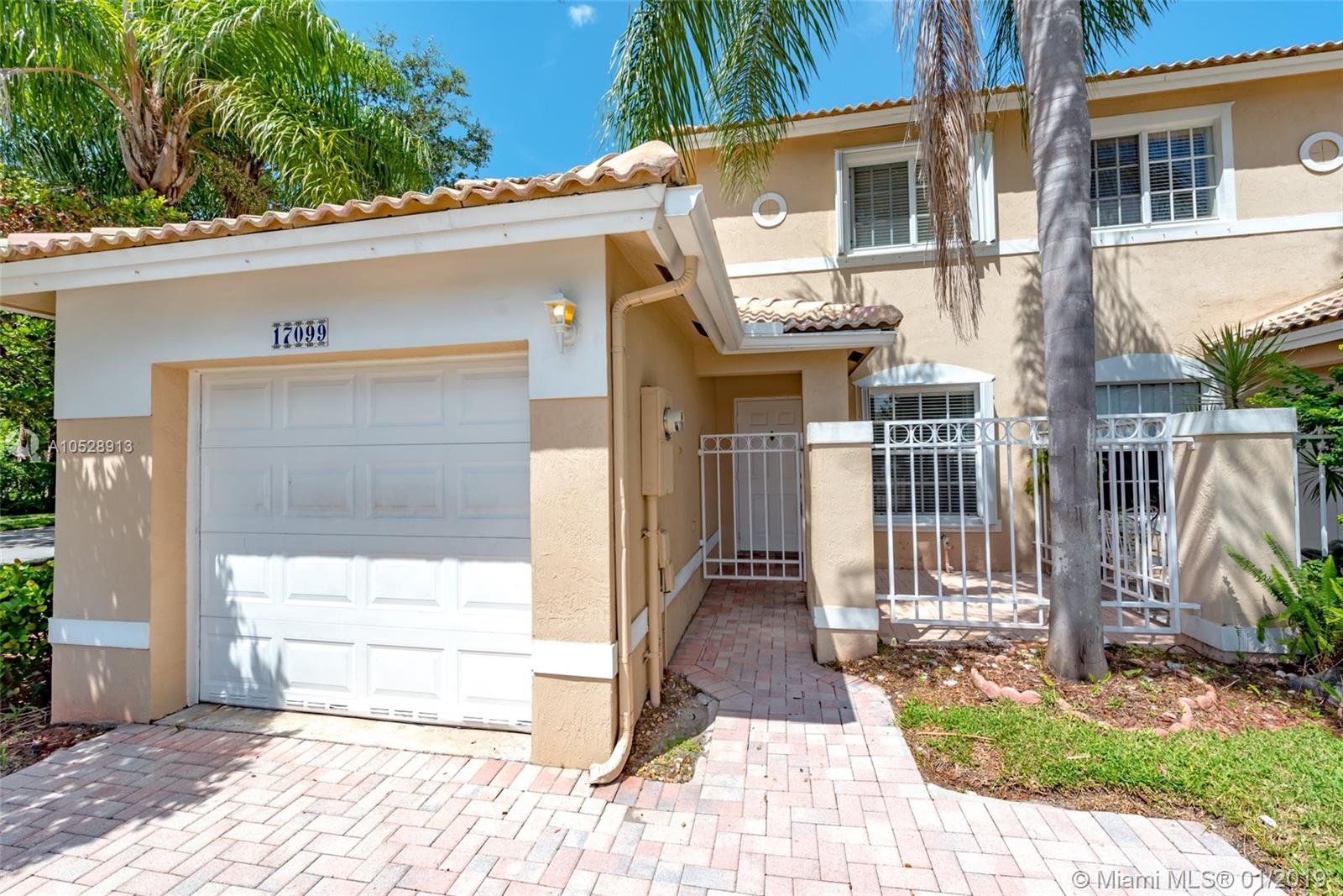 Great 2 bedrooms, 2 .5 bathrooms corner unit townhouse in the gated community of Pembroke Isles. Featuring; 2 car parking driveway, neutral tile in all living areas, new engineered wood floors in stairs and bedrooms, 1 car garage (part of the garage was converted in to a playroom), remodeled kitchen with stainless steel refrigerator, rage/oven and microwave, full size washer and dryer, remodeled 1/2 bath and master bathroom, a/c unit 2016, accordion shutters. new water heater. Excellent school and community.