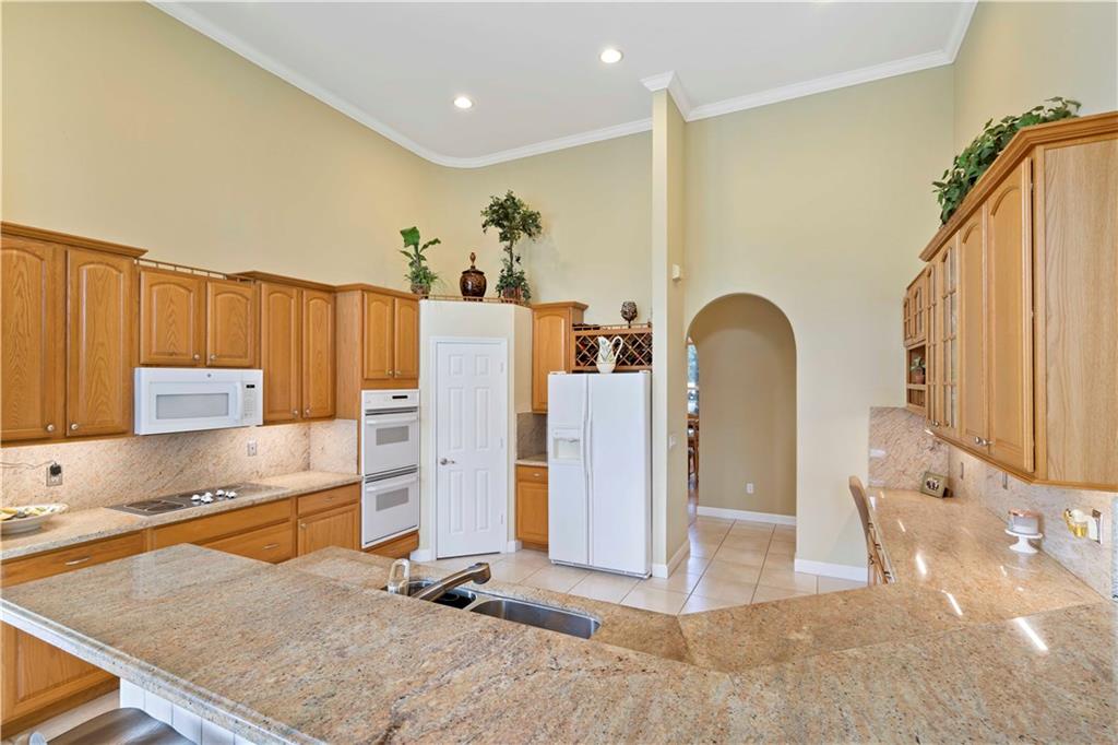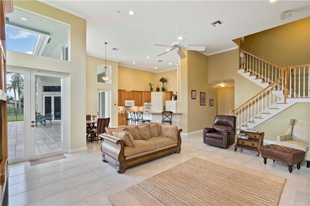 CUSTOM BUILT DREAM! Immaculate 5 bed 4 bath estate sits on a builders acre boasting a lake view, tropical landscaping, & newly resurfaced pool. The spacious floor plan features soaring ceilings w/ 3 bedrms & 3 bathrms downstairs. 2 bedrms w/ jack & jill bathrm & loft upstairs. Kitchen has granite counters, double ovens, & wood cabinets. All GE appliances. 3.5 car garage w/ xtra high doors. 3 newer A/C units & 2 newer HW heaters. No flood insurance. Custom security system. Surround sound inside & outside.