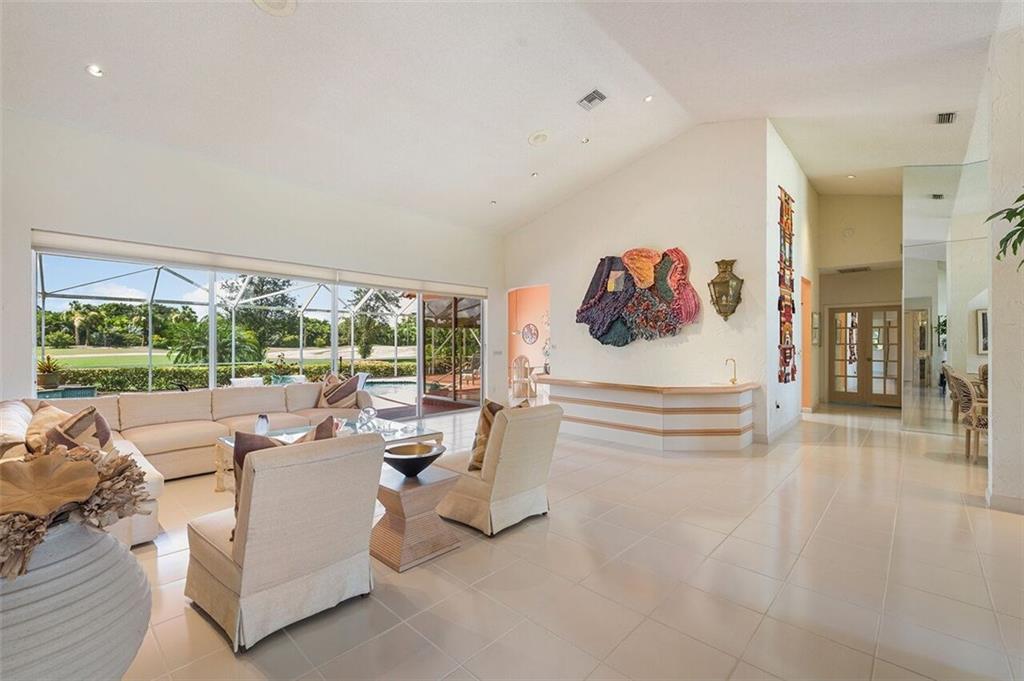 Infused with natural light and soaring ceilings this 3 bedroom 2 bathroom single story home has captivating golf course views throughout! Massive living room and oversized wet bar open up to a screened in heated pool perfect for entertaining all year long. Large walk in his and her closets in master bedroom and spotless tile flooring throughout. Oversized den that can be converted into a 4th bedroom. Newer AC. Prime location in Stonebridge CC, one of Boca Raton's premiere country club communities.