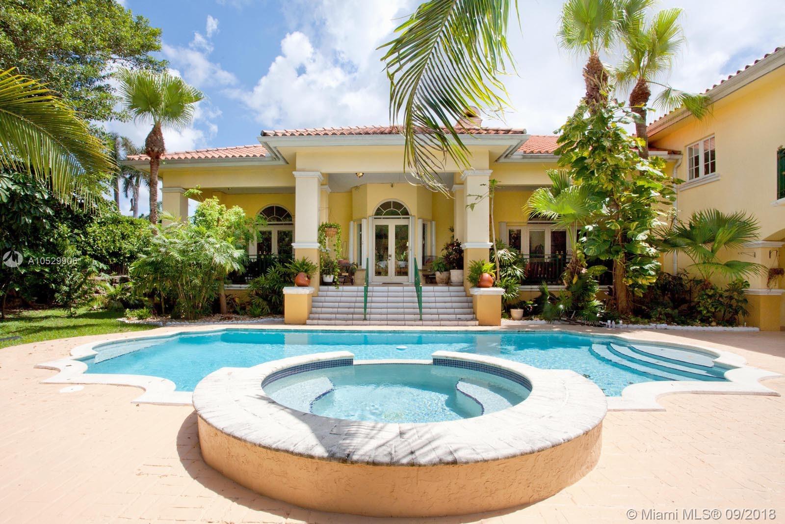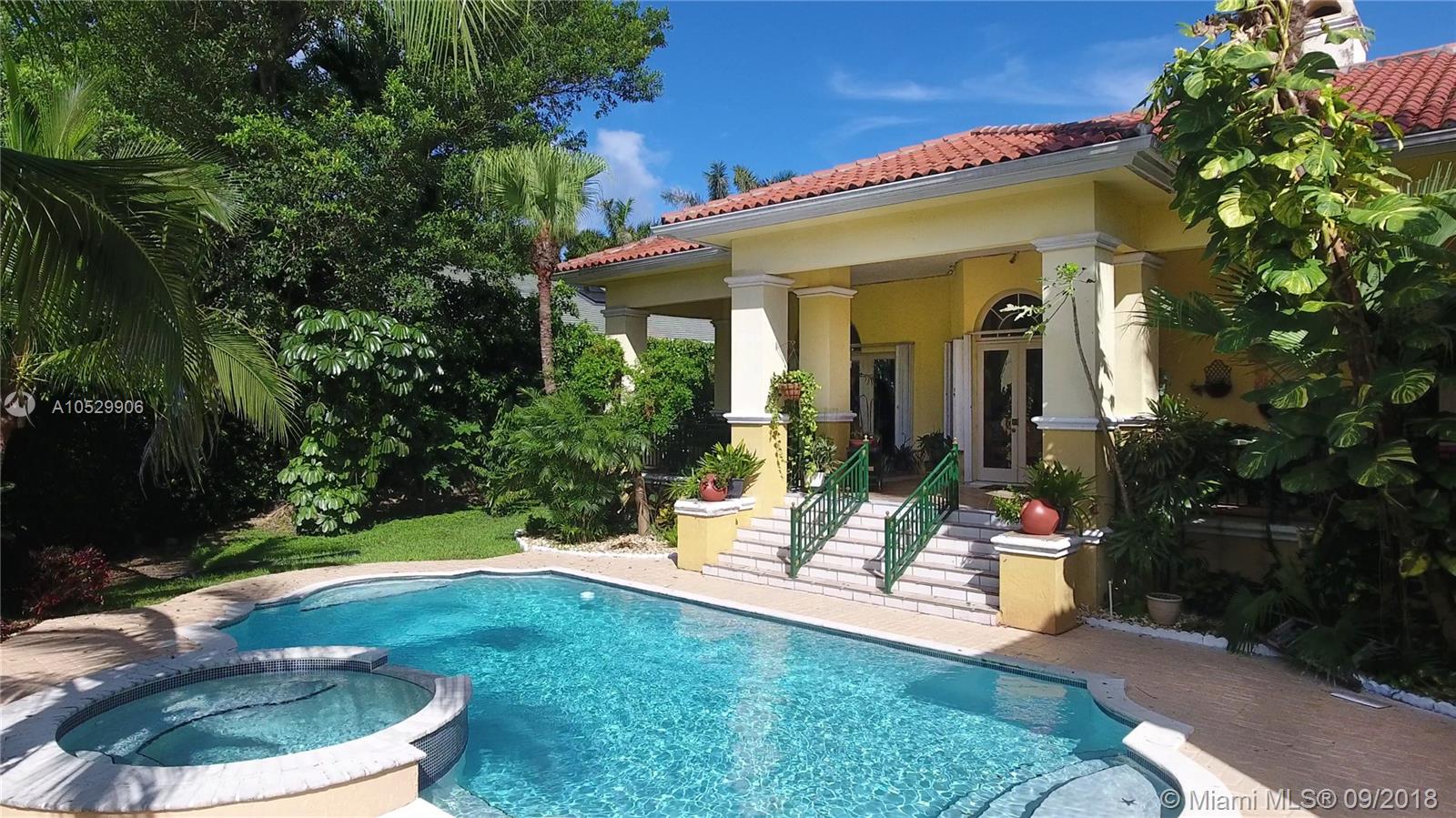 Price reduction!Owner motivated! Mediterranean split level home, gated w/brick courtyard, marble flrs, high ceilings & doors. Double doors entrance leads to formal living rm w/French doors leading to covered terrace & pool area. Formal dining rm. The renovated eat-in kitchen opens to large family rm w/built-in entertainment center. Kitchen has quartz counter tops, lots of cabinets & walk-in pantry. The main flr includes an office off the foyer, w/full bath, & 3 bedrm suites. The private master suite is located on a split level, w/balcony overlooking pool area, includes a spacious walk-in closet & bathrm suite. Pool area has a large covered terrace, summer kitchen & cabana bath. Impact windows/accordion shutters. Property located in Special Taxing District, 24 hr security.