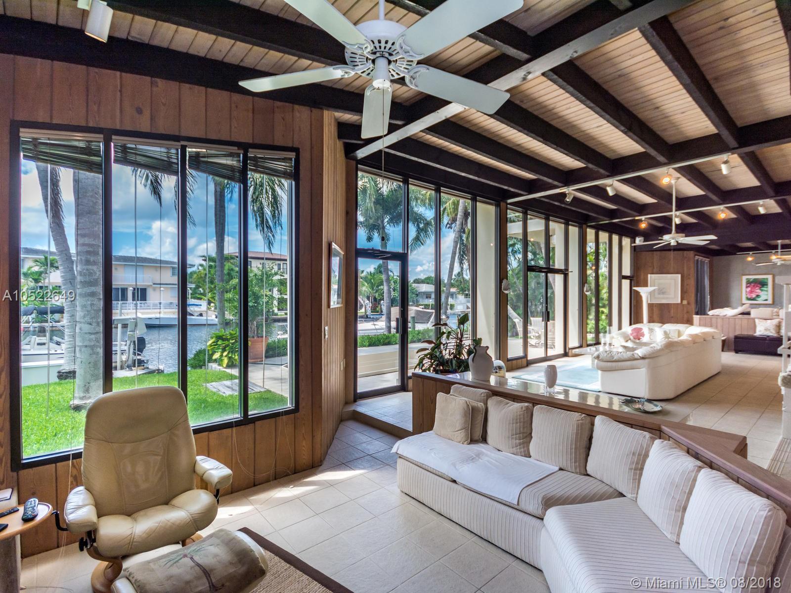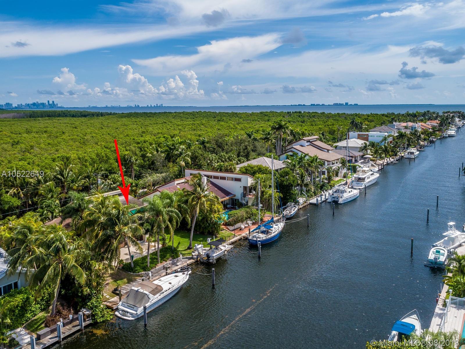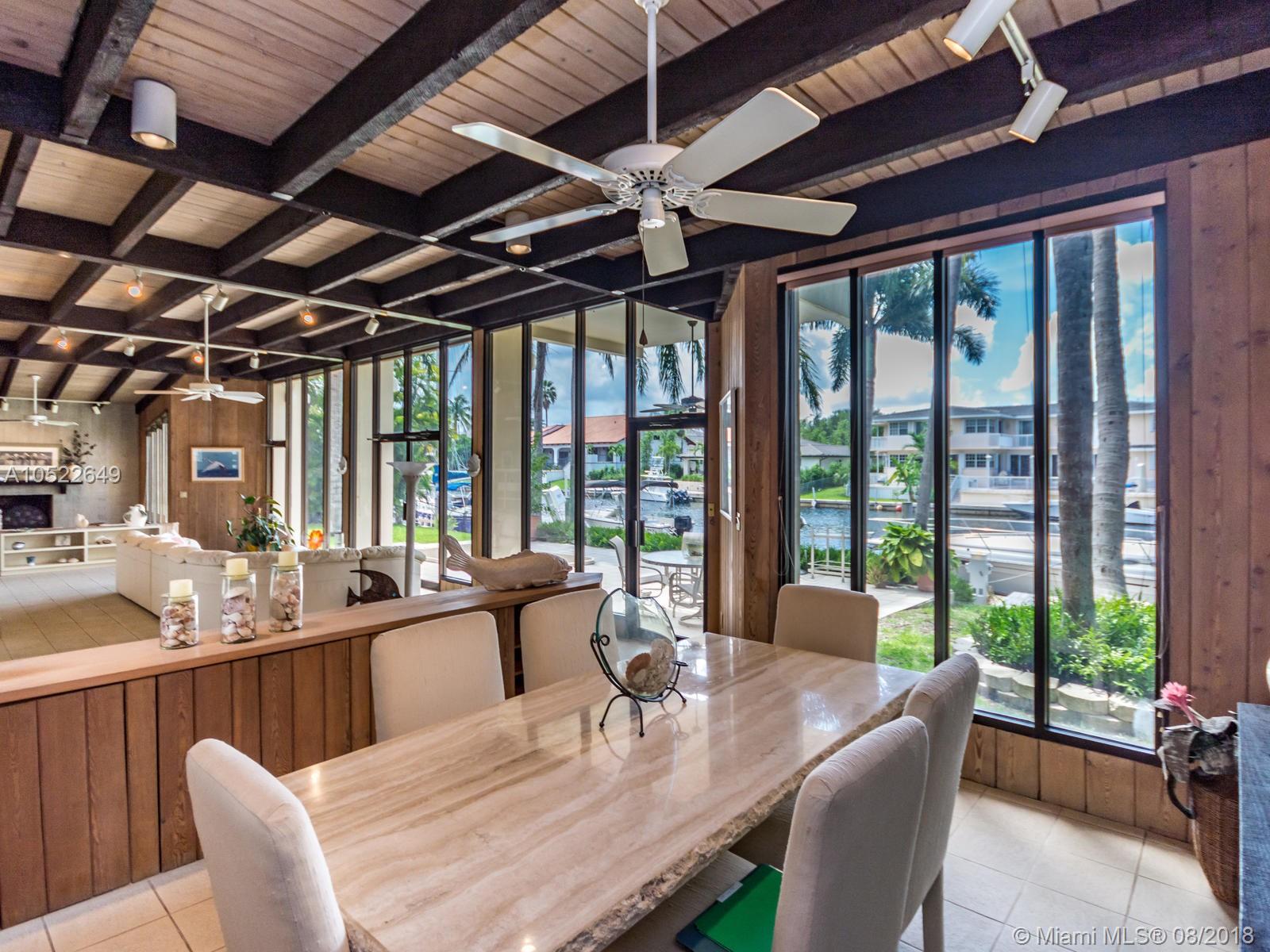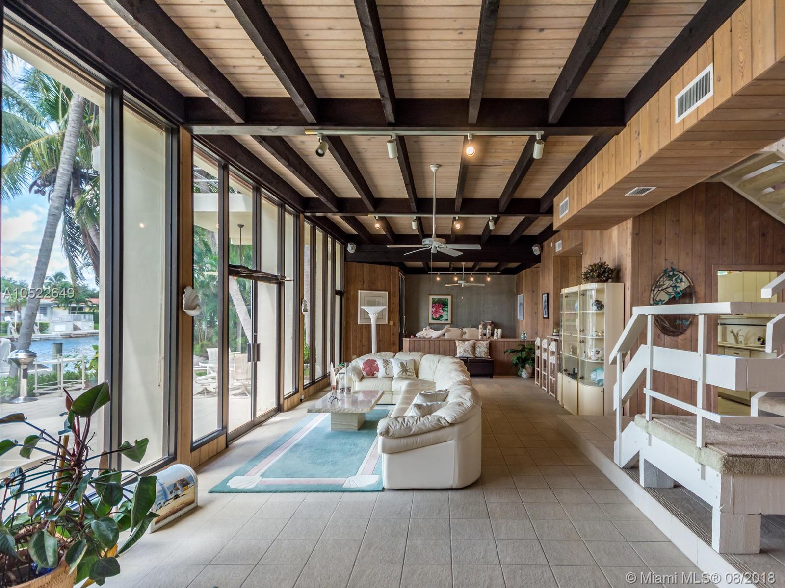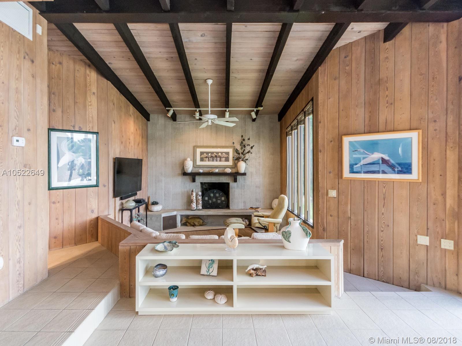 Direct ocean access home with 100’ seawall, dock & davits on wide waterway, no bridges to Biscayne Bay in gated Gables by the Sea. 1970 3/2.5 2-story home on 11,500 SF waterfront lot filled w/artistically fun features incl 11.5’ open wood beam ceilings. Light filled open floor plan, waterway views from every room. Galley style kitchen & breakfast bar perfect for entertaining. 2-car separate garage/workshop. Ideal opportunity for renovation or new build. Guard-gated community, top schools.