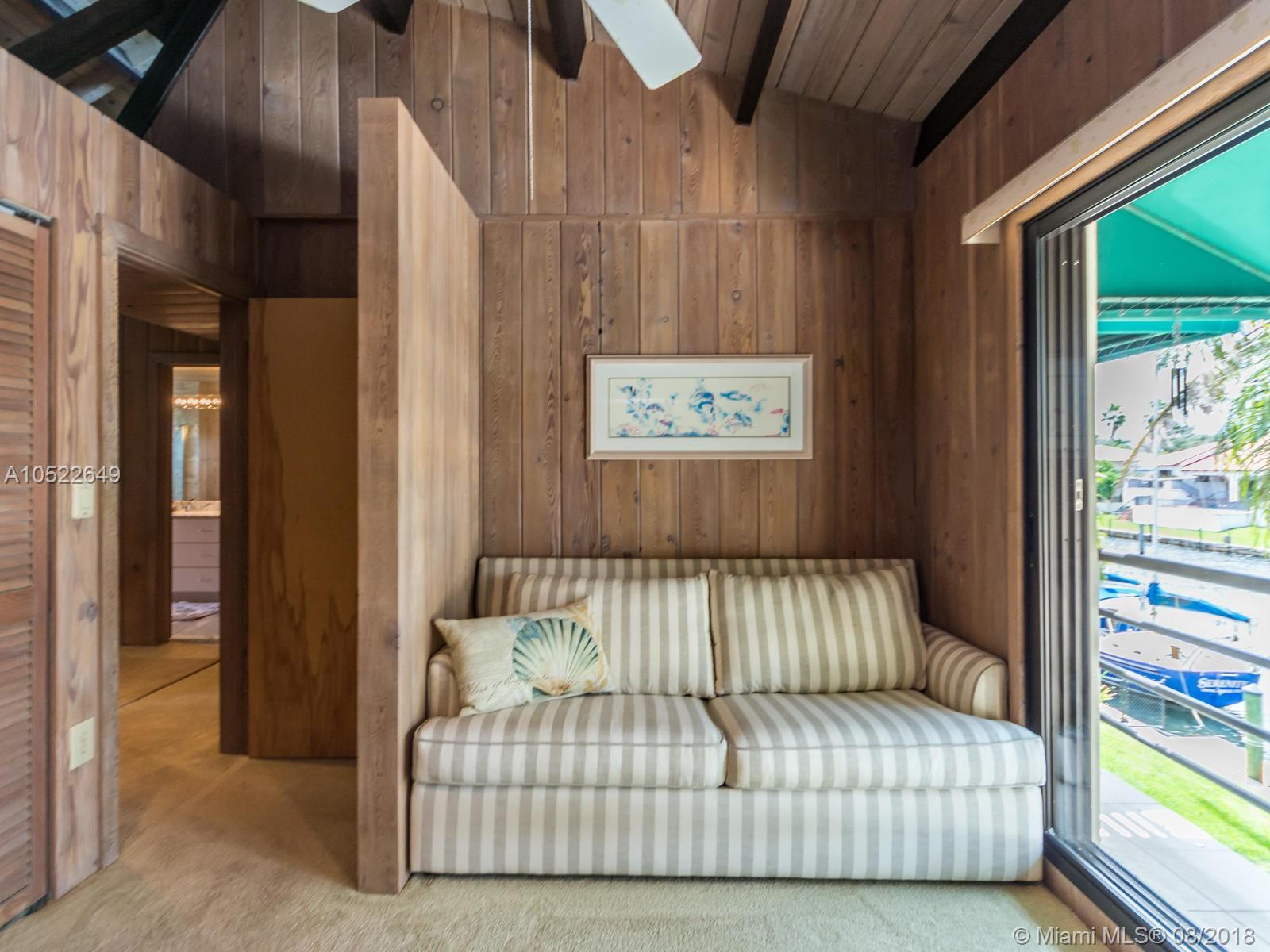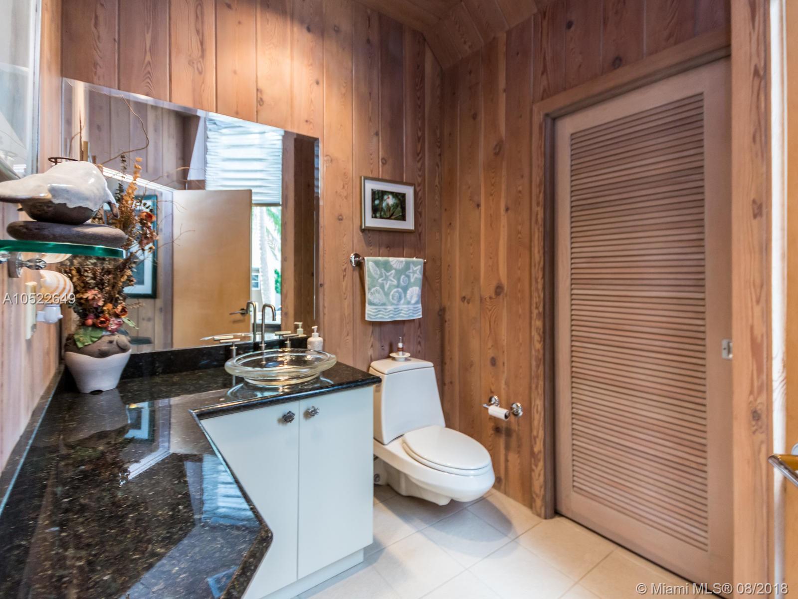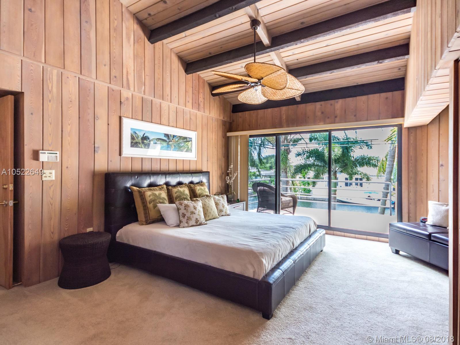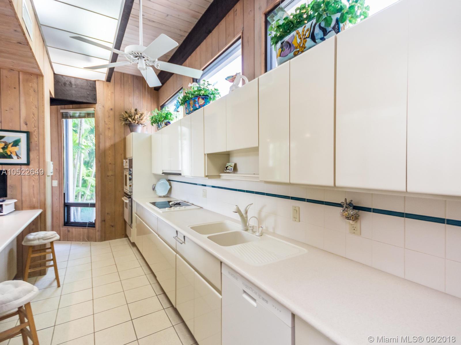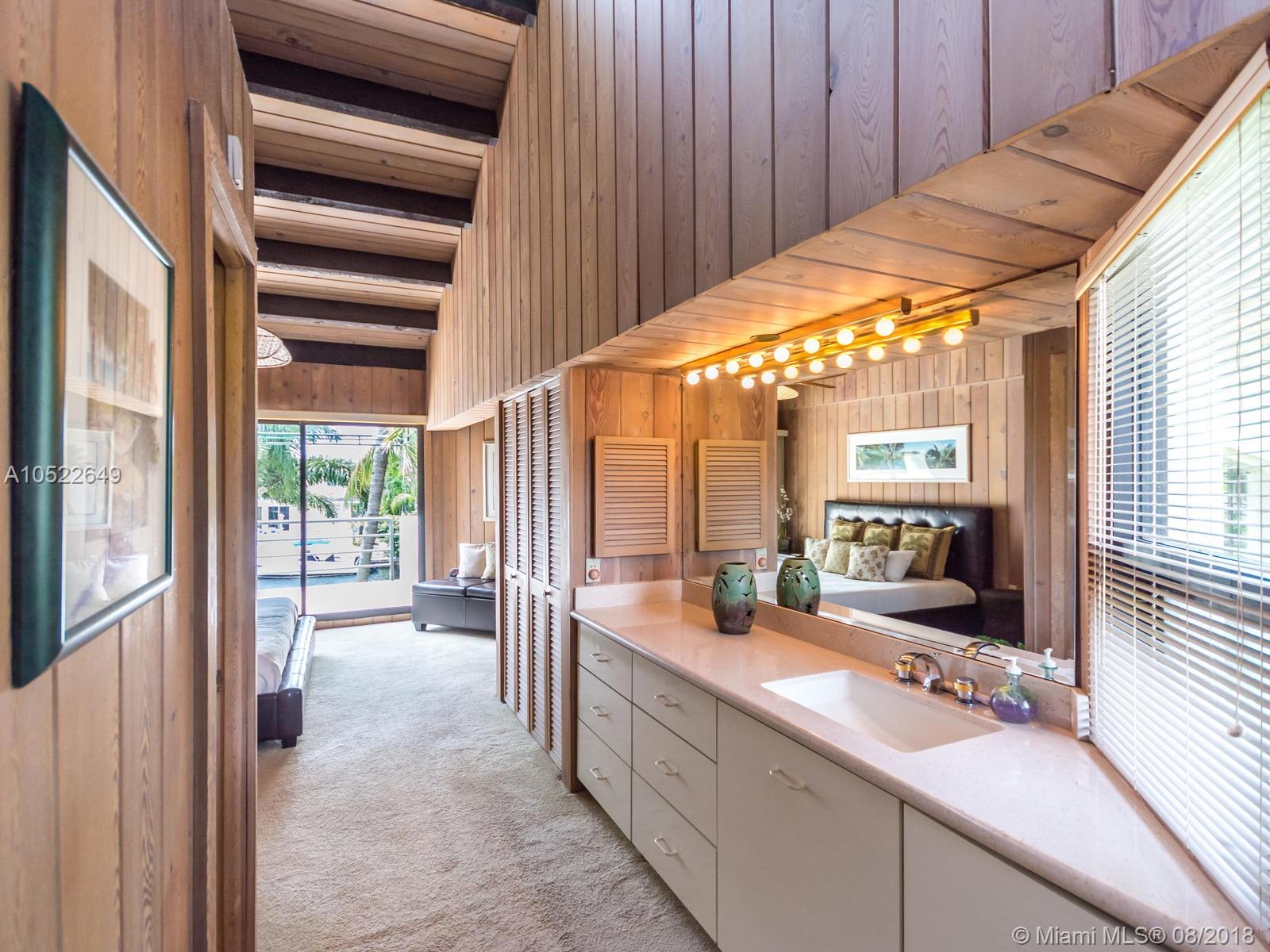 Direct ocean access home with 100’ seawall, dock & davits on wide waterway, no bridges to Biscayne Bay in gated Gables by the Sea. 1970 3/2.5 2-story home on 11,500 SF waterfront lot filled w/artistically fun features incl 11.5’ open wood beam ceilings. Light filled open floor plan, waterway views from every room. Galley style kitchen & breakfast bar perfect for entertaining. 2-car separate garage/workshop. Ideal opportunity for renovation or new build. Guard-gated community, top schools.