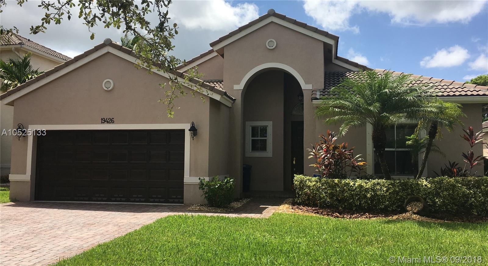 BEAUTIFUL ONE STORY HOME, 4 BEDROOMS AND 3 FULL BATH, SEPARATE LAUNDRY ROOM, FRESHLY PAINTED, NEW PORCELANATO FLOORS THROUGHOUT ALL THE HOUSE, S/S APPLIANCES, GRANITE COUNTER TOPS, NEWER A/C, WATERFRONT HOME IN MONACO COVE AT DESIRABLE SUNSET LAKES COMMUNITY