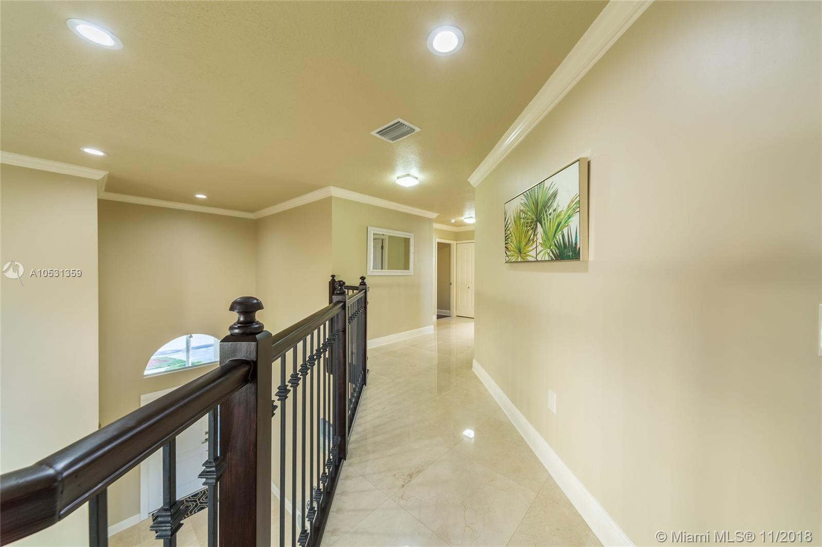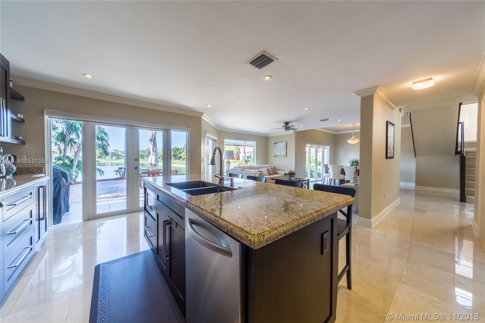 Beautiful Single Family Home, 4 Bedrooms and 3 Bathrooms, completely remodeled, marble floor and wood floor, Impact Windows, Translucent Roller Blinds and blackout in the rooms, modern gourmet kitchen and excellent use of natural lighting. Large doors and windows integrate the social area and beautiful views of the lake with a pleasant garden. All this in a lovely community in an excellent area of Doral, close to restaurants and access to highways”
