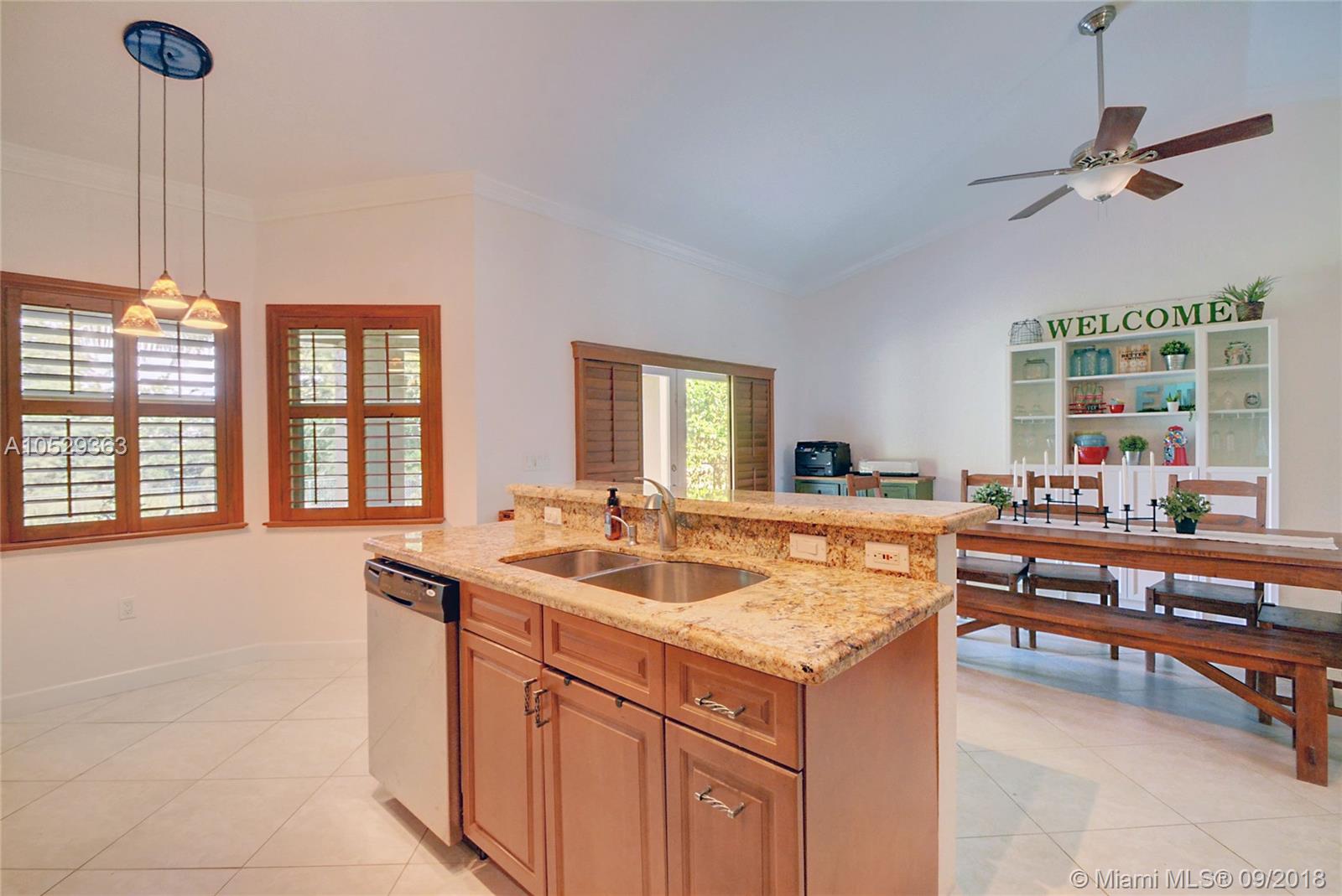 Rarely available house in Alhambra community in west Pembroke Pines. House is a one story on a large lot with no back neighbor. House has a covered back yard patio great for entertainment or just relaxing. House is very spacious and open with high ceilings. Home features a upgraded kitchen with custom wood cabinets and granite counter tops and stainless steel appliances. Both bathrooms have been upgraded. Master bathroom has double sinks with tub and shower with frameless glass and marble floors. Large master bedroom with high ceilings and large walk in closet. This house is a must see before its gone.