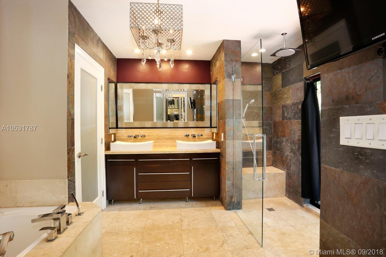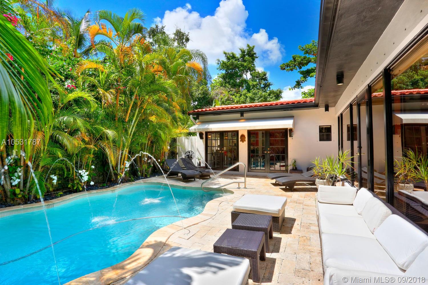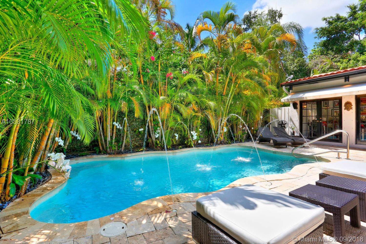 An ultra-private, walled & gated retreat in prestigious South Coconut Grove. Stunning, light-filled living areas feature volume ceilings & walls of glass, creating a seamless blending of indoor & outdoor spaces. Recently renovated w/ luxury finishes & fixtures throughout. Elegant formal living & dining room overlooks spectacular pool with fountains and tumbled marble deck surrounded by up-lit palms. Sleek euro-style kitchen w/custom wood cabinetry, granite countertops & high-end stainless appliances.Luxurious master suite features walk-in closet/dressing area, private terrace, 12’ stone shower & jetted tub. Ample parking: covered parking for 2 cars & circular driveway. Walk to the Grove village center’s boutiques, cafes and bayfront parks & marinas. Minutes to downtown, MIA & the Beaches.