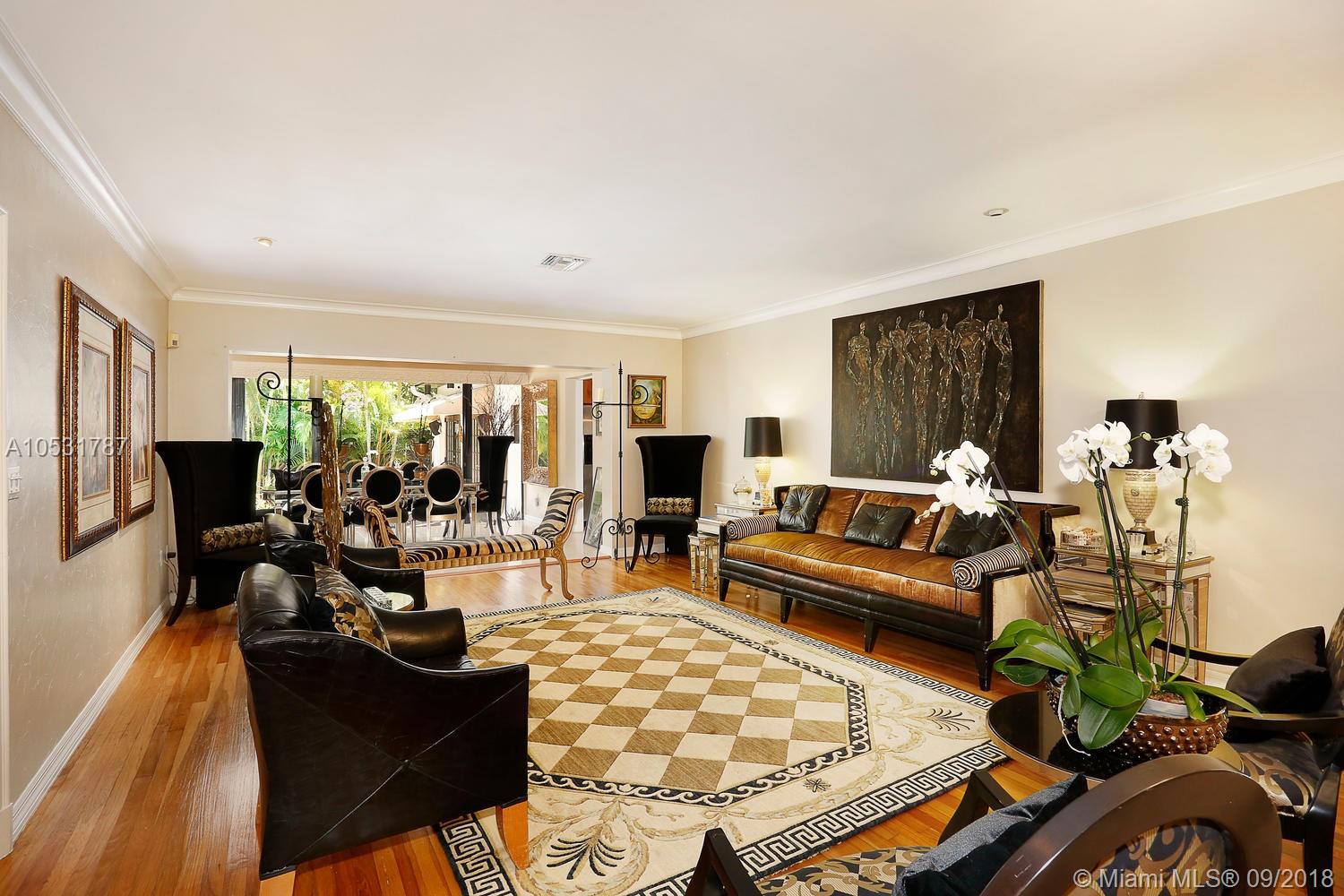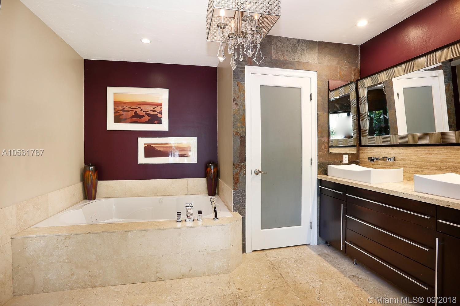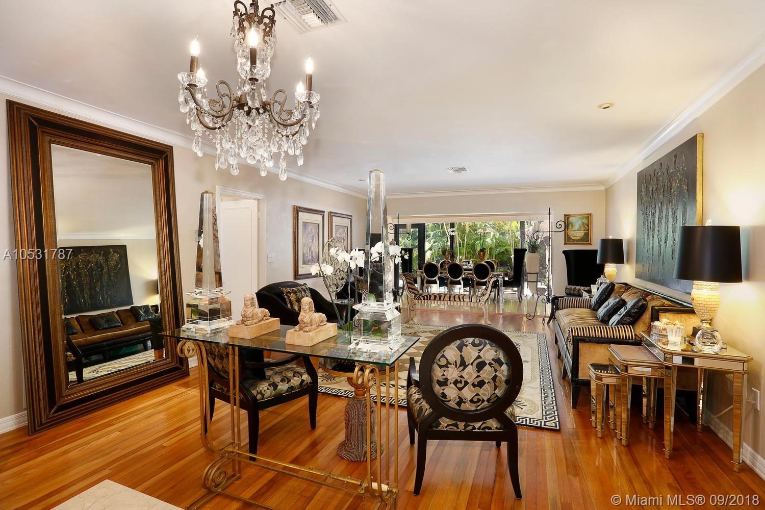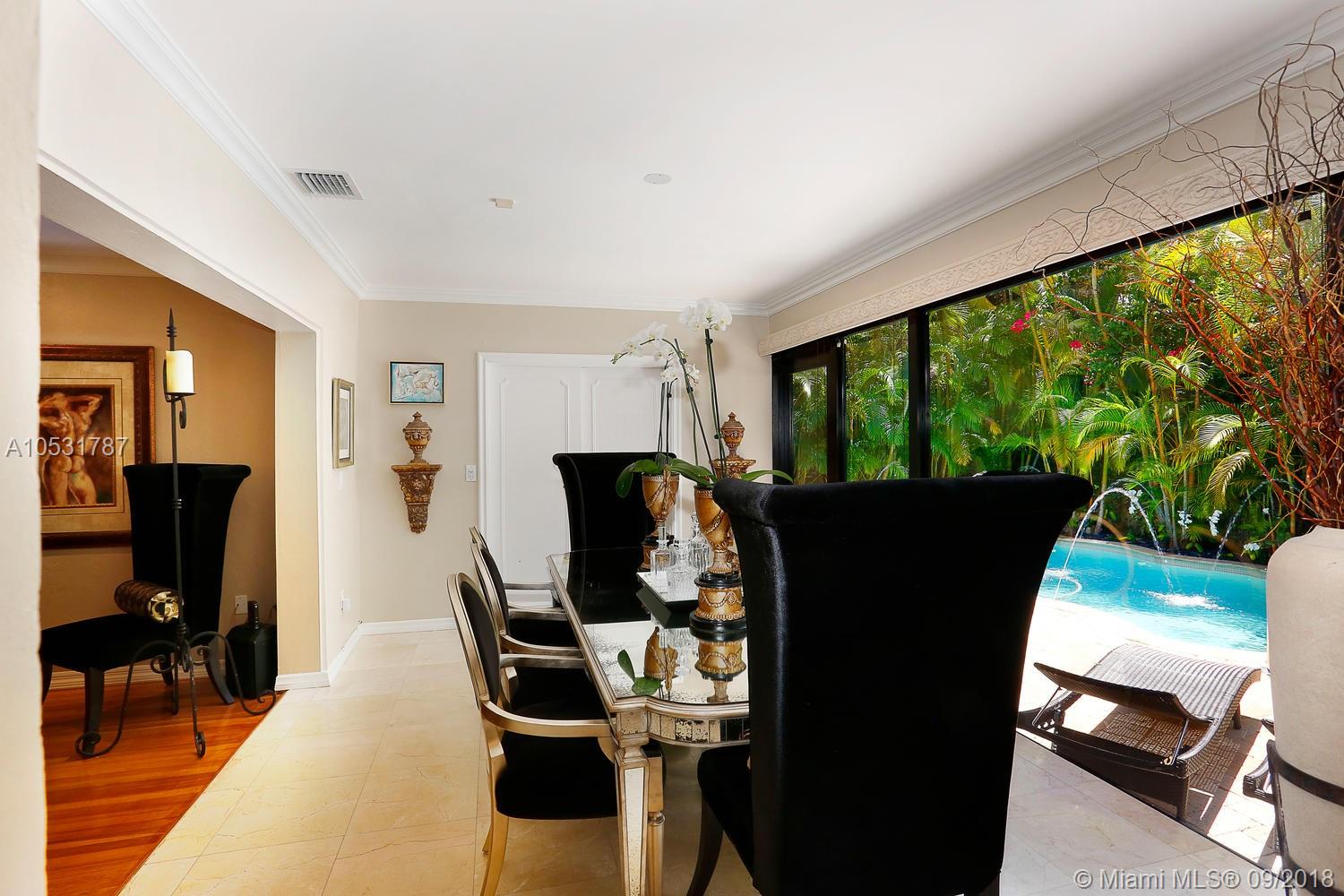 An ultra-private, walled & gated retreat in prestigious South Coconut Grove. Stunning, light-filled living areas feature volume ceilings & walls of glass, creating a seamless blending of indoor & outdoor spaces. Recently renovated w/ luxury finishes & fixtures throughout. Elegant formal living & dining room overlooks spectacular pool with fountains and tumbled marble deck surrounded by up-lit palms. Sleek euro-style kitchen w/custom wood cabinetry, granite countertops & high-end stainless appliances.Luxurious master suite features walk-in closet/dressing area, private terrace, 12’ stone shower & jetted tub. Ample parking: covered parking for 2 cars & circular driveway. Walk to the Grove village center’s boutiques, cafes and bayfront parks & marinas. Minutes to downtown, MIA & the Beaches.