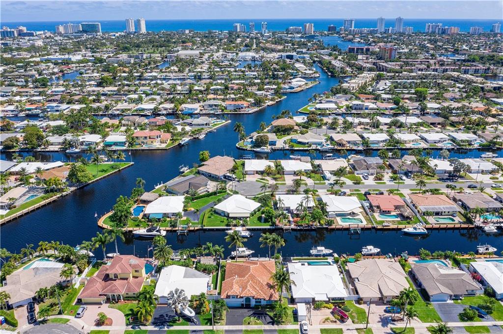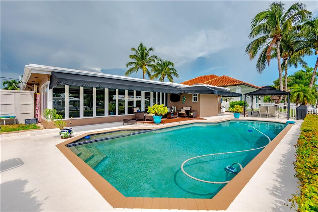 Enter this beautiful waterfront home to a wall of windows overlooking the oversized pool and jacuzzi, new 70' TREX dock with 10,000 pound boat lift, 800 pound jet ski lift, water and 50/30 AMP electricity at dock. A boater's dream with 1 high fixed bridge at Federal Hwy. Impact windows and doors, whole house backup generator, electric and plumbing have been updated. Open floor plan! Gorgeous updated/upgraded kitchen with breakfast bar and wine chiller, oversized pantry with pullouts. 2 upgraded bathrooms, one cabana bath with a sky light, his & hers master bathroom. 3 big bedrooms (split plan), tons of storage. V-MAX 6 zone camera system. Everything you could want in your new home! Truly a special home that must be seen!