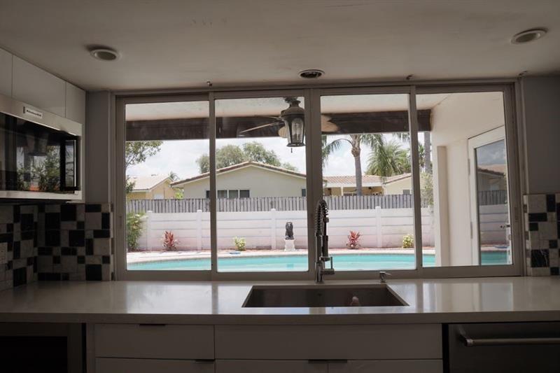 Modern luxurious pool home with huge family room 2 car garage, open spaces, tastefully renovated, everything is new!!! Mix of Marble, Tile and Bamboo hardwood floors. New bathrooms, doors, levers, new electric box, new barrel tile roof and flat roof, hurricane impact sliding doors, updated lighting fixtures, new kitchen with quartz counter tops and waterfall, new cabinets in gloss white finish and soft closing doors. Kitchen Aid appliances, decorative wall with black stacked stones. Pavers and much more.