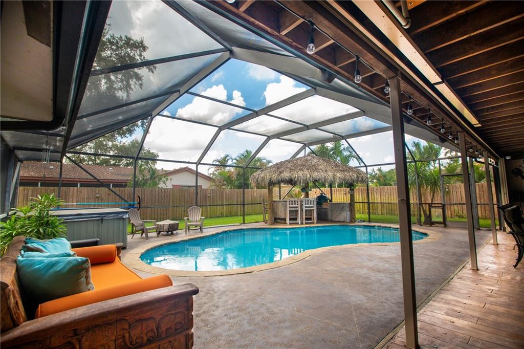 SELLERS MOTIVATED,PRICED LOWERED OVER 20K! Beautiful corner home located on oversized lot in highly sought after Shadow Wood!. This Amazing 4/2 home boasts gorgeous upgraded kitchen and baths, impact doors, windows, and shutters. Solar pool panels, dual AC, water softener and tankless water heater. Ample storage and walk-in closets. Secluded fenced yard, salt-water pool with screened enclosure, large covered patio, hot tub and custom tiki. Make this home a perfect paradise for entertaining. Homes like this do not come very often!